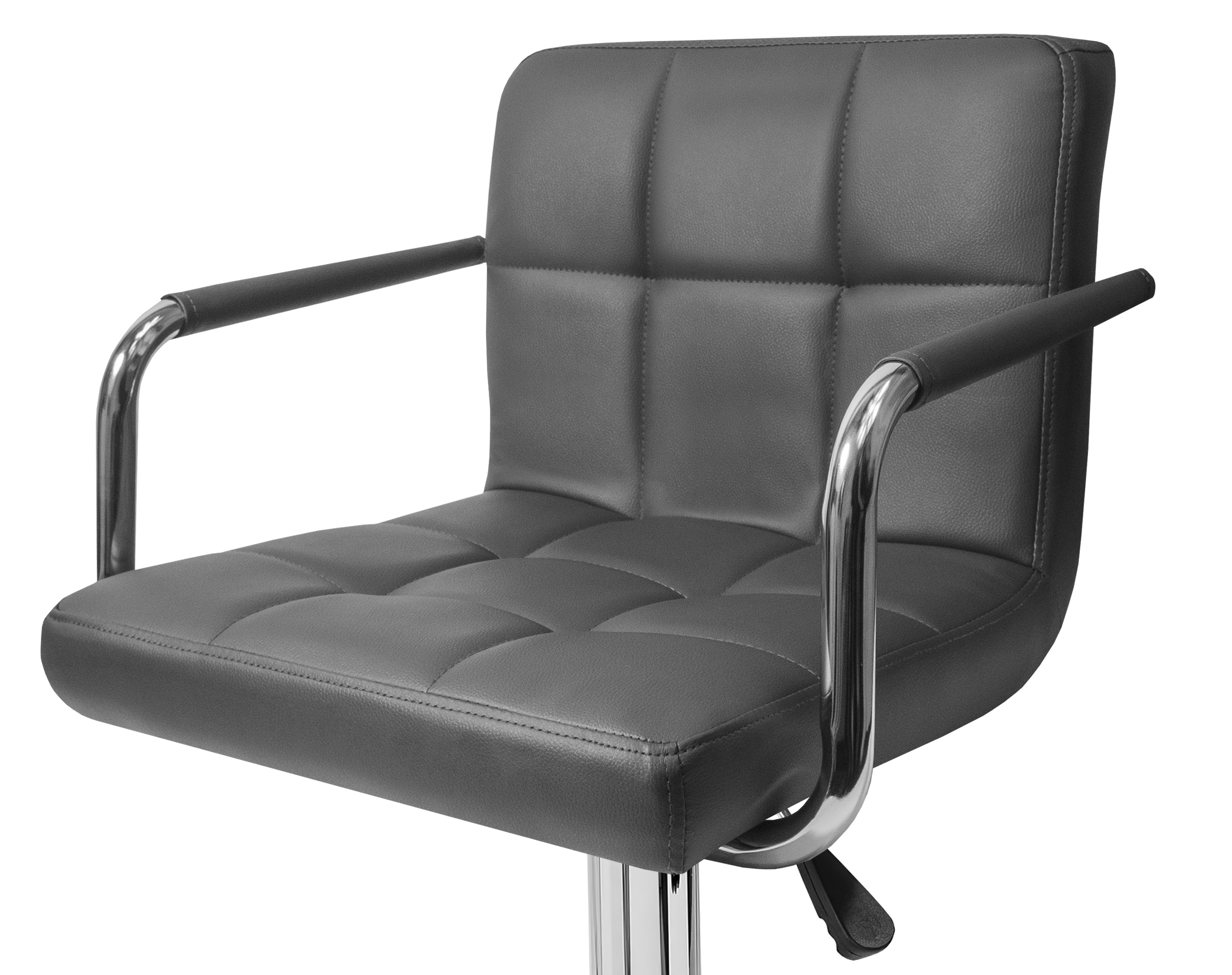 A szék praktikus lábtartóval rendelkezik, krómozott fémből. A kör alakú talapzat és a középső láb fényes krómból készült.
