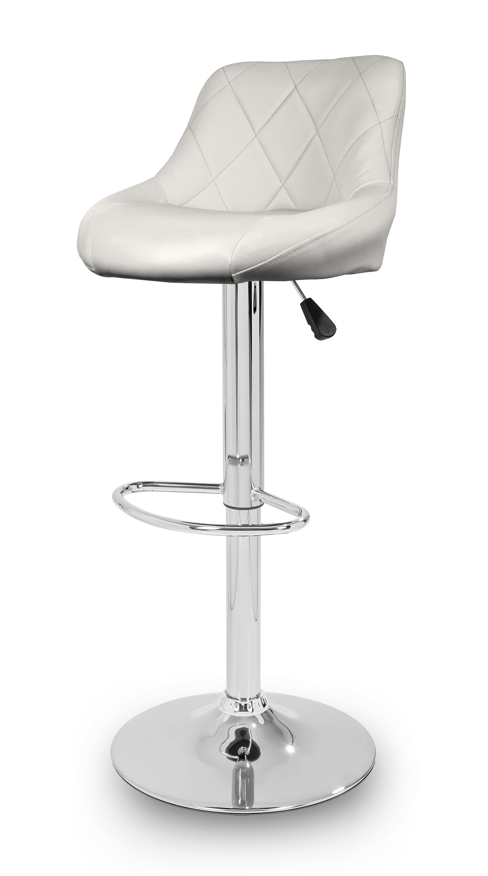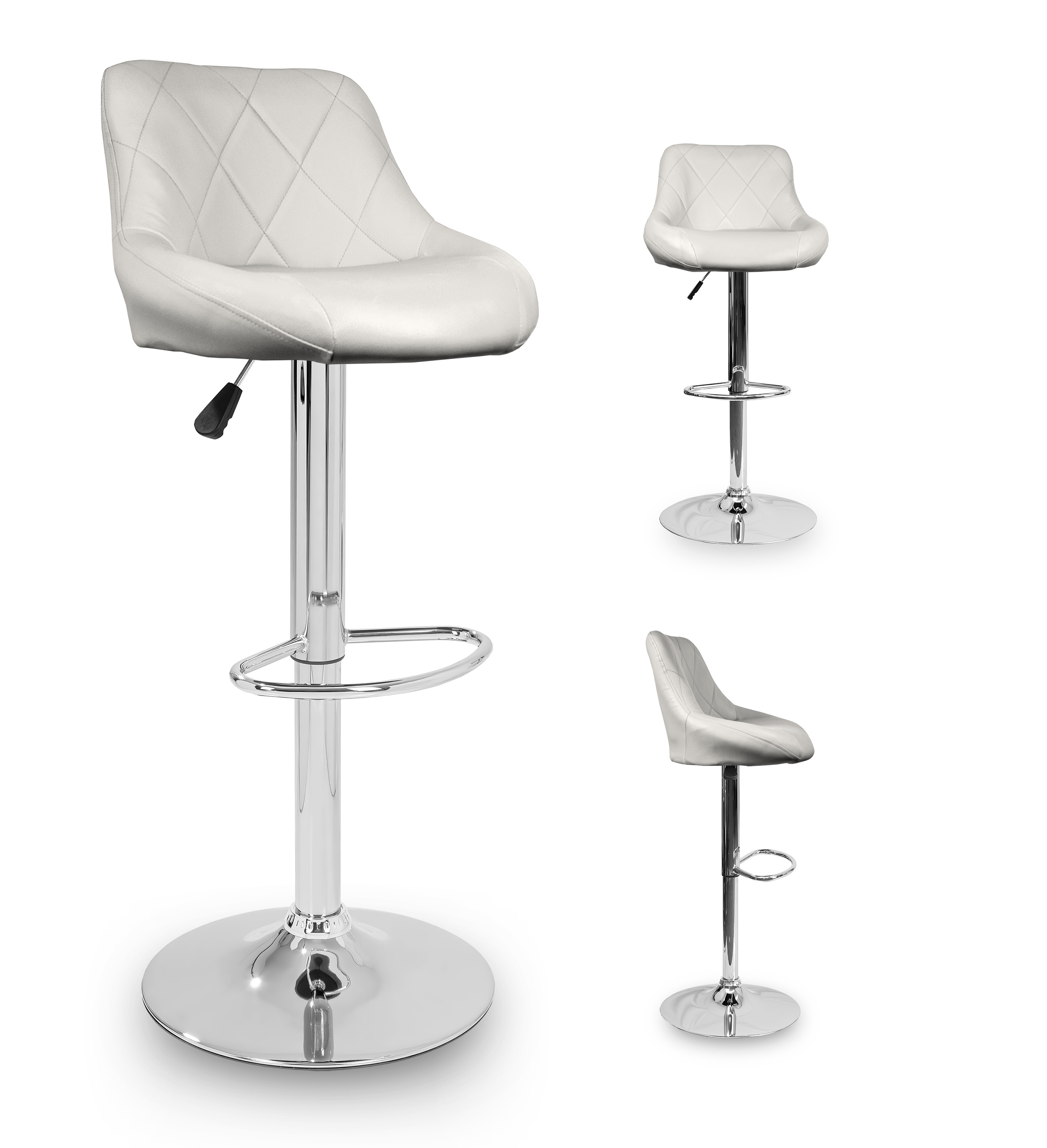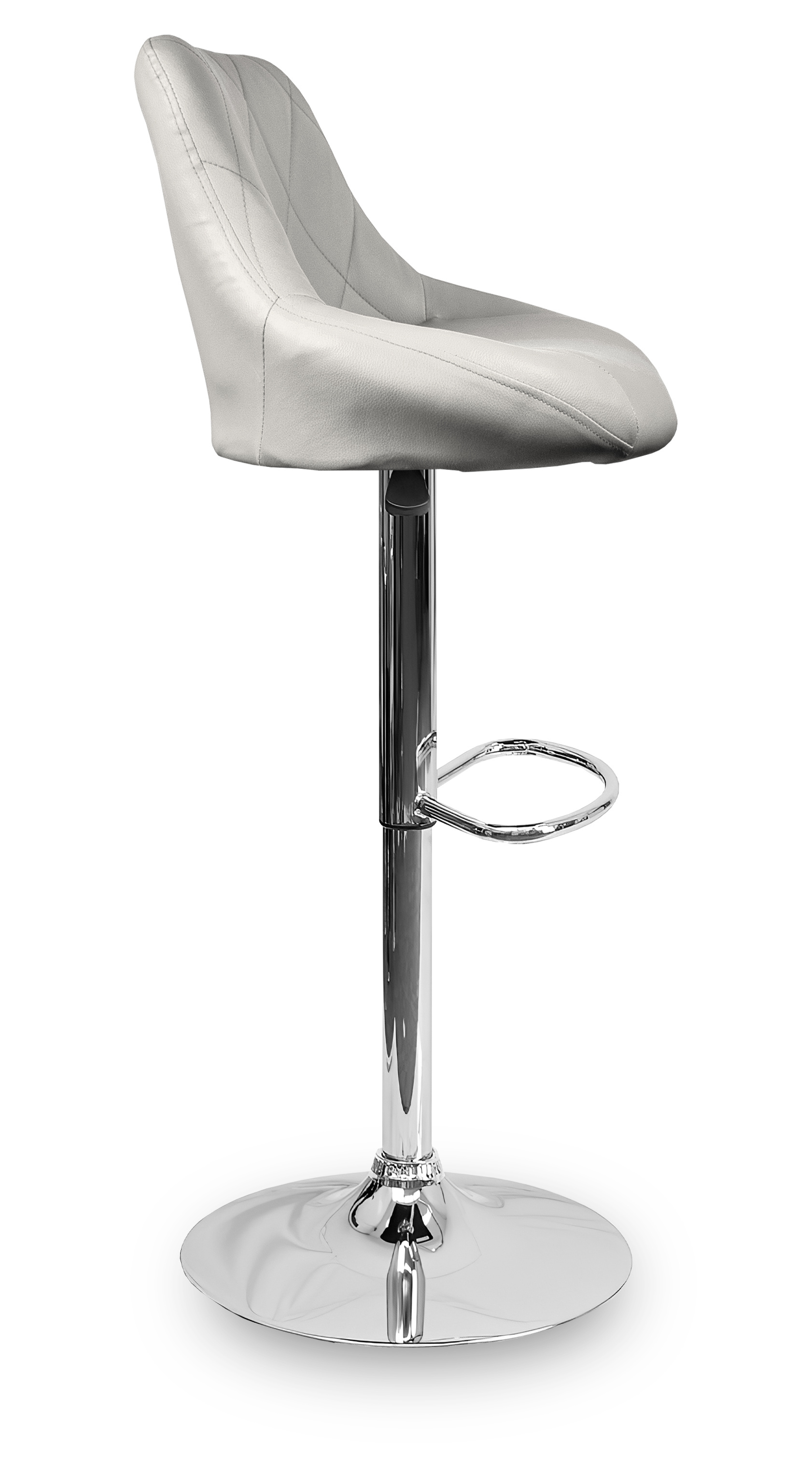 A széknek praktikus lábtartója van krómozott fémből. A kör alakú talp és a központi láb fényes króm.