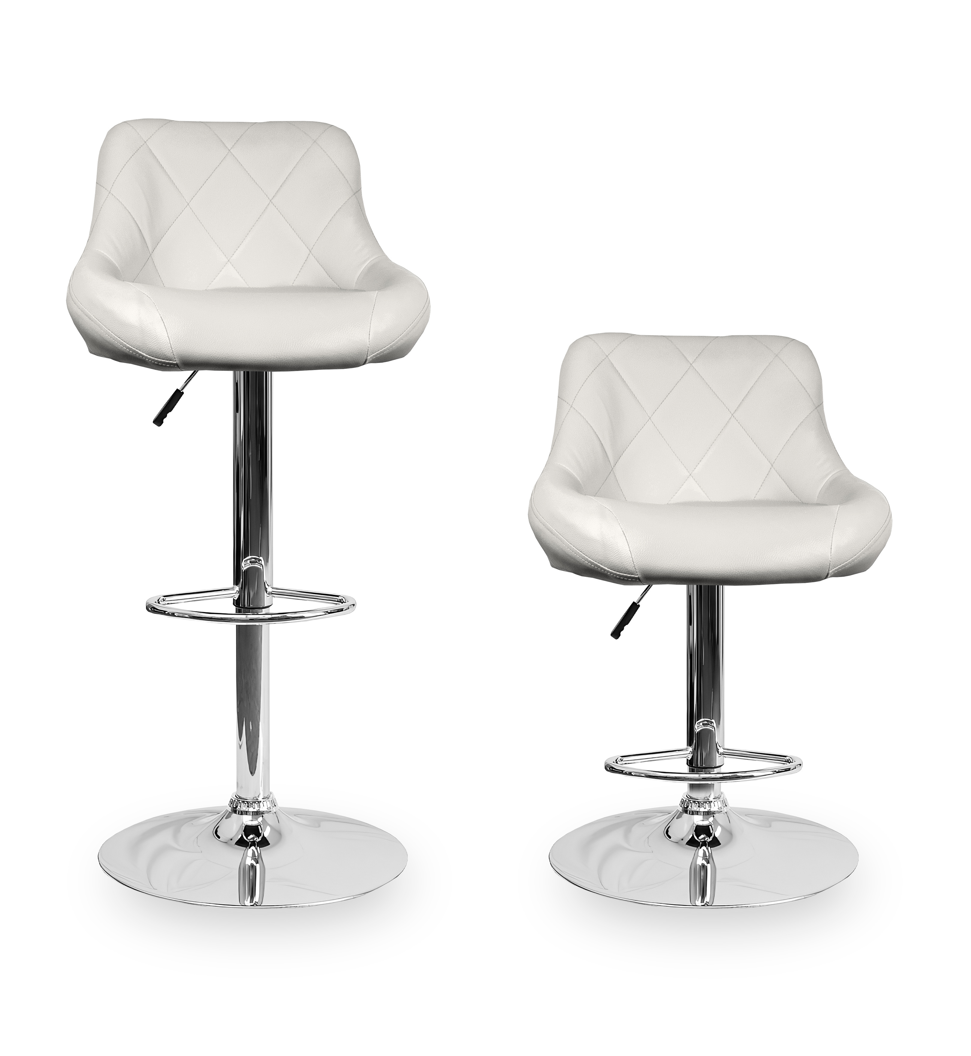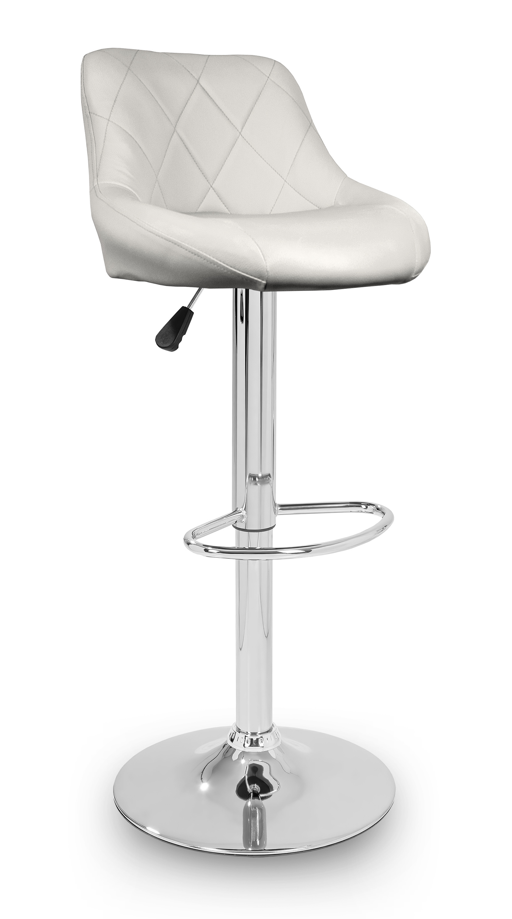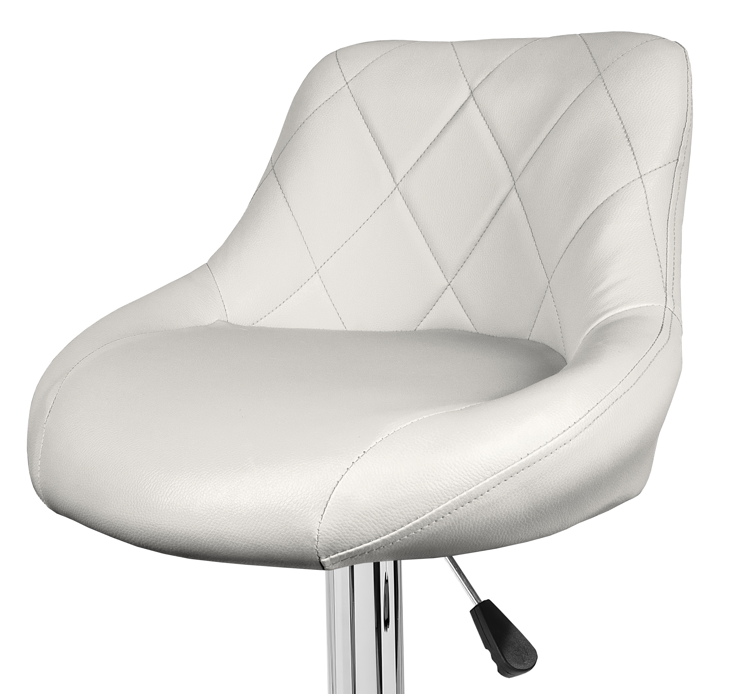 A széknek praktikus lábtartója van krómozott fémből. A kör alakú talp és a központi láb fényes króm.