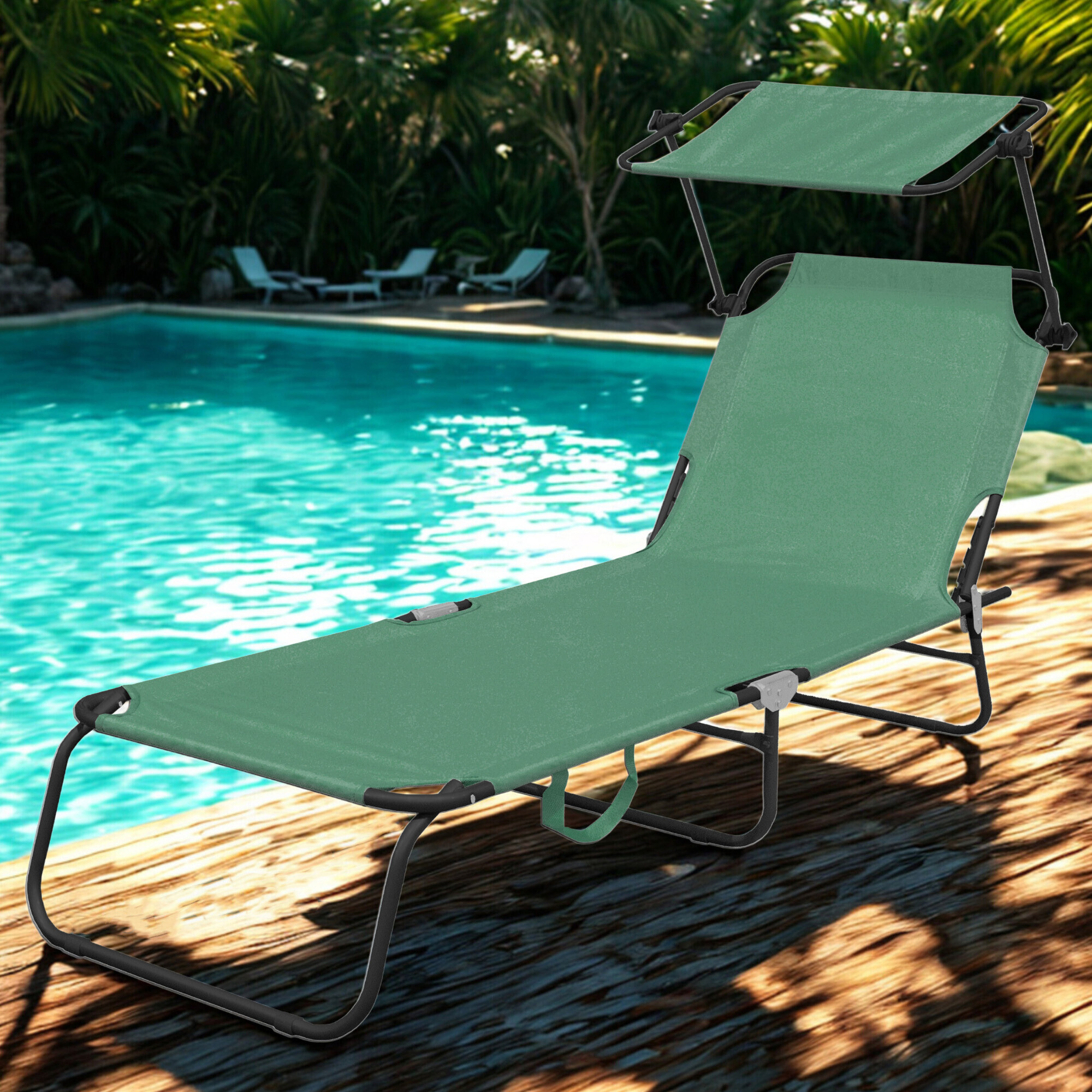 A nyugágy része egy levehető napellenző, amely szabadon állítható és megvédi az arcot az erős napsütéstől.A napozóágy háttámlája 4 különböző pozícióba állítható.