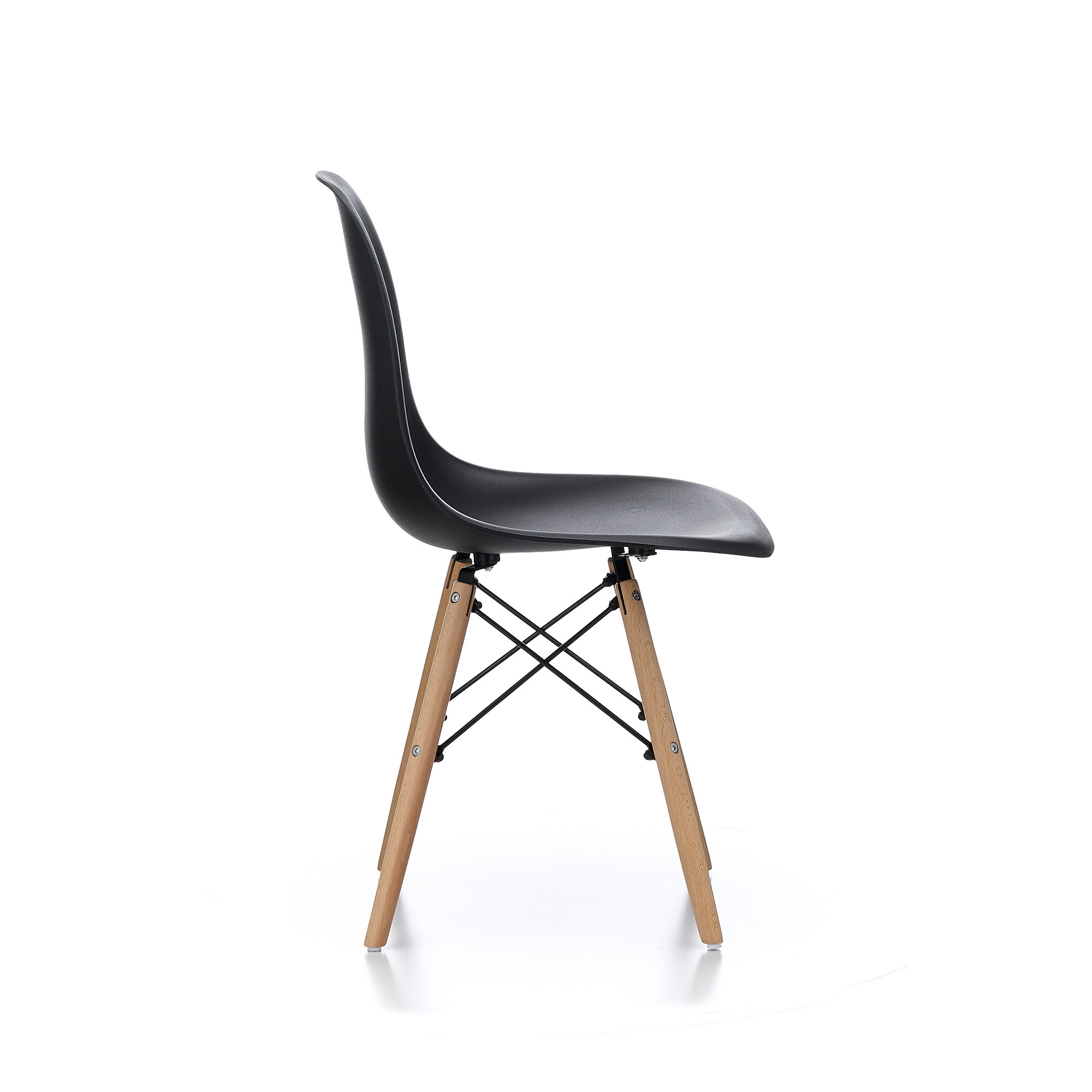 Szék, amely gyönyörű retro modern dizájnnal rendelkezik, gyönyörűen formázott üléssel és fa lábakkal.