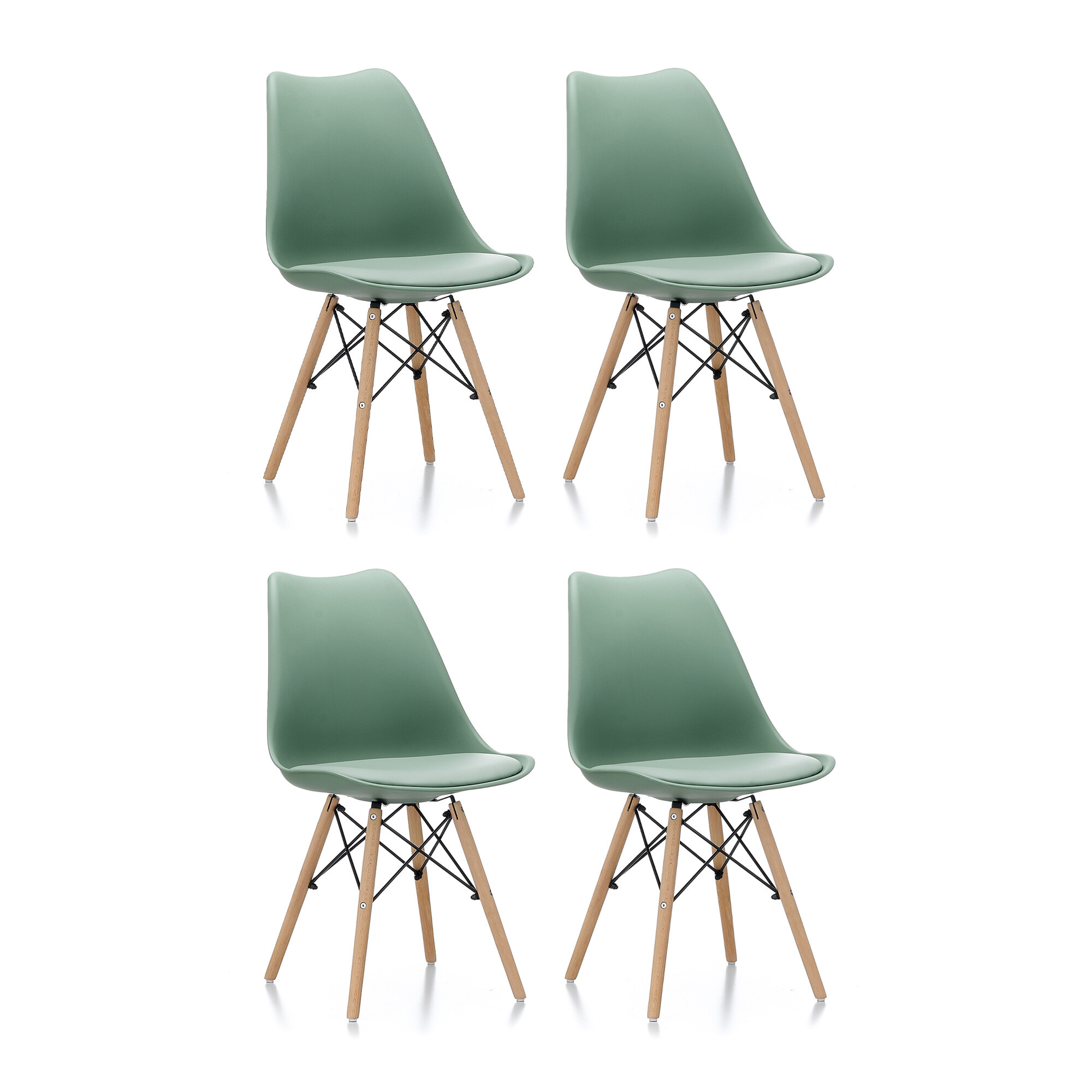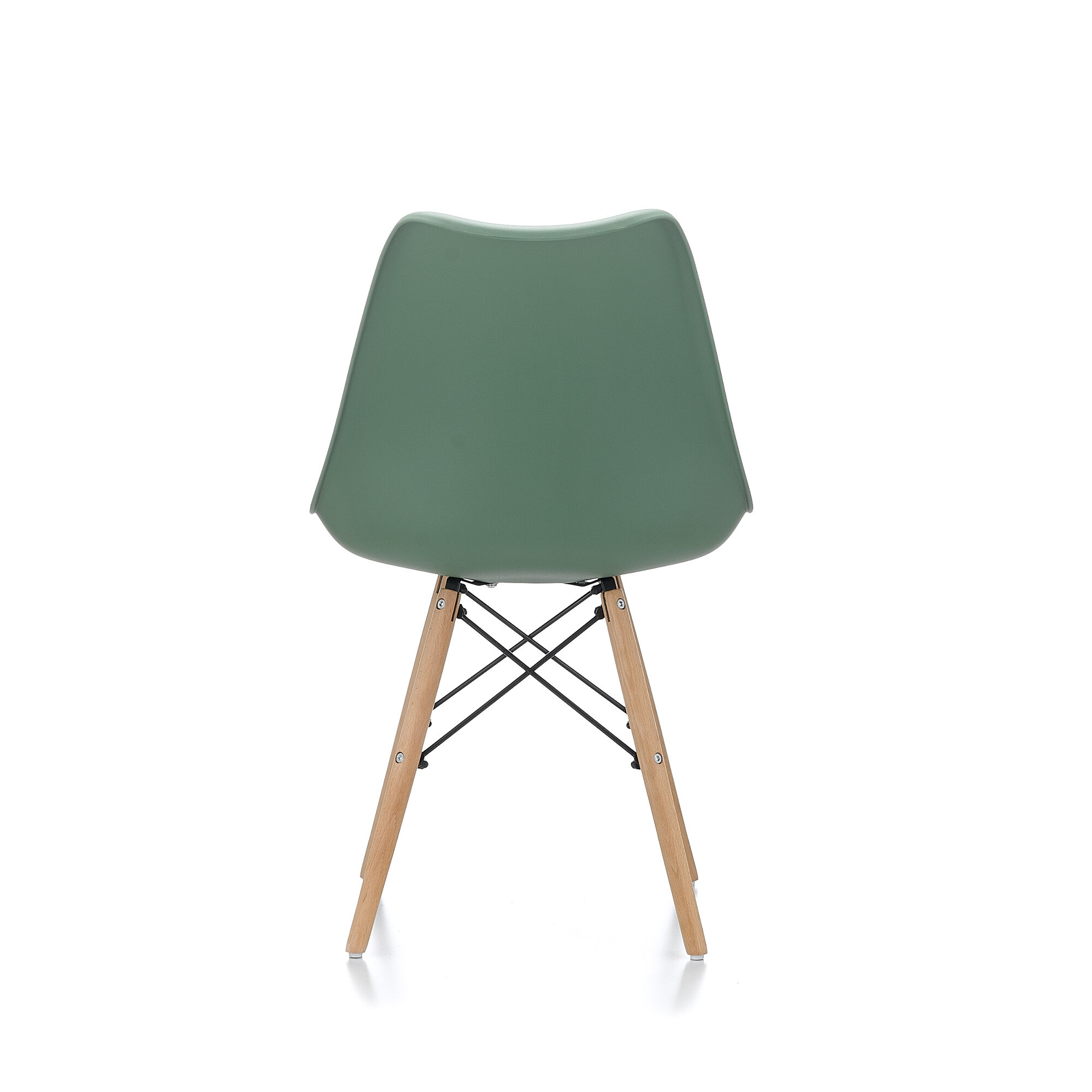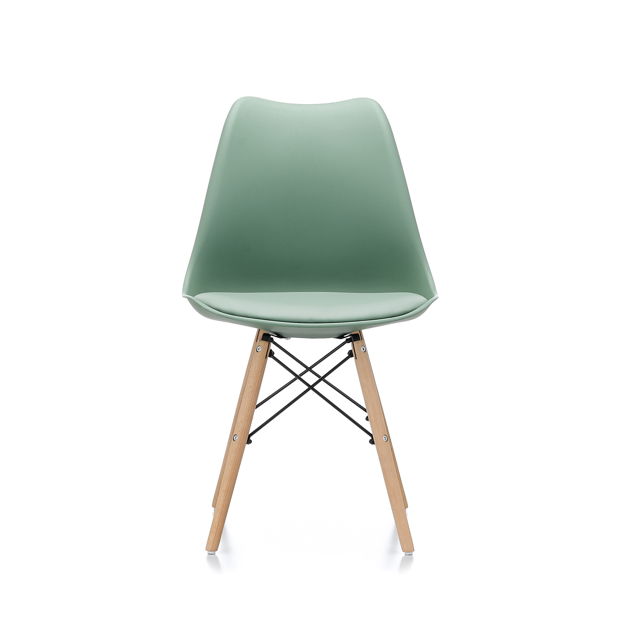 A szék kiváló minőségű és tartós polipropilénből készült, műbőr huzattal ellátott párnával, bükkfa lábakkal kombinálva.