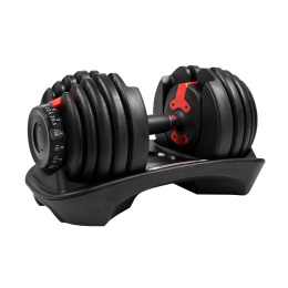 A súlyzórúd a tárcsák (súlyok) és egy forgókerék elvén működik, amelyen beállíthatja a kívánt súlyt, és a kiválasztott súlyok „rákattannak” a rúdra. Választhat 2,5 és 24 kg közötti súlyok közül.