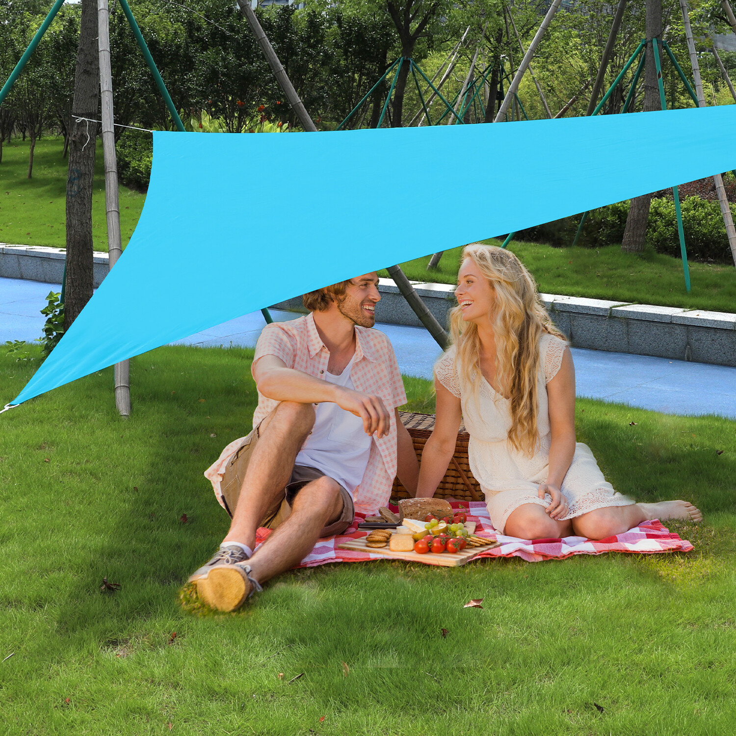A háromszög alakú vitorla nemcsak esztétikailag vonzó, hanem praktikus is, mivel lehetővé teszi egy nagyobb terület hatékony árnyékolását.
