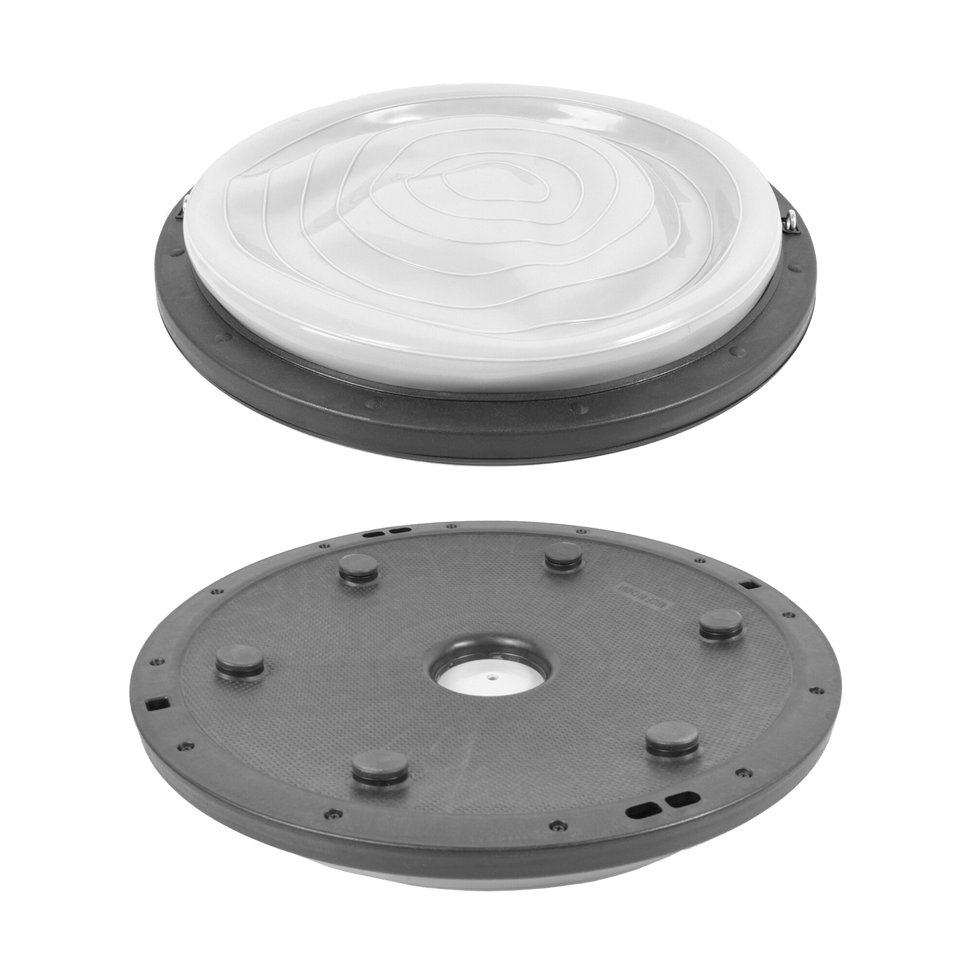 Szilárd műanyag alappal rendelkező egyensúlyozó párna, amely lehetővé teszi a széleskörű edzést a test erősítése és koordinációja érdekében.