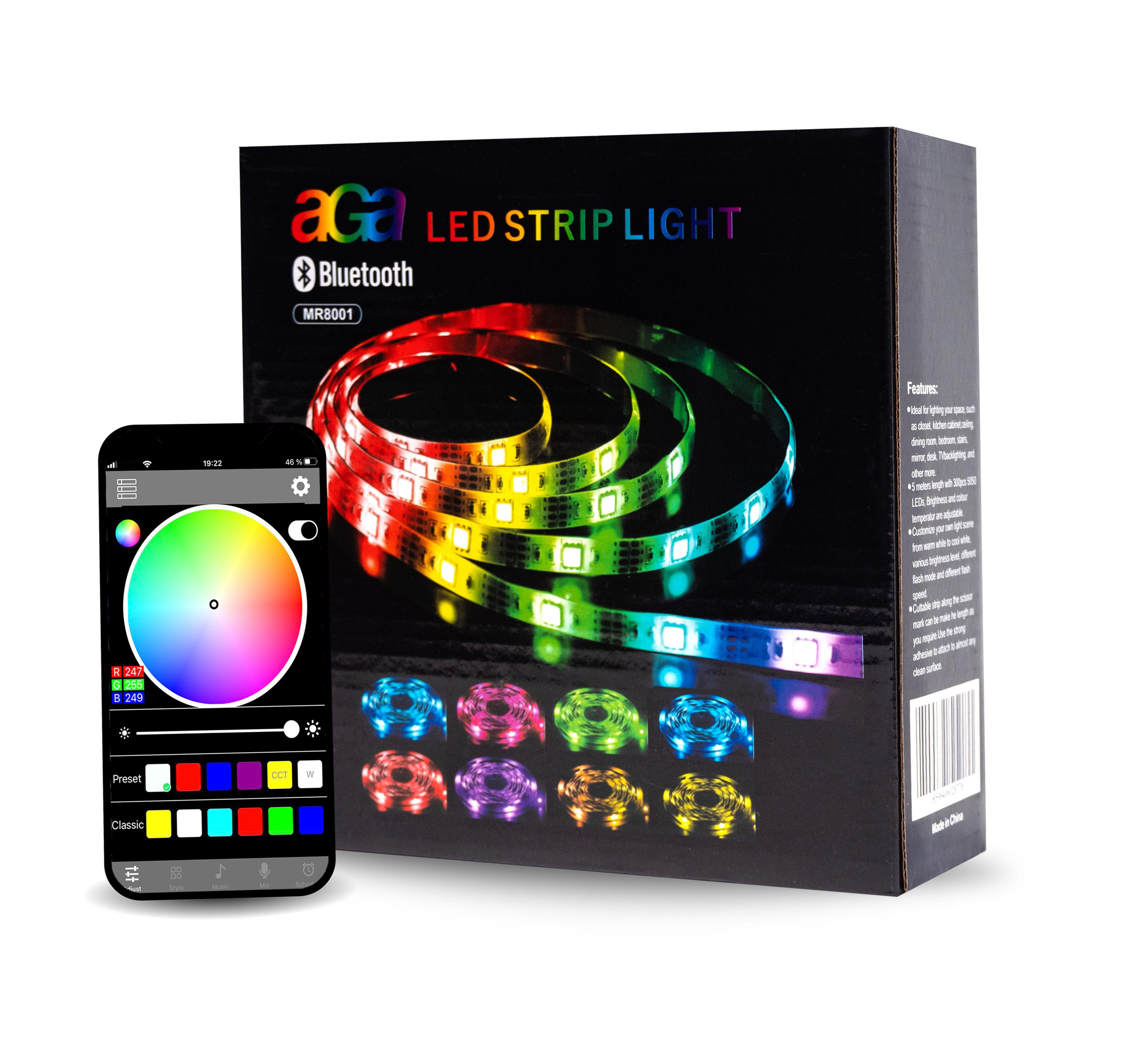 Aga Bluetooth RGB LED szalag 5m + távirányító + tápegység