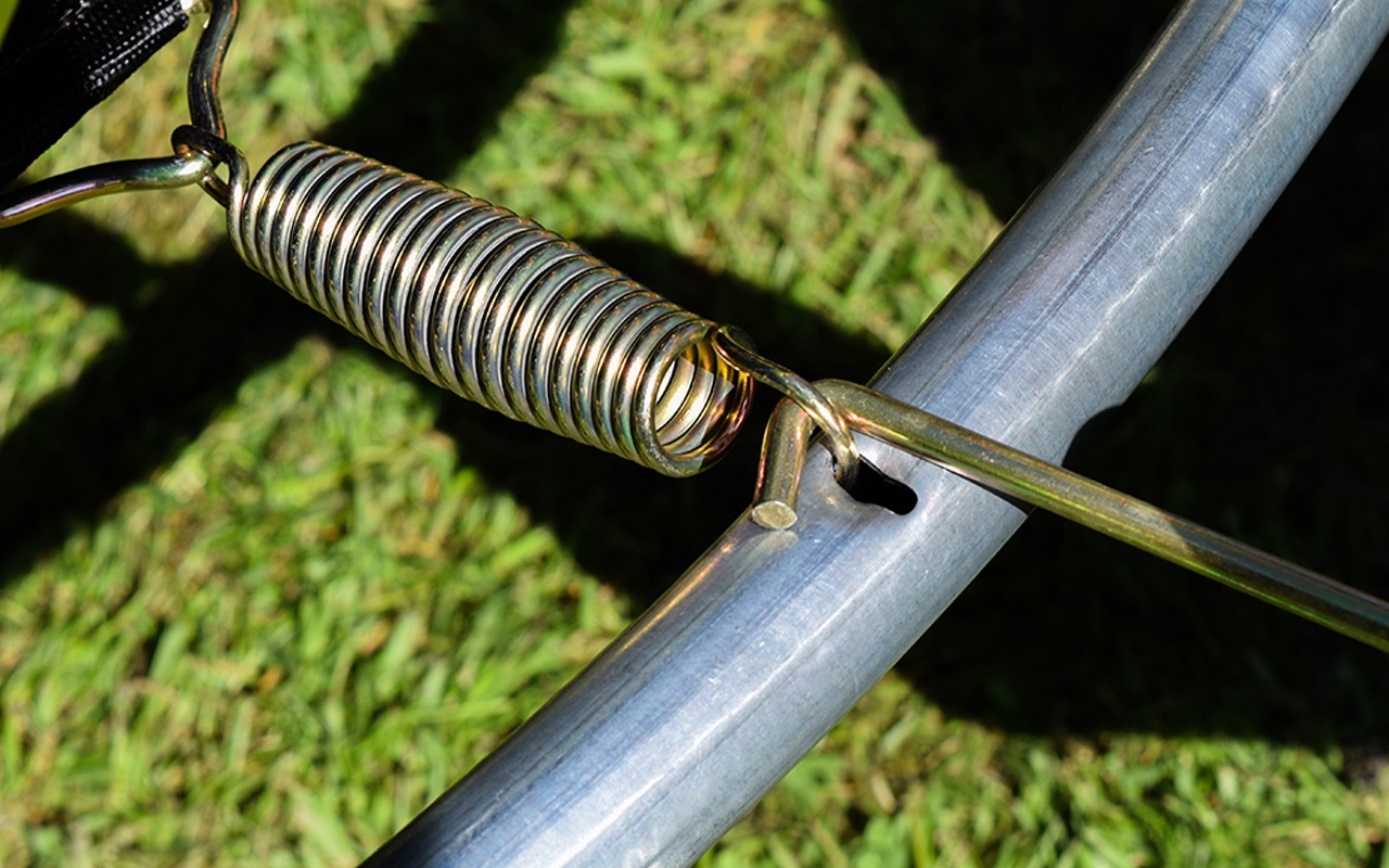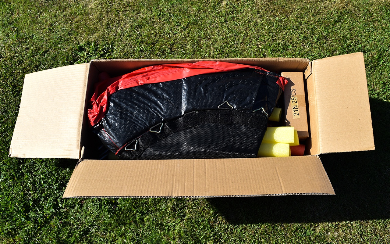 A trambulin maximális biztonságát a párnázott peremöv (rugófedél) biztosítja, amely a rugókat a trambulin teljes kerületén körbefogja.