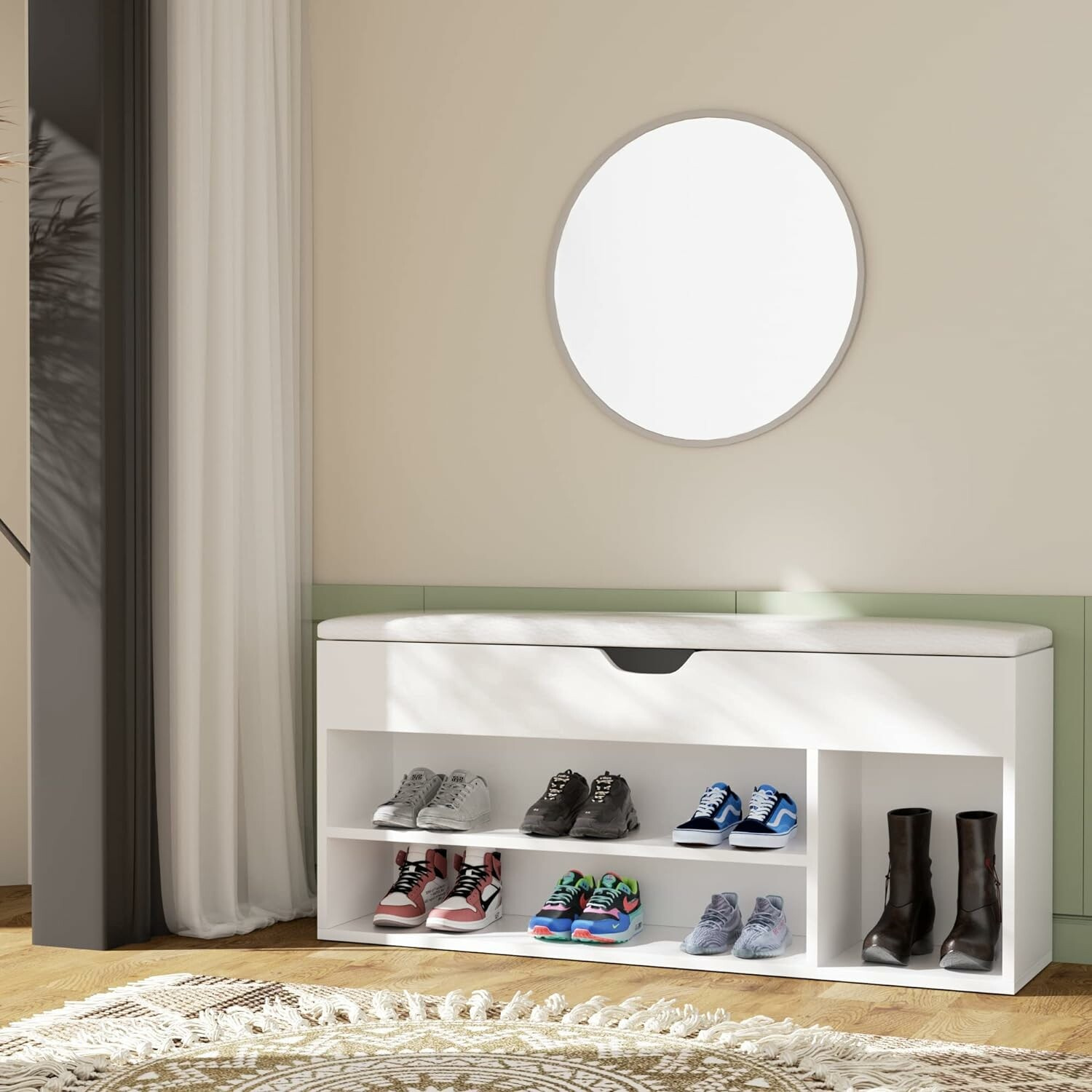 Felső része ülőkével van ellátva, hogy kényelmesen lehessen cipőt felvenni.A cipőtartóba akár 6 pár cipőt is elhelyezhet.