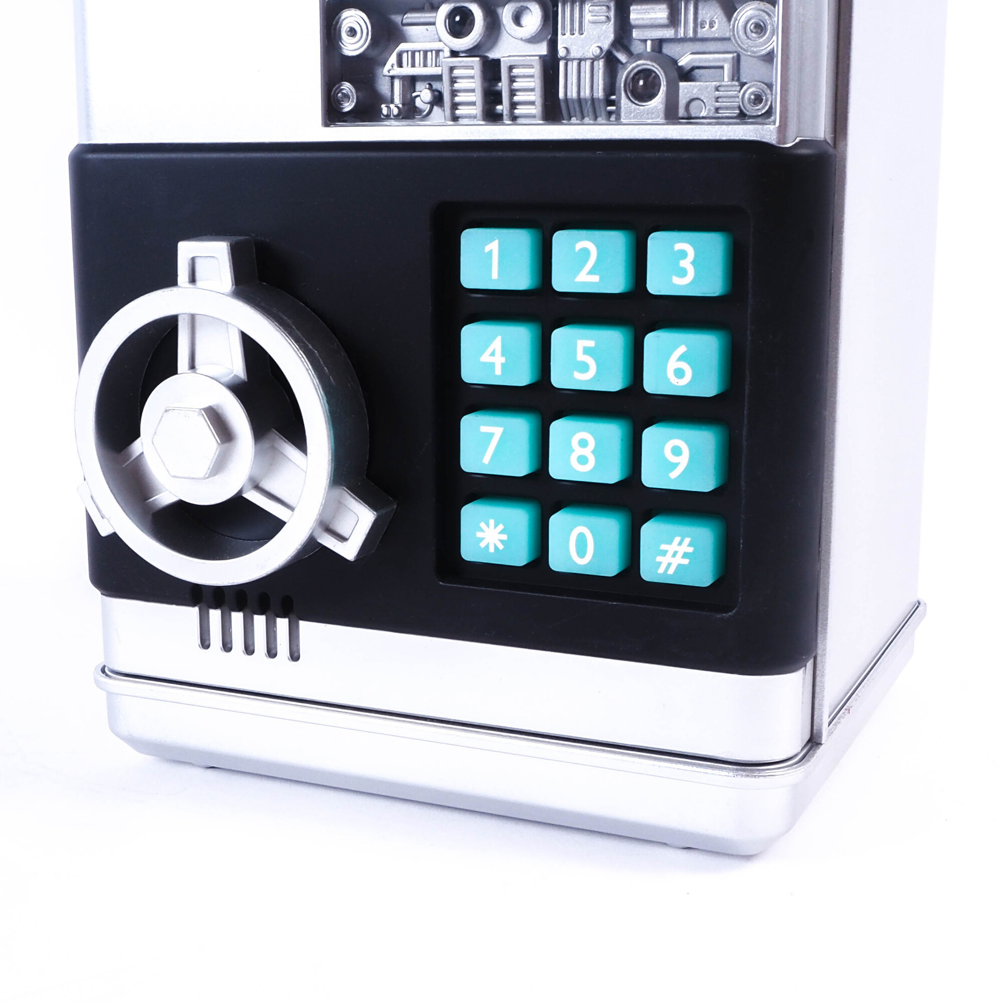 Ez a persely nem csak egy egyszerű pénzdoboz. Ez egy valódi széf, amely a 4 számjegyű PIN-kód megadása után nyílik. A gyerekek így beállíthatják saját jelszavukat, és megvédhetik megtakarításaikat a kíváncsi kezek elől. Ráadásul 20 másodperc elteltével a széf emlékeztetni fogja Önt, hogy az ajtó nyitva van, így nem kell aggódnia amiatt, hogy gyermeke elfelejti bezárni a perselyt.
