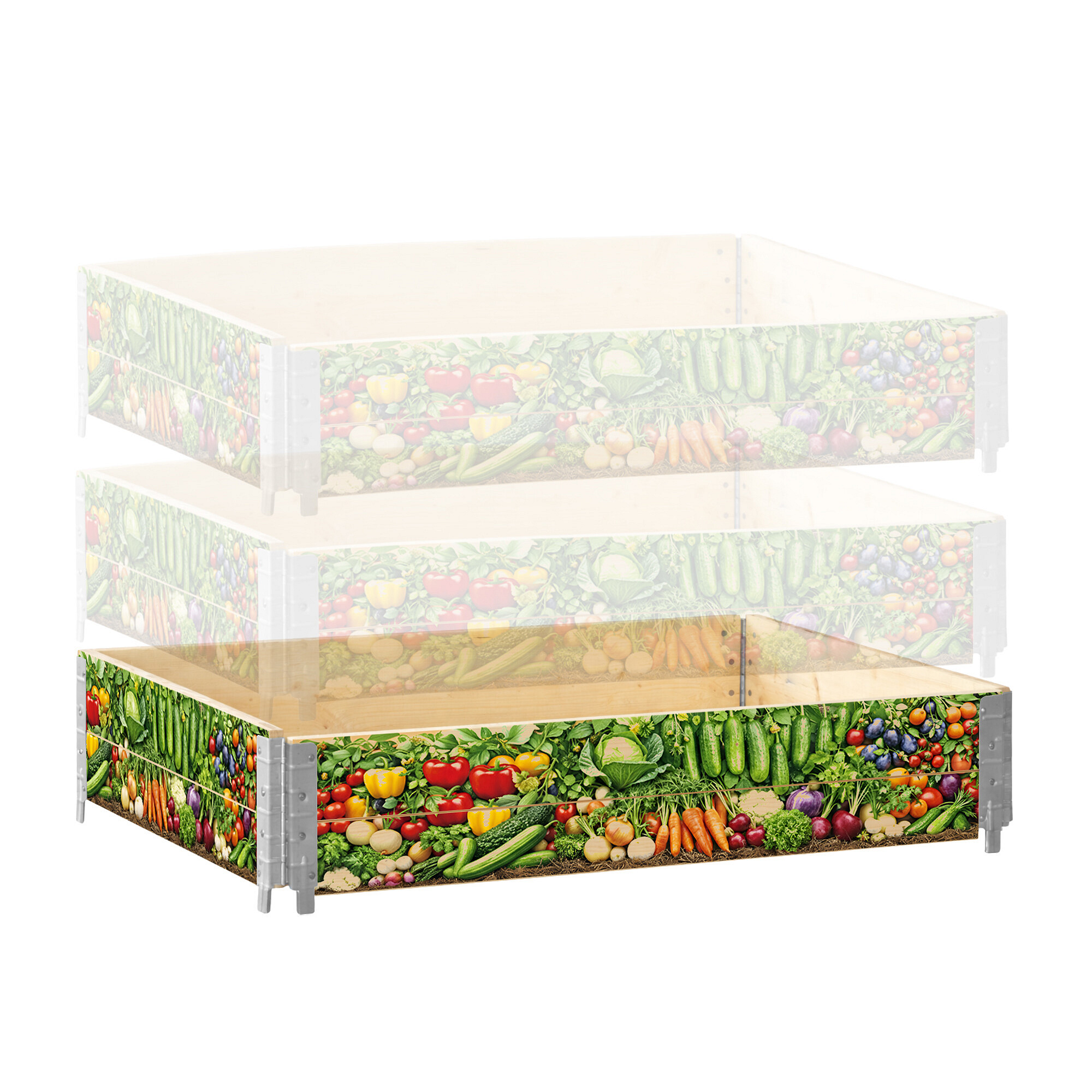 Előny az is, hogy az ágyás magassága további azonos részekkel bővíthető. Ezáltal magasabb emelt ágyás hozható létre mélyebb termesztési térrel, nagyobb szubsztrátum térfogattal és jobb feltételekkel a mélyebb gyökérrendszerrel rendelkező növények számára.