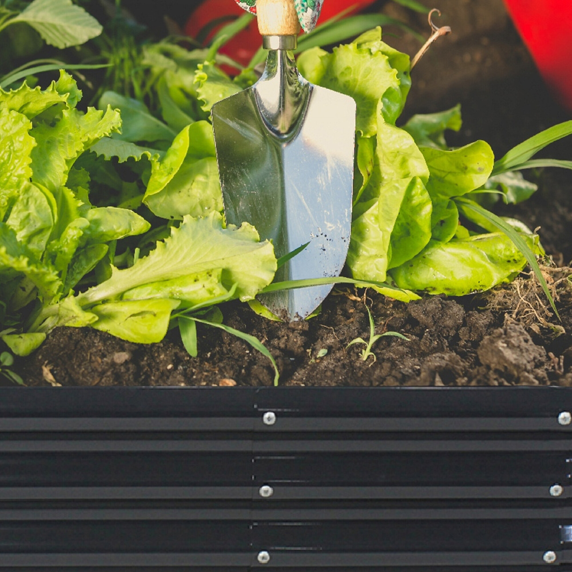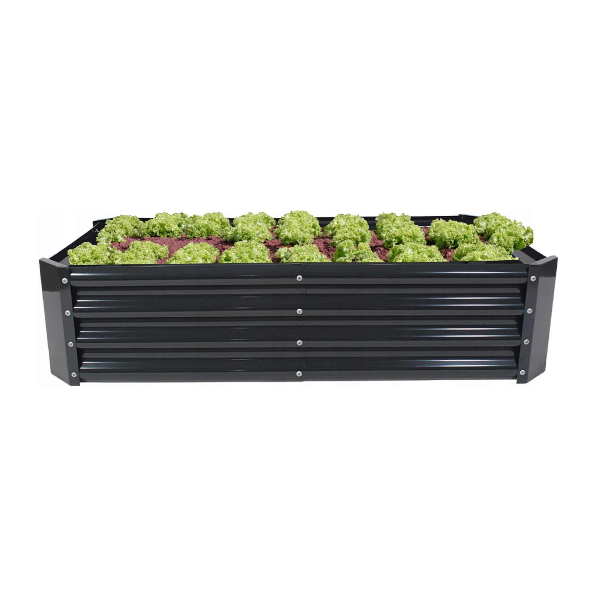 Az ágyás tartós horganyzott acélból készült, így kiválóan ellenáll az időjárásnak, és alkalmas kültéri használatra.