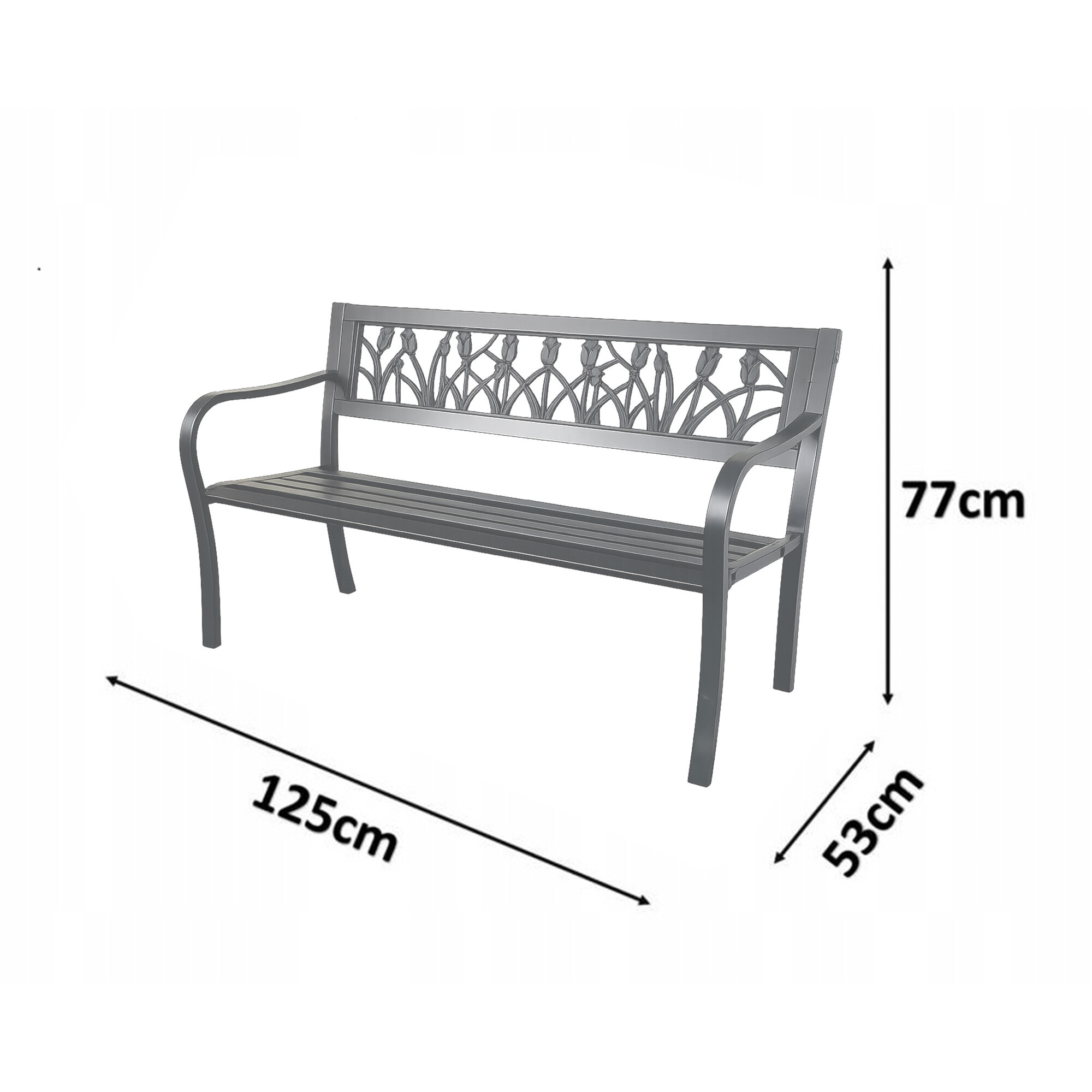 Méreteinek köszönhetően, amelyek 125 x 53 x 77 cm, a kerti pad elegendő helyet biztosít 2-3 személy számára. A pad teherbírása akár 150 kg.