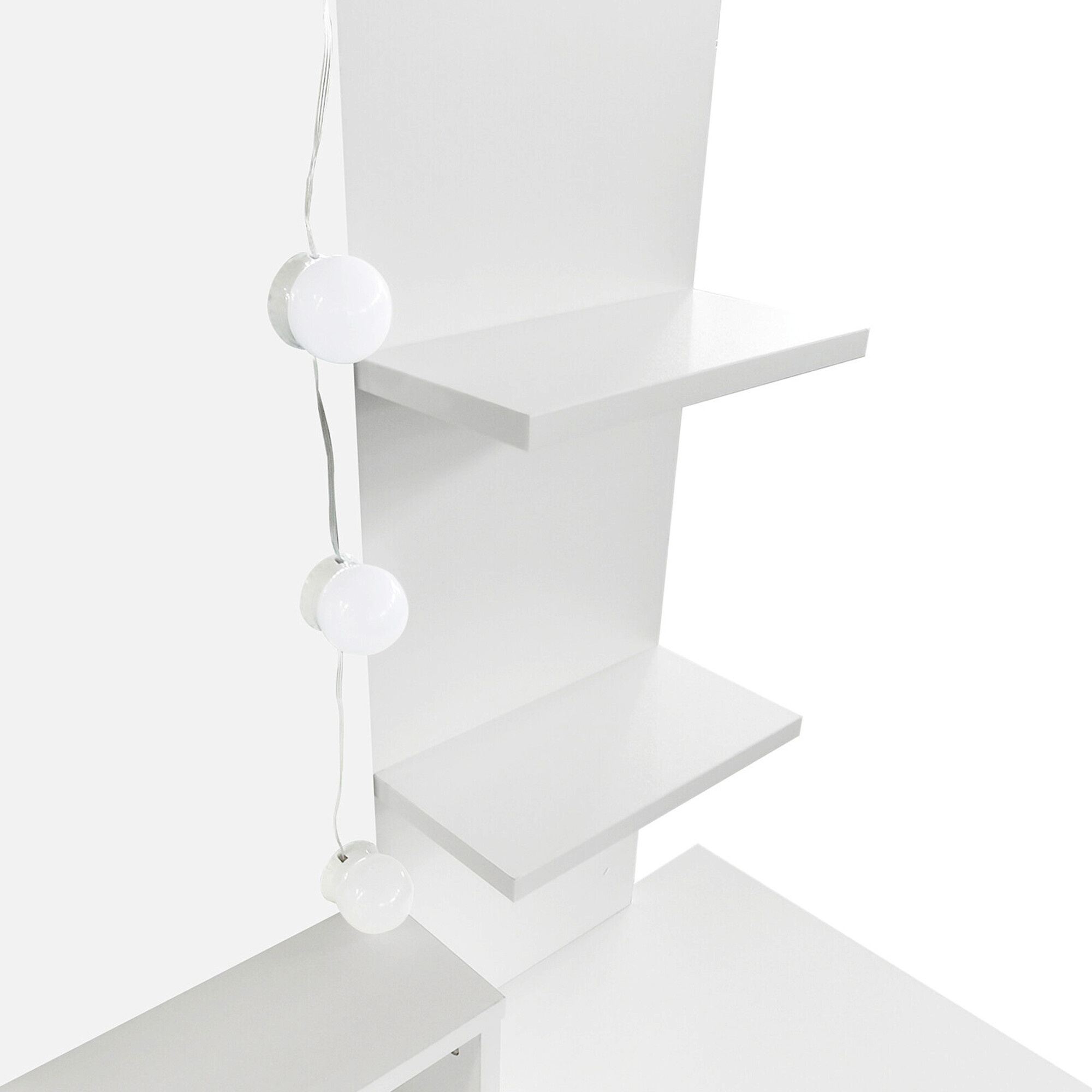 A toalettasztal erős laminált forgácslapokból készült melamin felülettel, amely kiemelkedő karcállósággal rendelkezik.