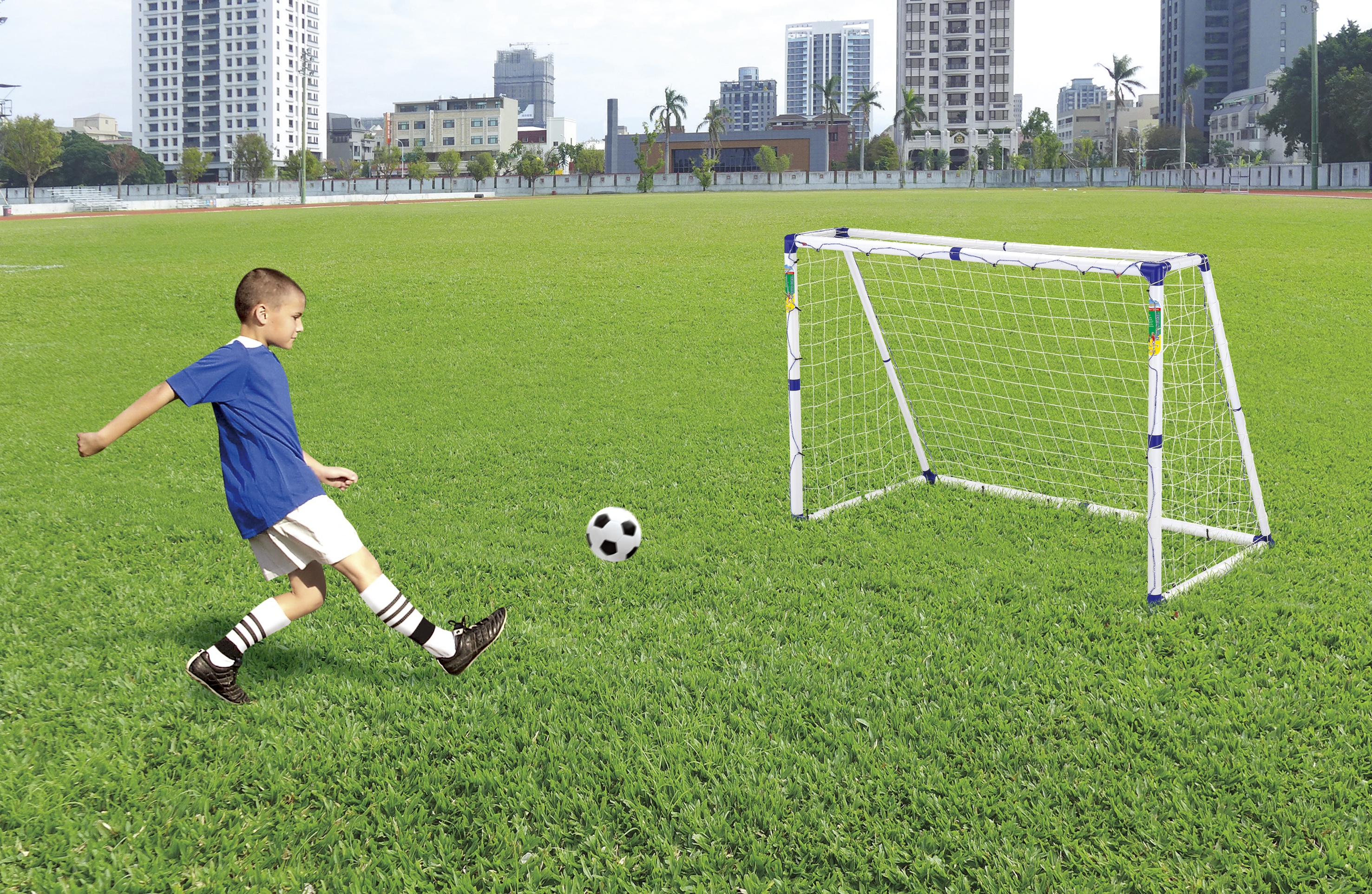 Kiváló minőségű PVC műanyagból készült, szabadidős használatra tervezett focikapu.