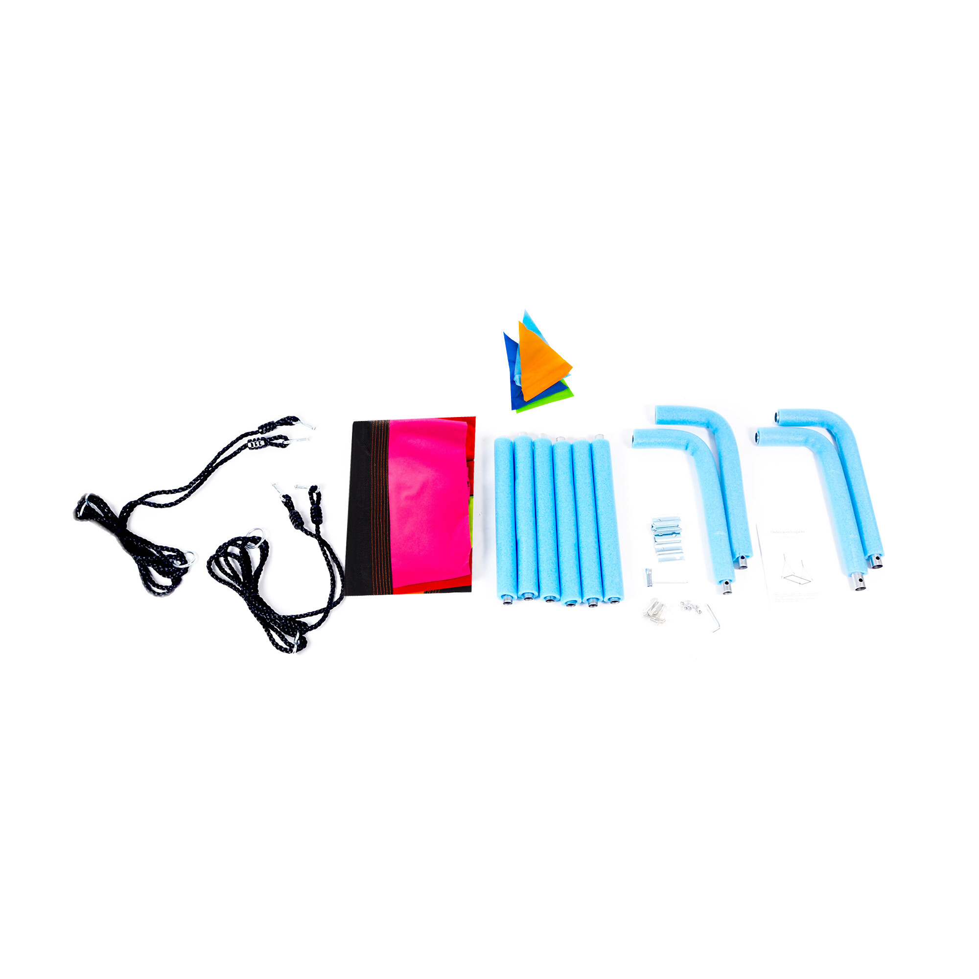 A hintázó téglalap erős, Ø 10 mm átmérőjű és 130 cm hosszú kötelekkel van felszerelve.
