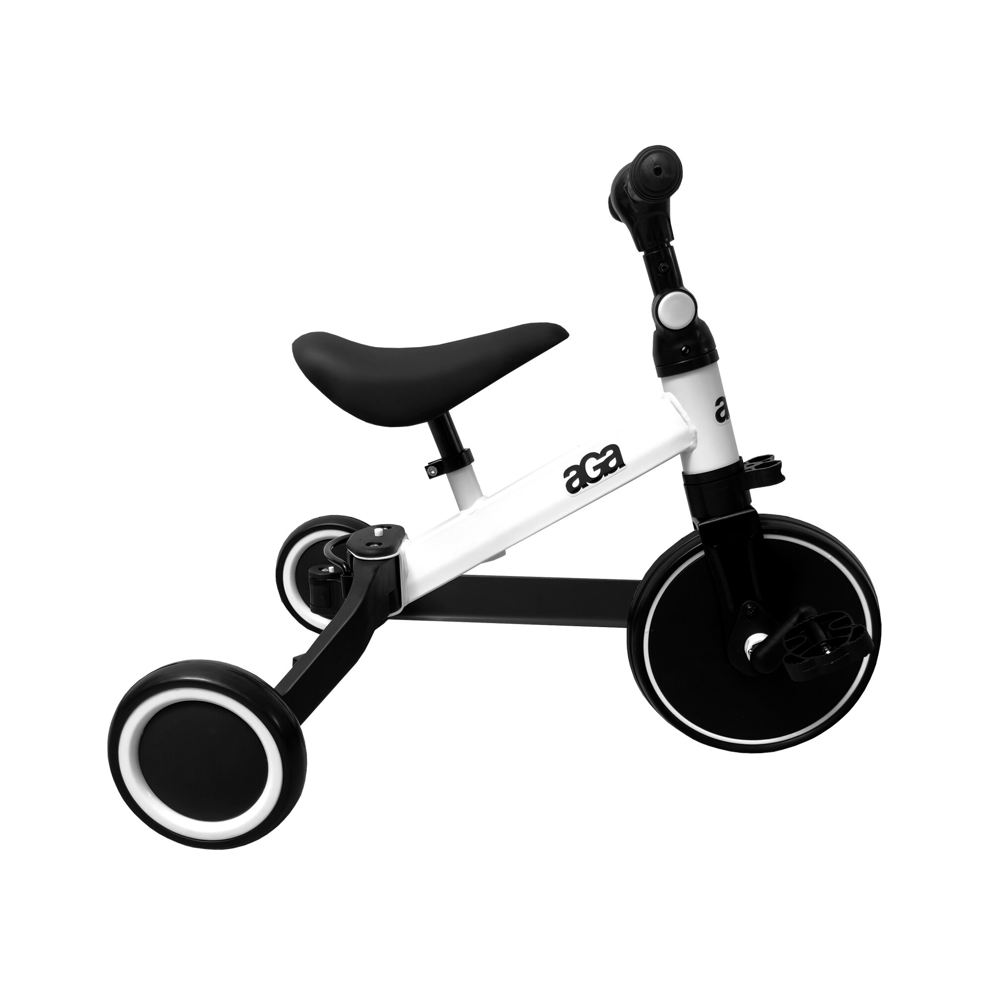 A futóbicikli villámgyorsan átalakítható kerékpárrá, háromkerekűvé vagy akár futóbiciklire segédkerekekkel a még nagyobb stabilitás érdekében.