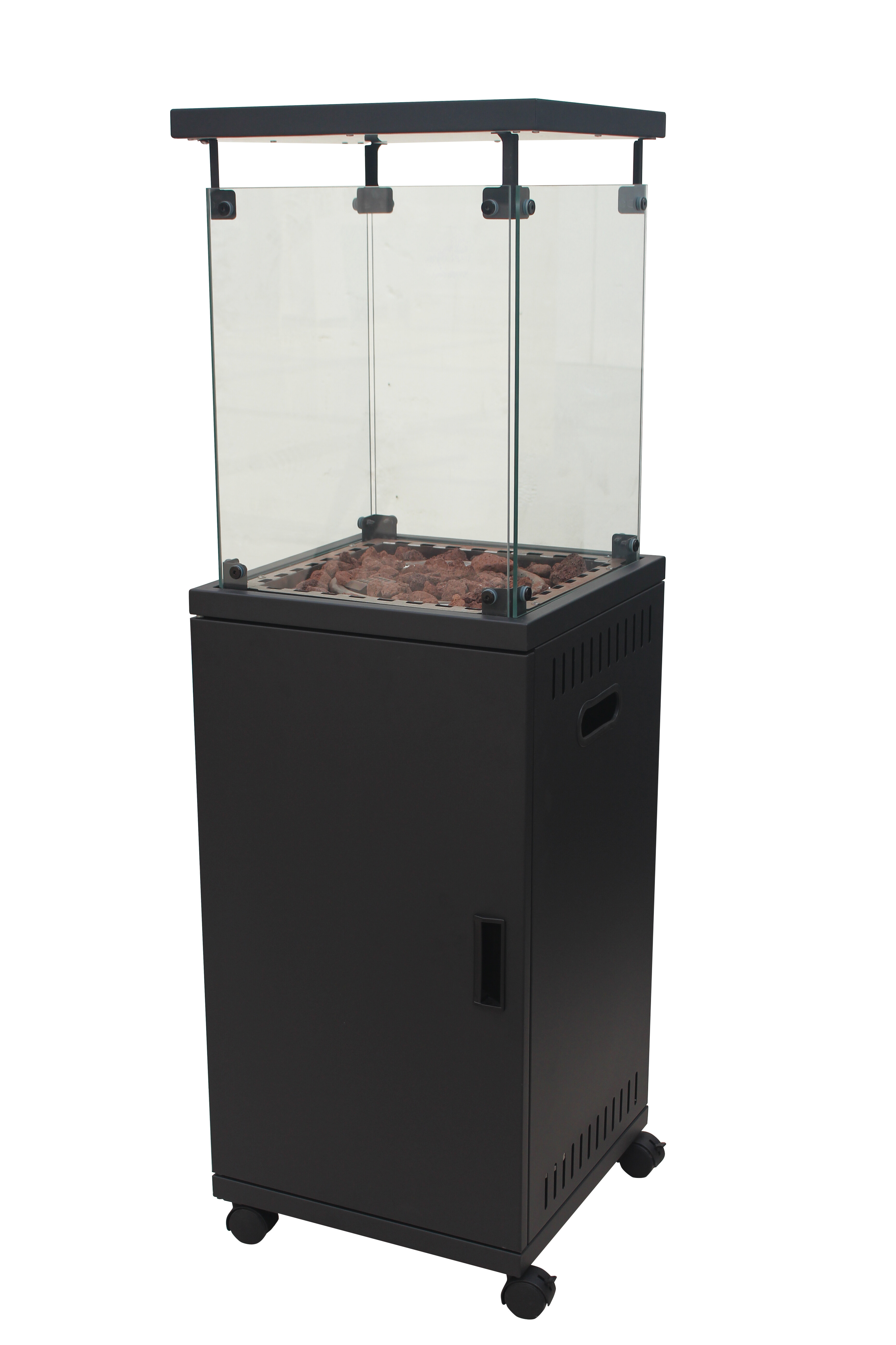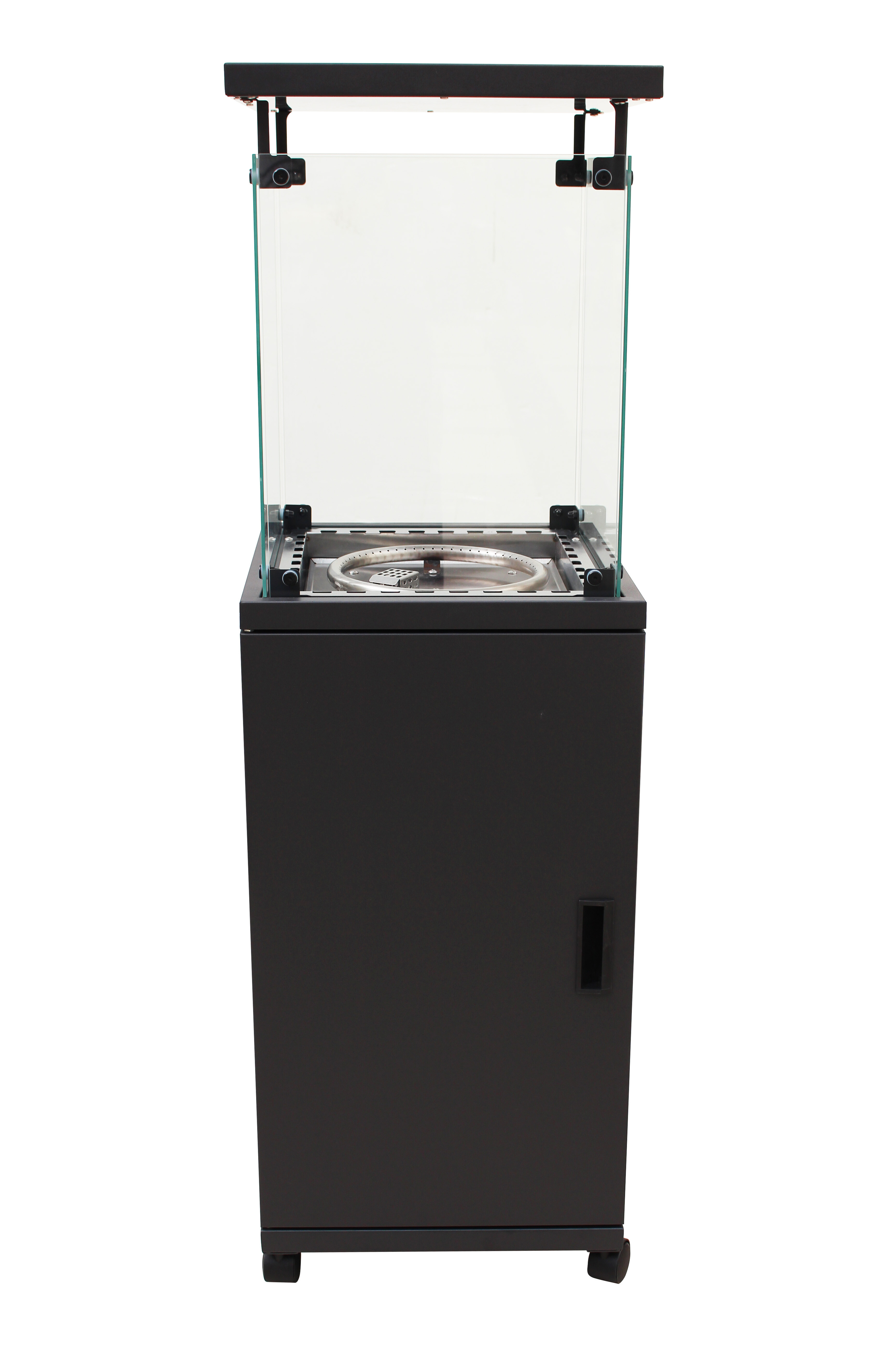 A vezérlés egyszerű, csak csatlakoztassa a hősugárzót egy 5 vagy 10 kg-os propán-bután palackhoz, amelynek tárolására a melegítő állványában van hely. Ezután nyomja meg a mechanikus piezoelektromos gyújtás gombját, és az Aga kültéri hősugárzó elkezd melegíteni.