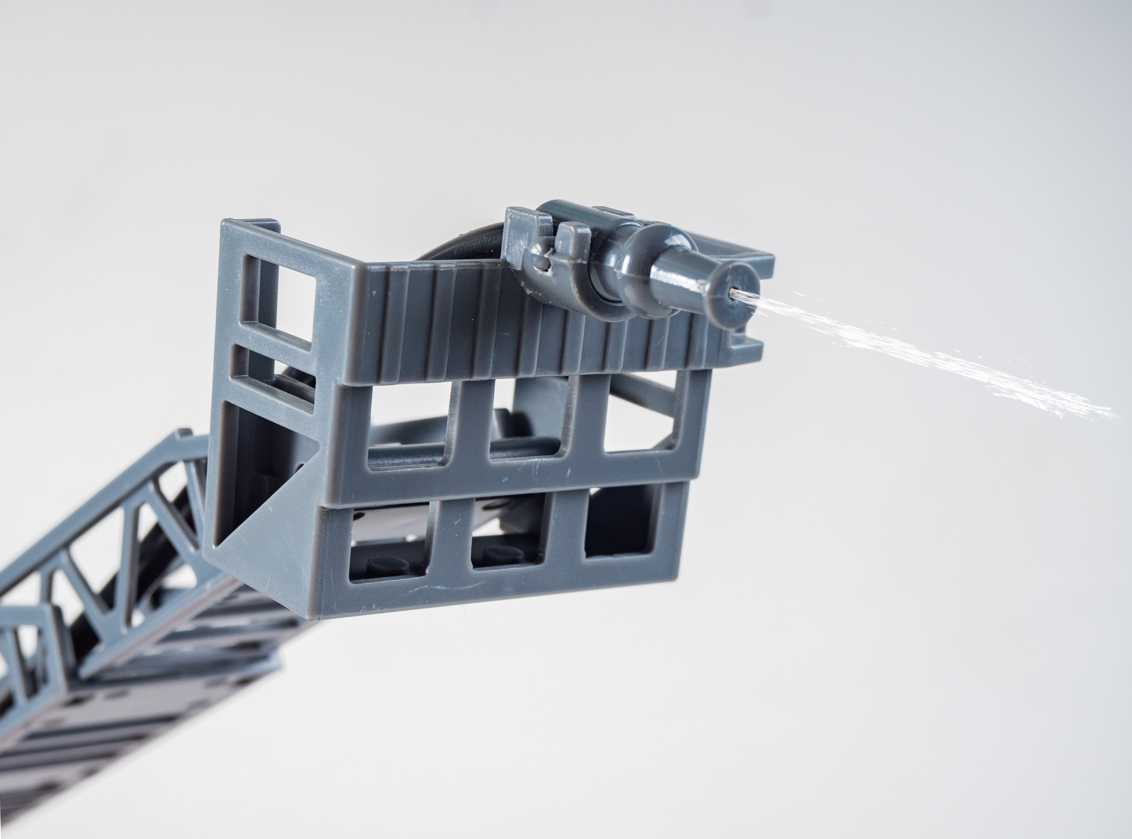 - Állítható létra tűzoltó tömlővel, amelyből víz spriccel