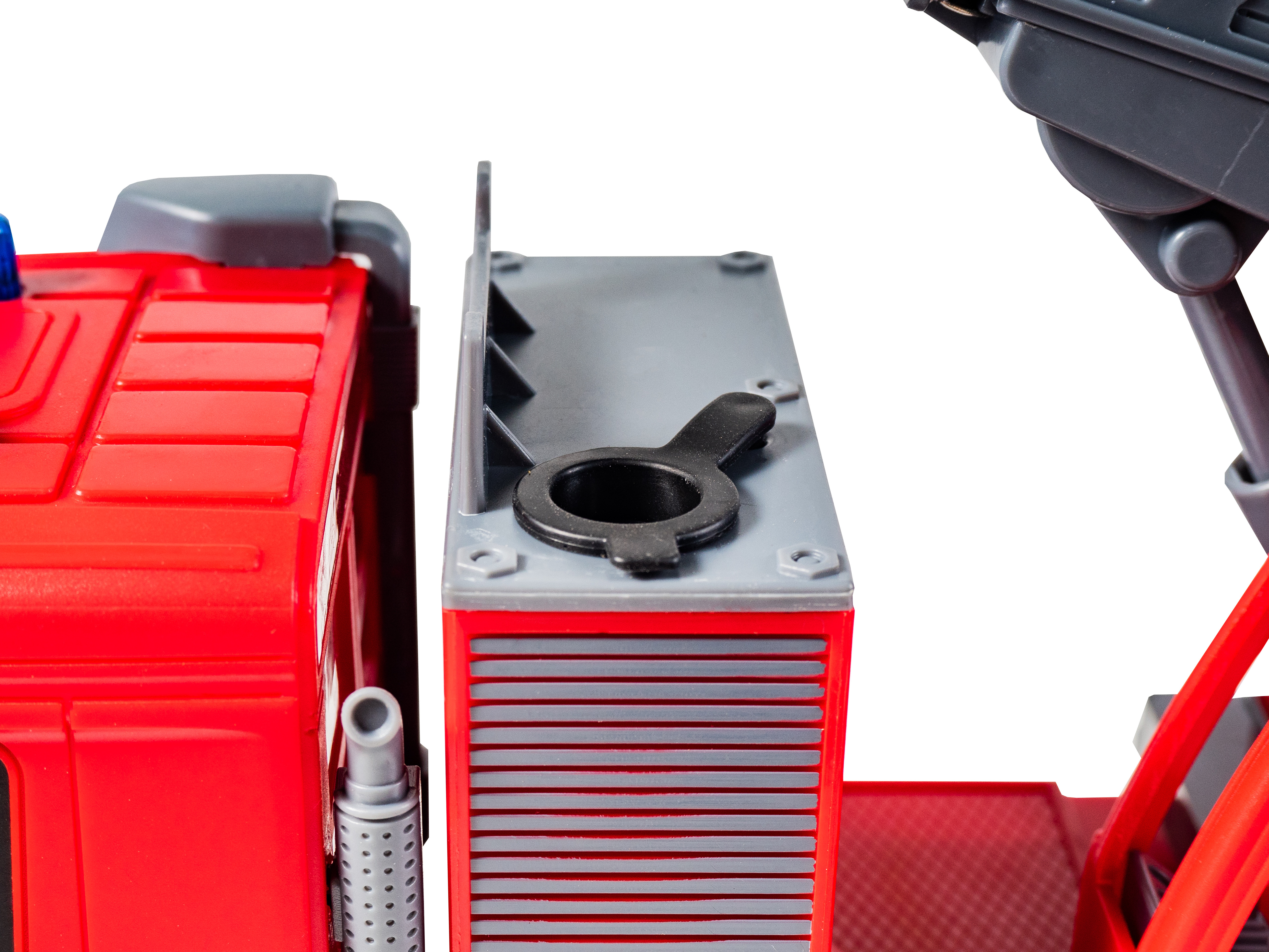 A jármű tűzoltó tömlővel is rendelkezik, amelyből víz folyik! Csak töltse fel a jármű utánfutóján elhelyezett tartályt.