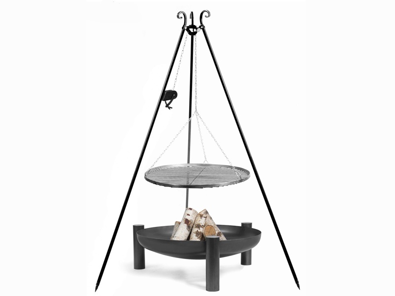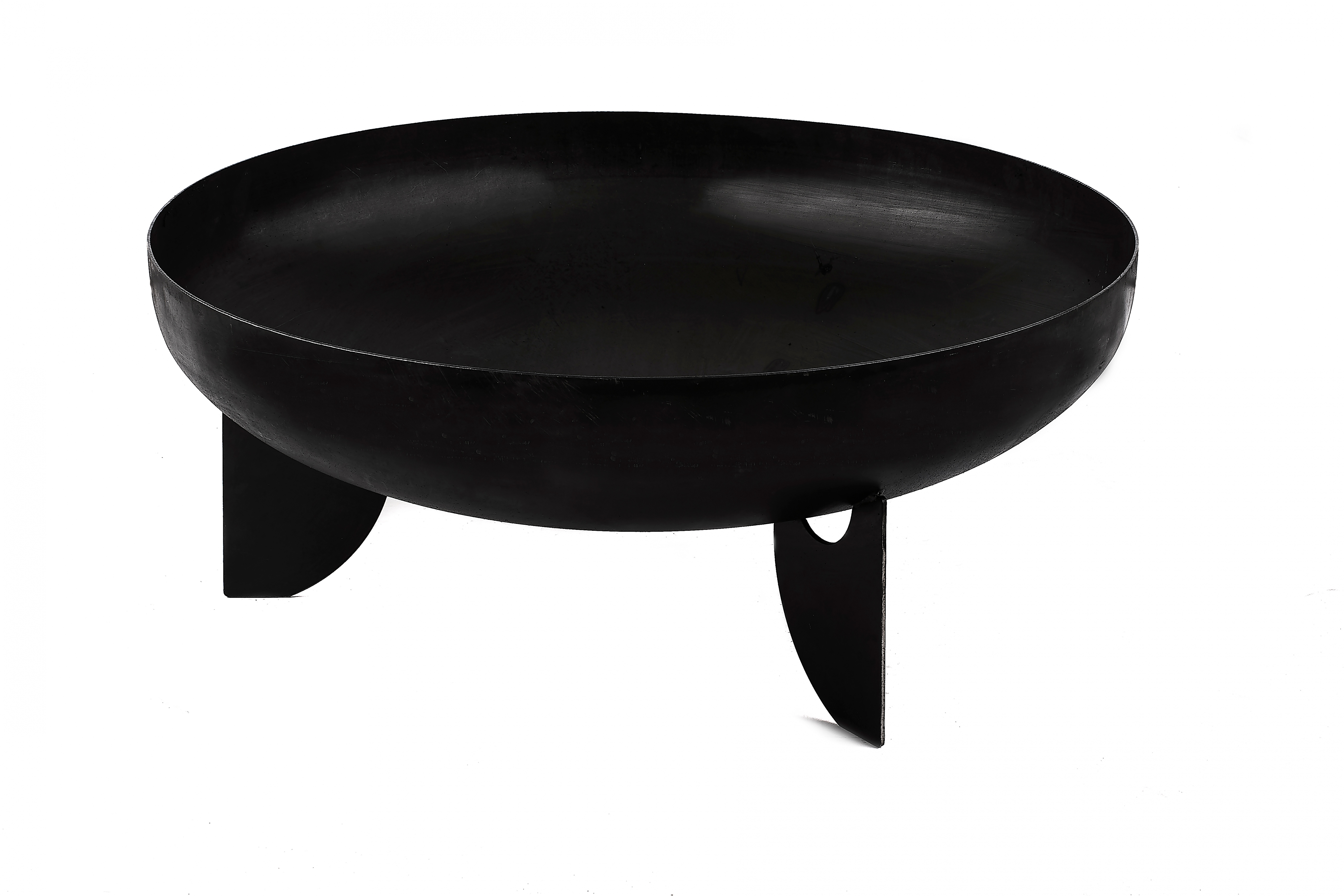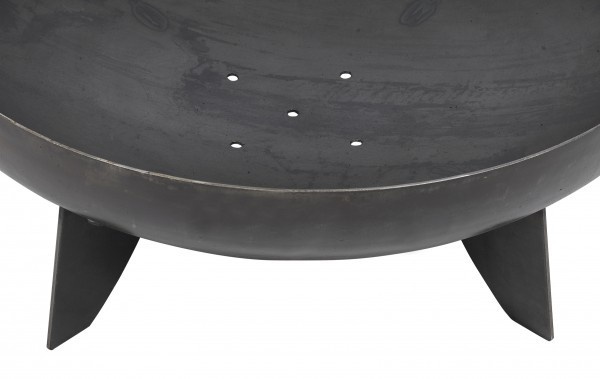 A 80 cm átmérőjű és 21 cm mélységű kerek kandalló kb. 2,5 mm vastagságú tömör acélból készül. A maximális stabilitás garantálása érdekében három, ugyanabból az anyagból készült szilárd talapzattal van felszerelve.