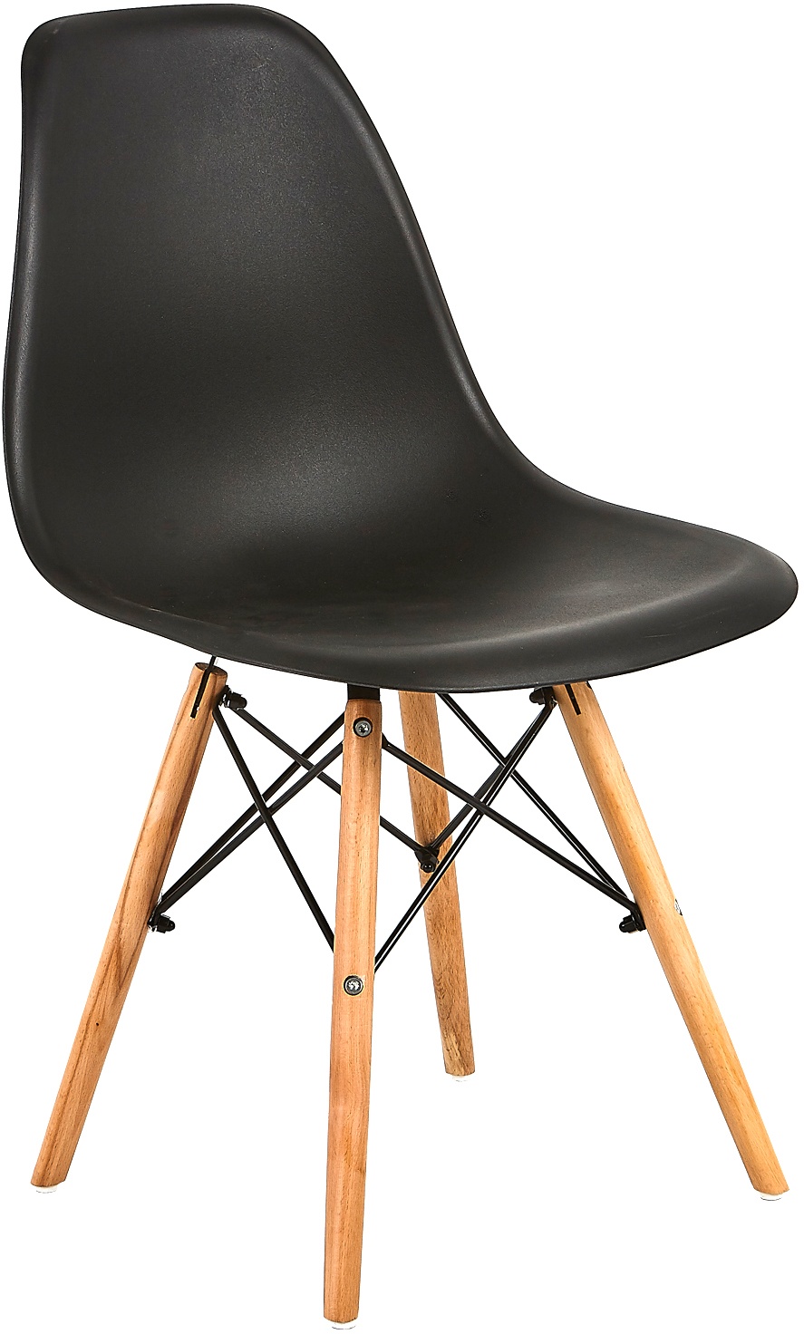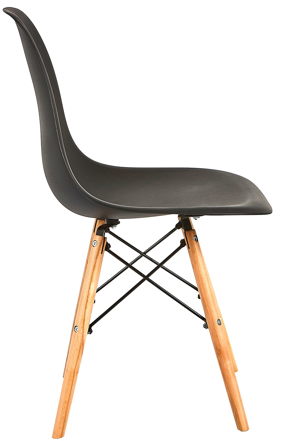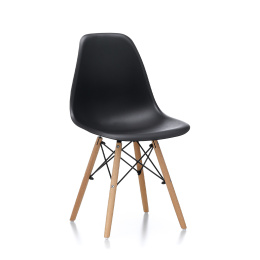 Szék, amely gyönyörű retro modern dizájnnal rendelkezik, gyönyörűen formázott üléssel és fa lábakkal.