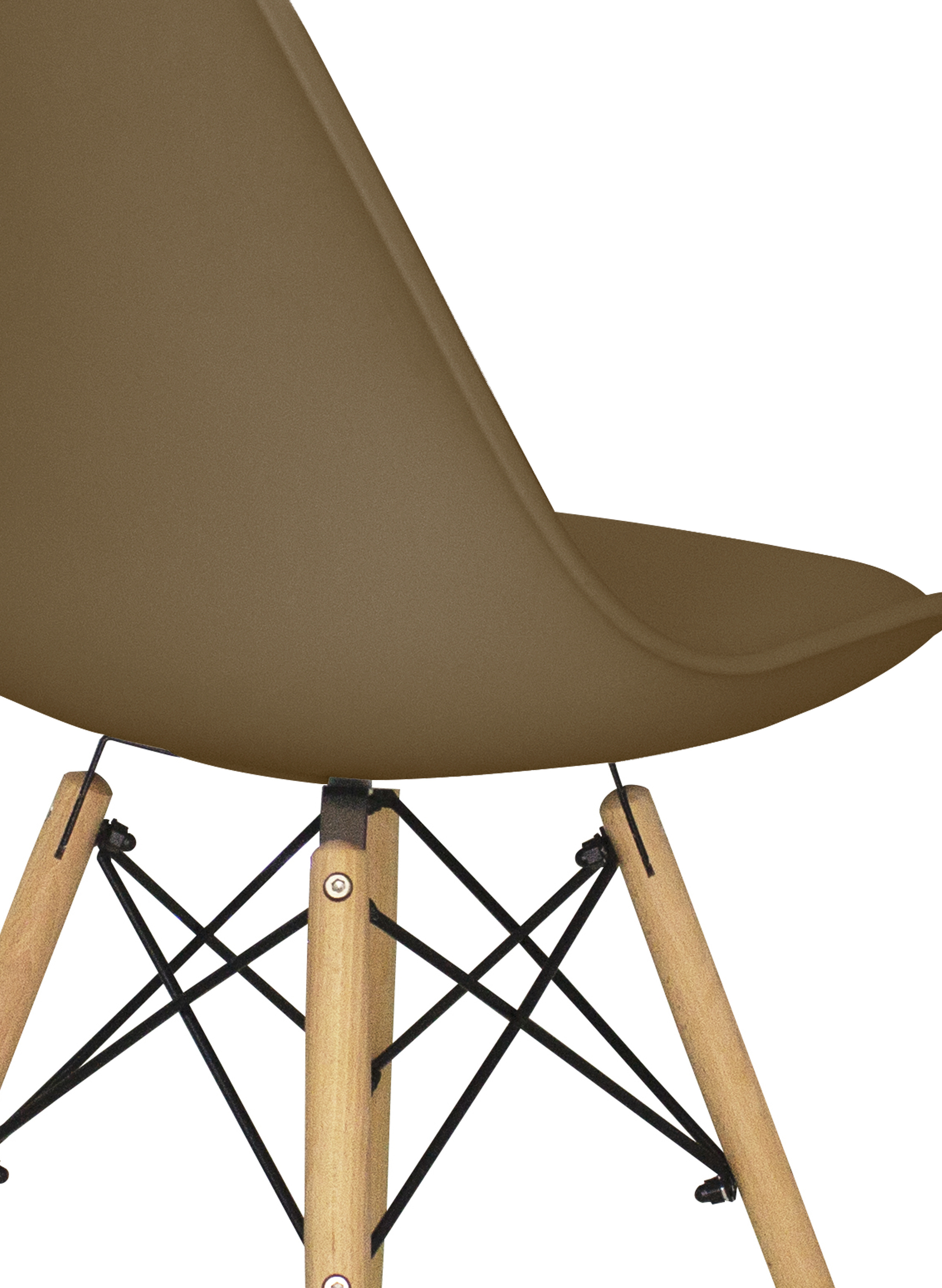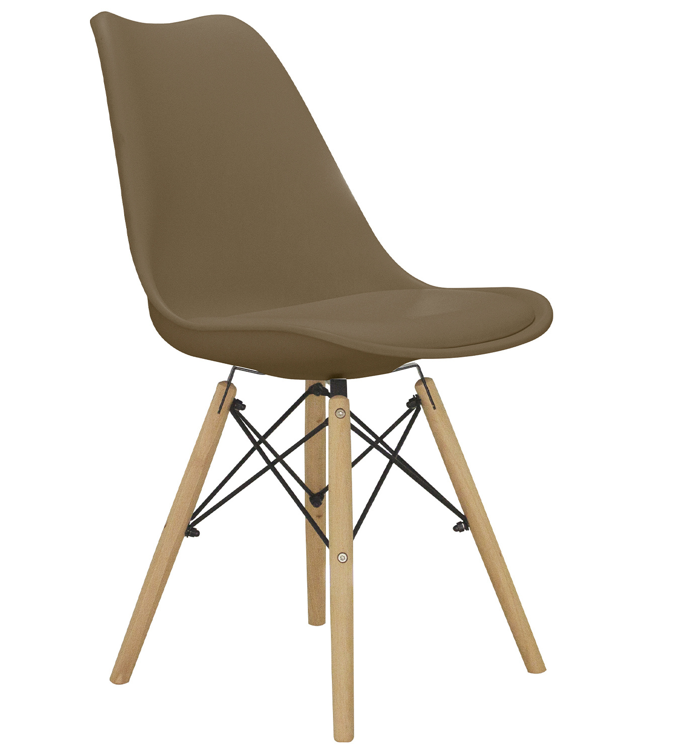 A szék kiváló minőségű és tartós polipropilénből készült, műbőr huzattal ellátott párnával, bükkfa lábakkal kombinálva.