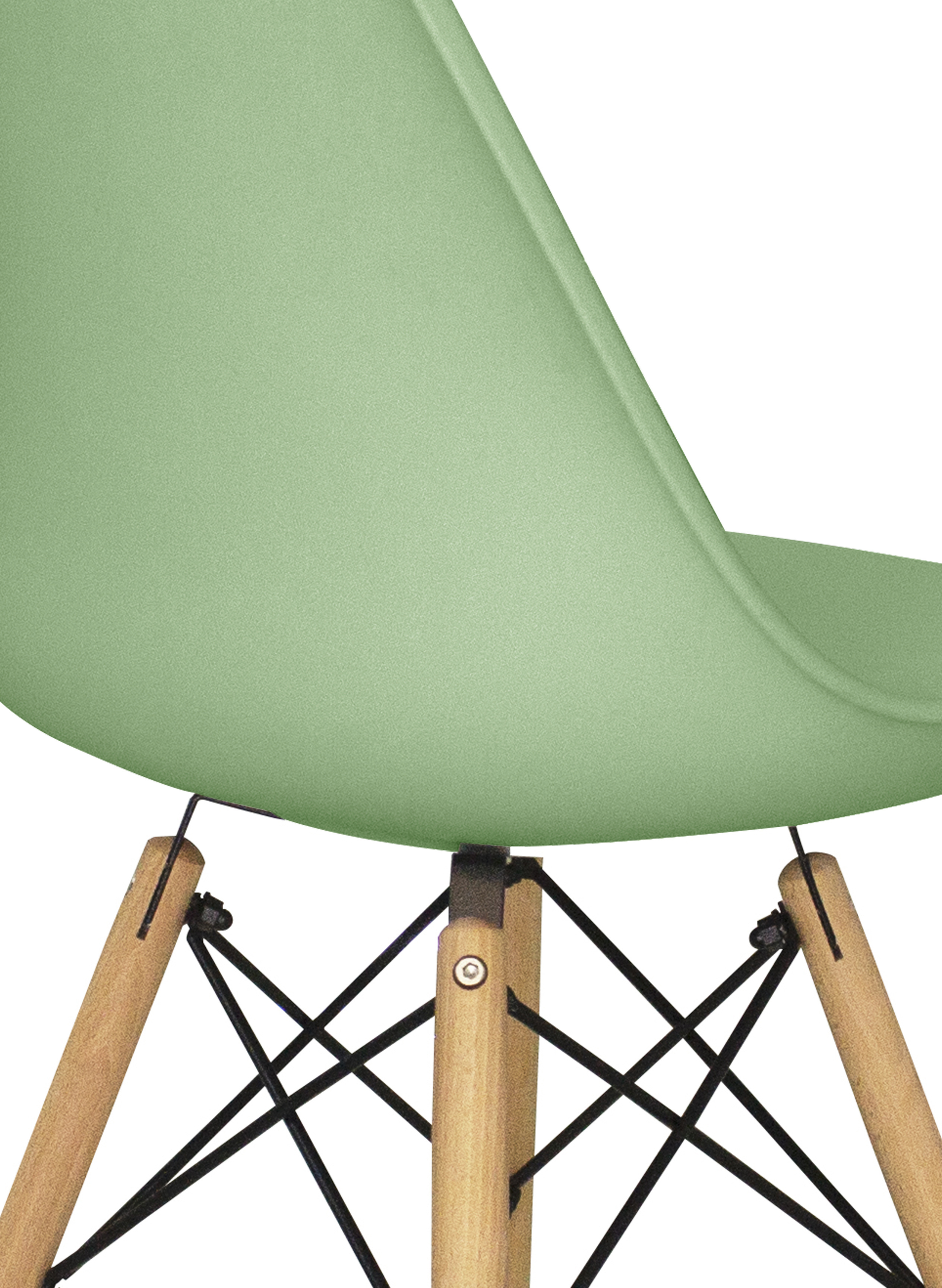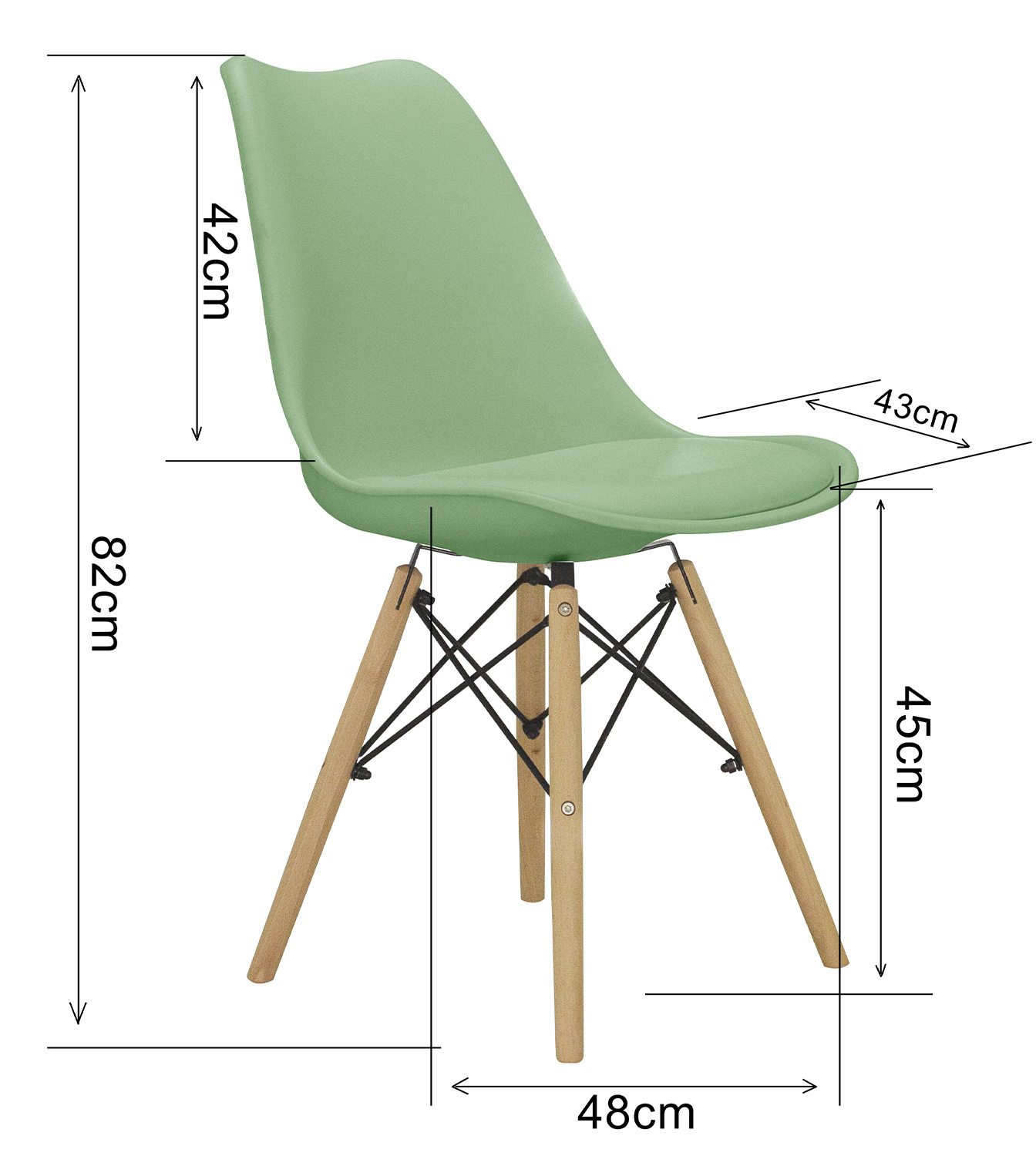 A szék kiváló minőségű és tartós polipropilénből készült, műbőr huzattal ellátott párnával, bükkfa lábakkal kombinálva.