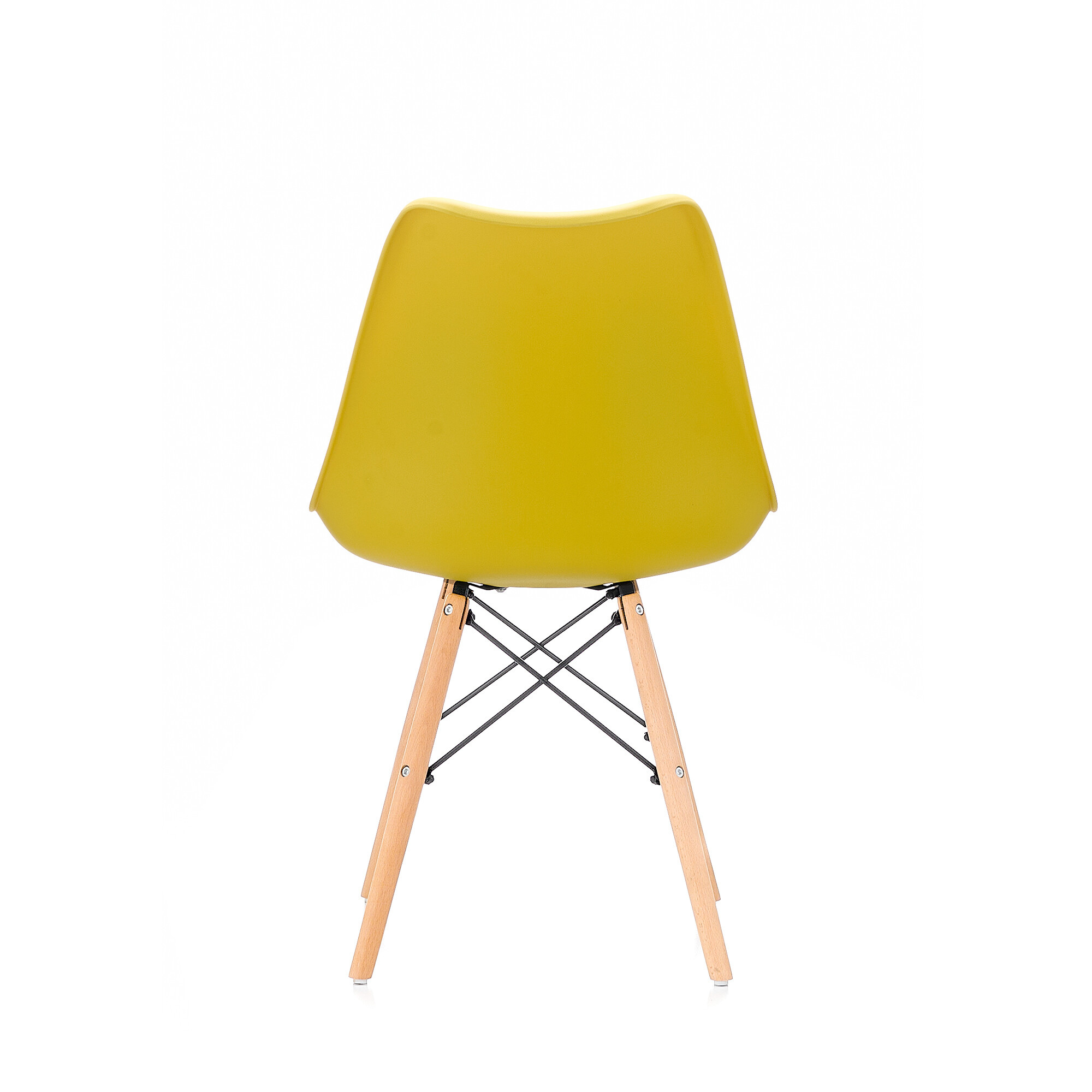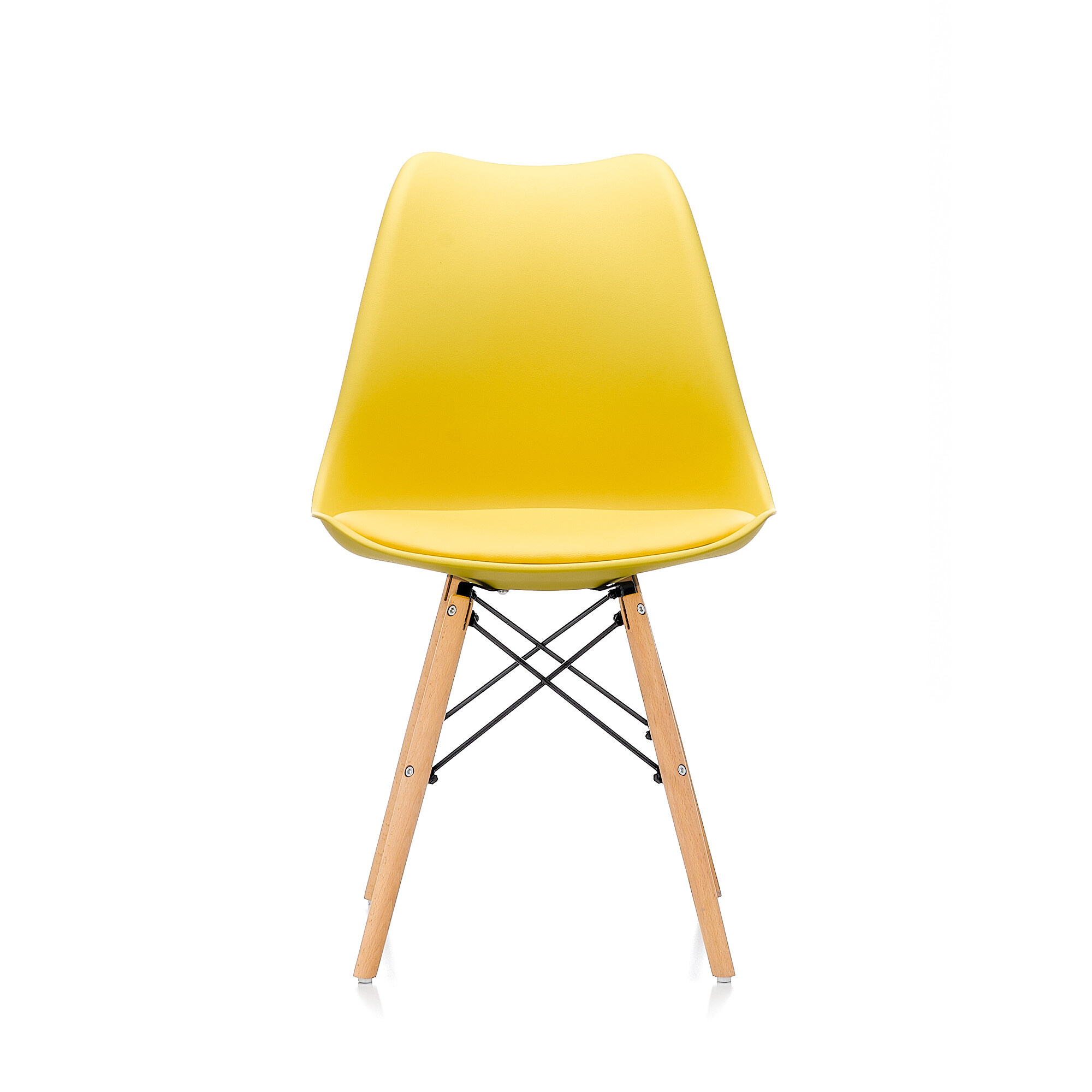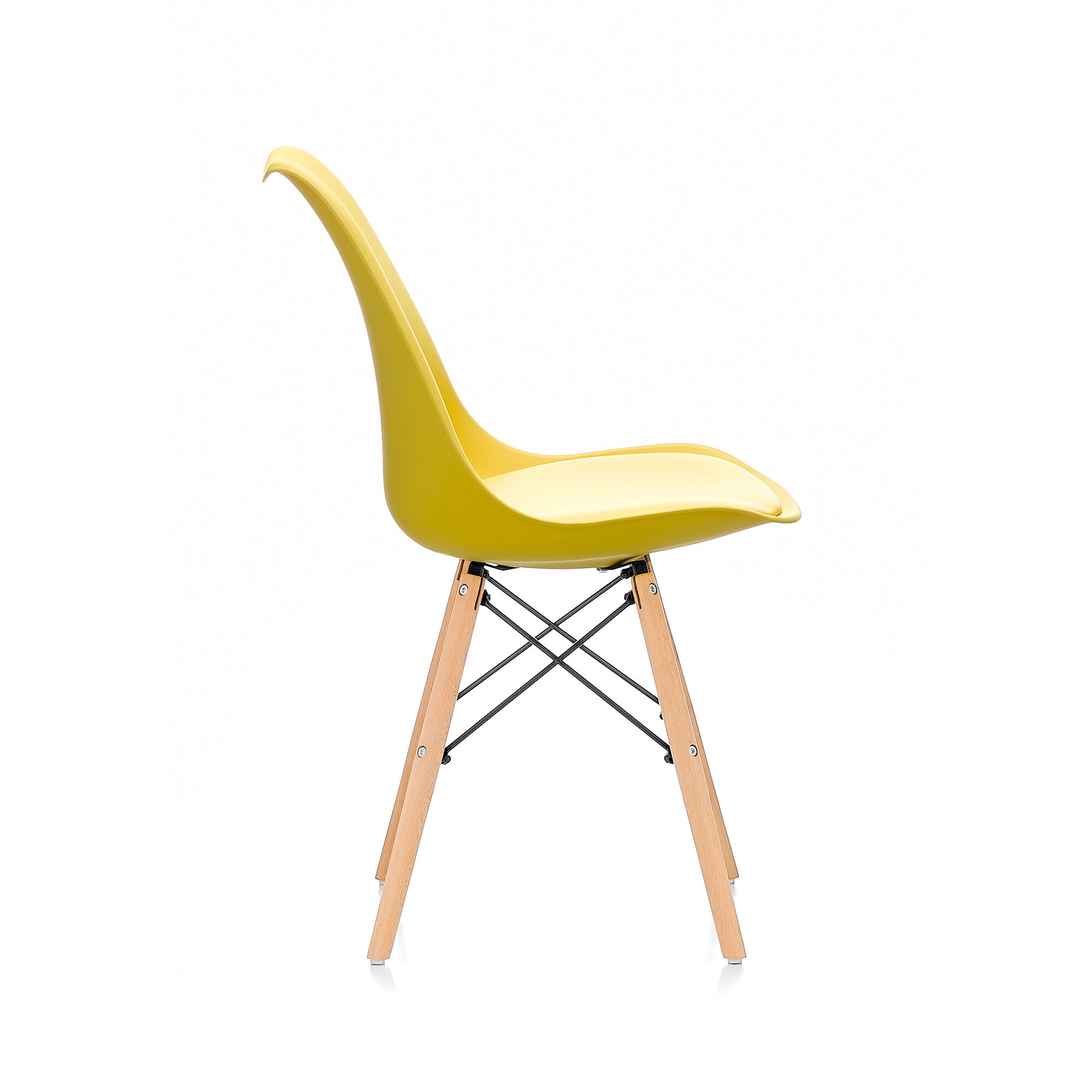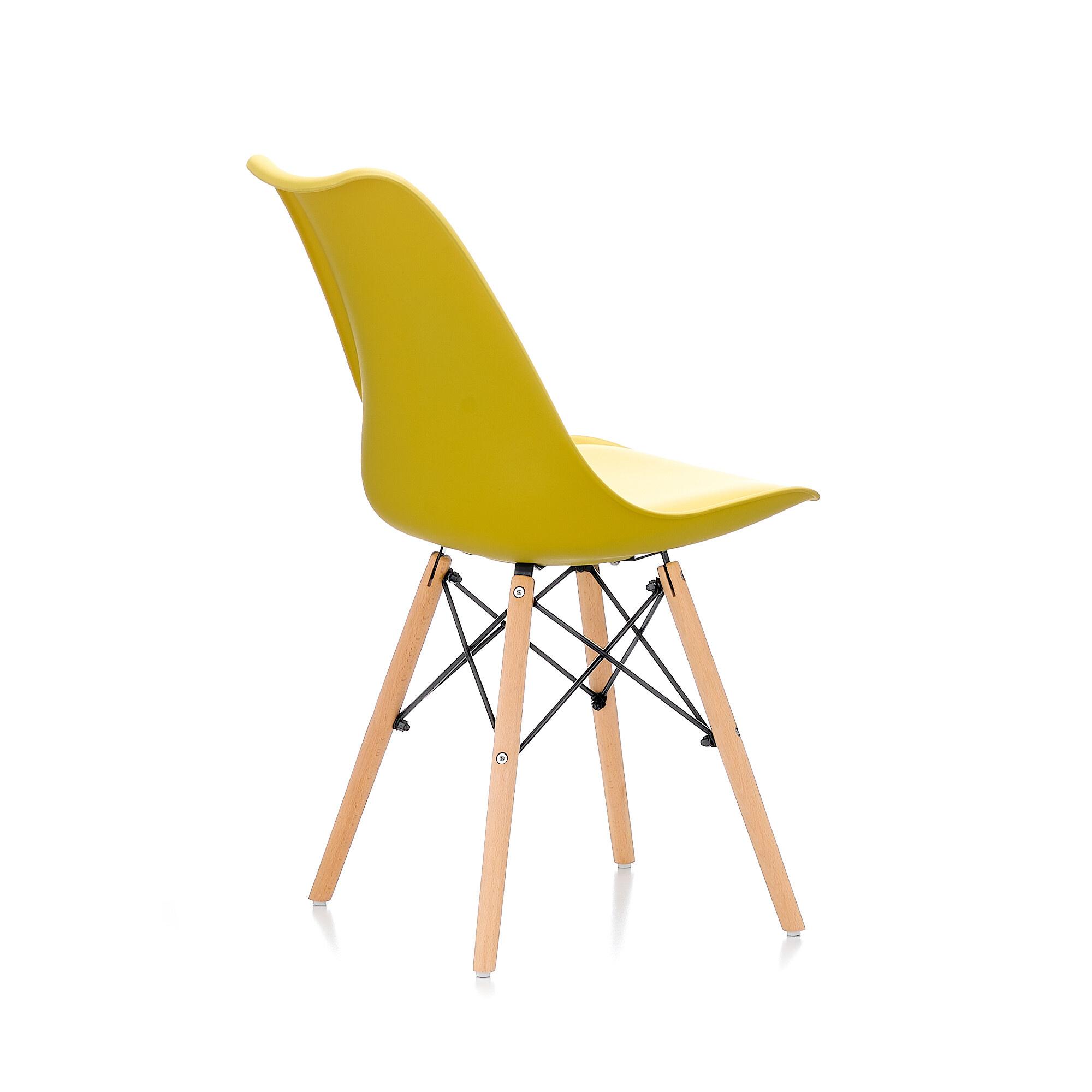 A szék kiváló minőségű és tartós polipropilénből készült, műbőr huzattal ellátott párnával, bükkfa lábakkal kombinálva.
