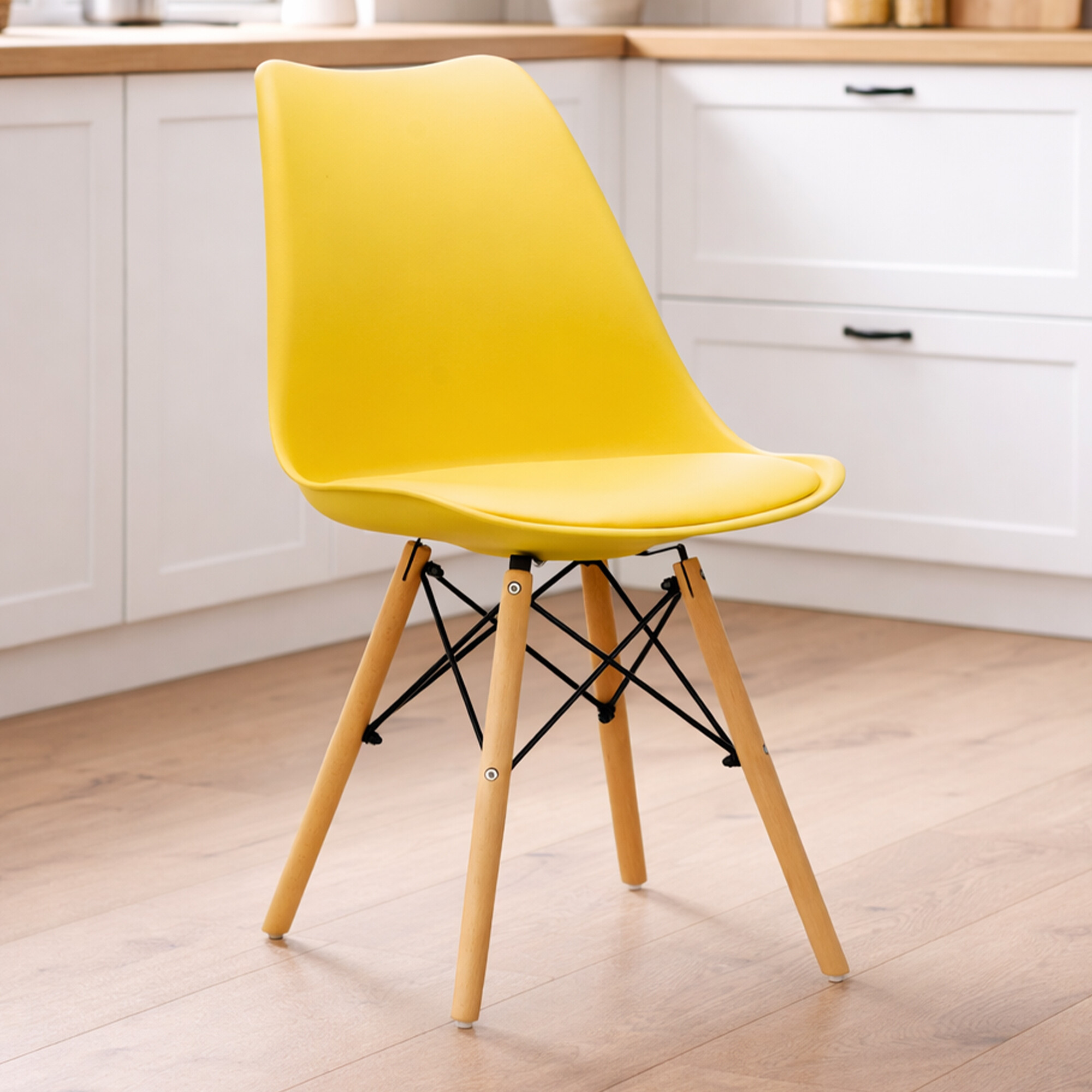 Egyszerű skandináv stílusban tervezett étkezőszék.