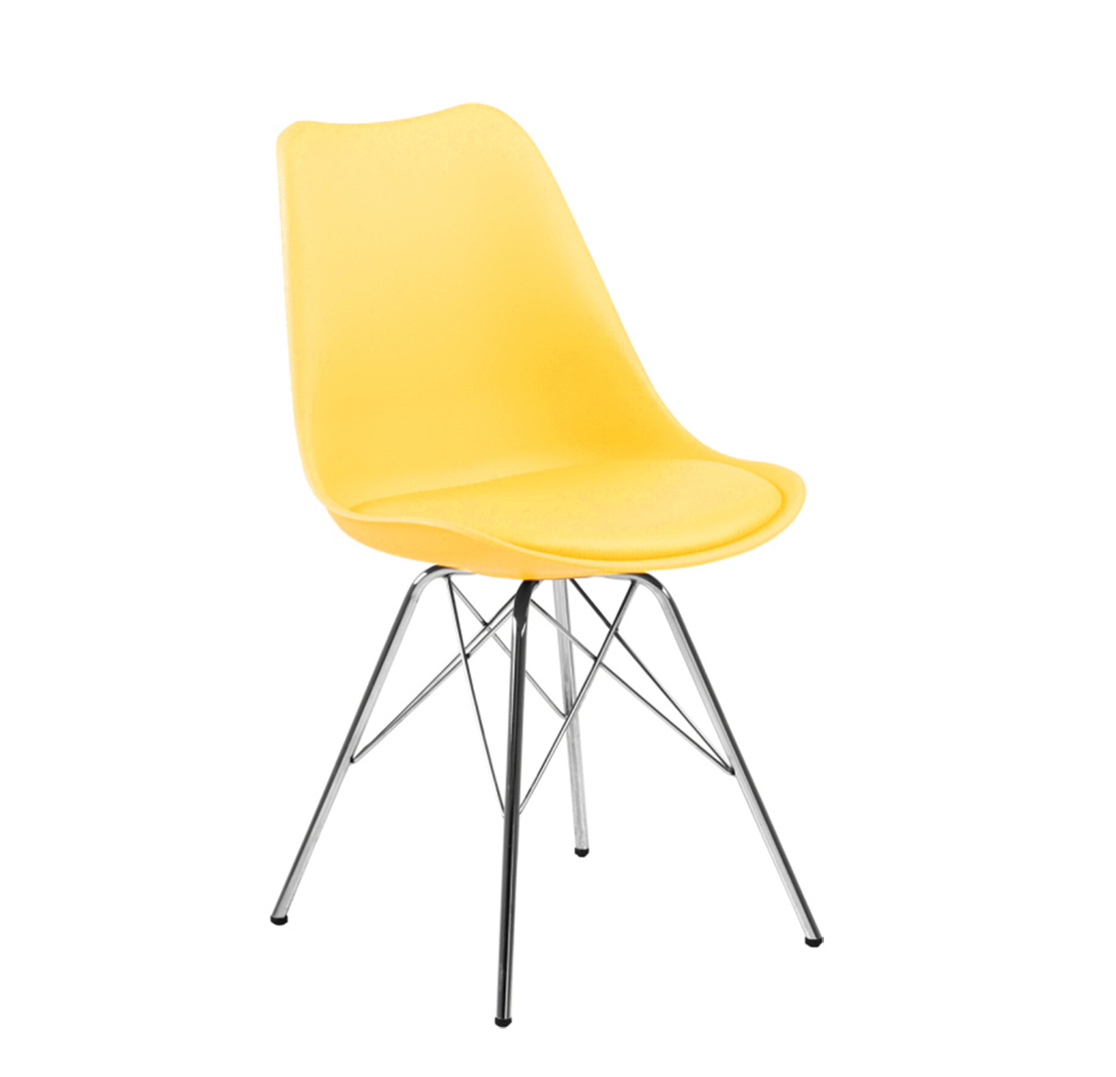 A szék kiváló minőségű és tartós polipropilénből készült, műbőr borítású párnával és acél talppal kombinálva.