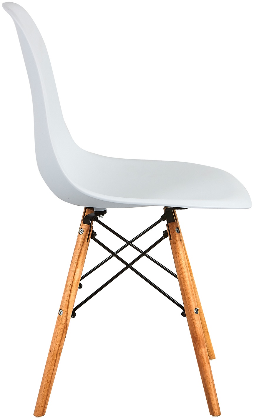 Szék, amely gyönyörű retro modern dizájnnal rendelkezik, gyönyörűen formázott üléssel és fa lábakkal.