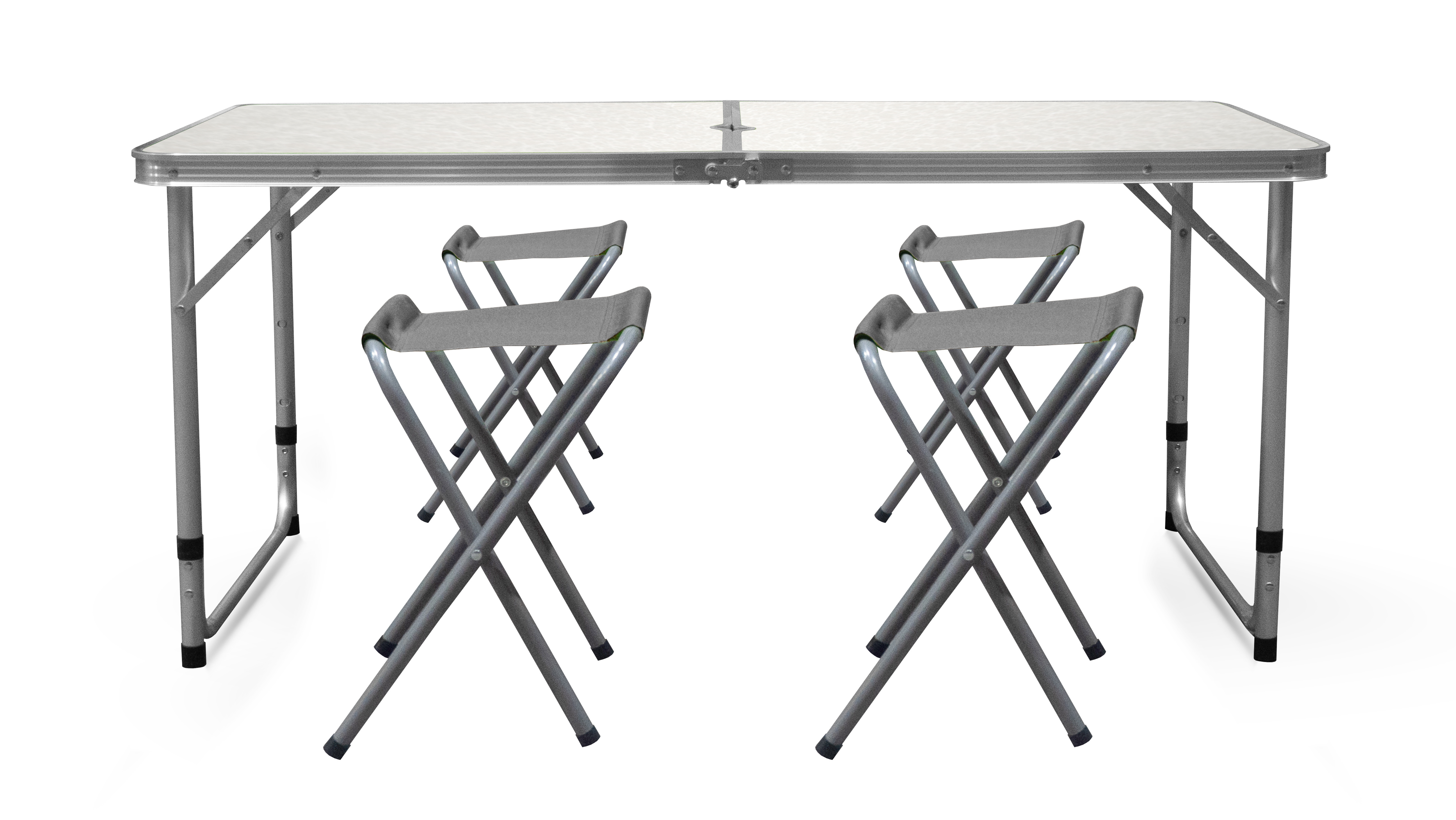 Ennek az asztalnak és székeknek az előnye a rendkívüli kompakt méret és az egyszerű összeszerelhetőség.