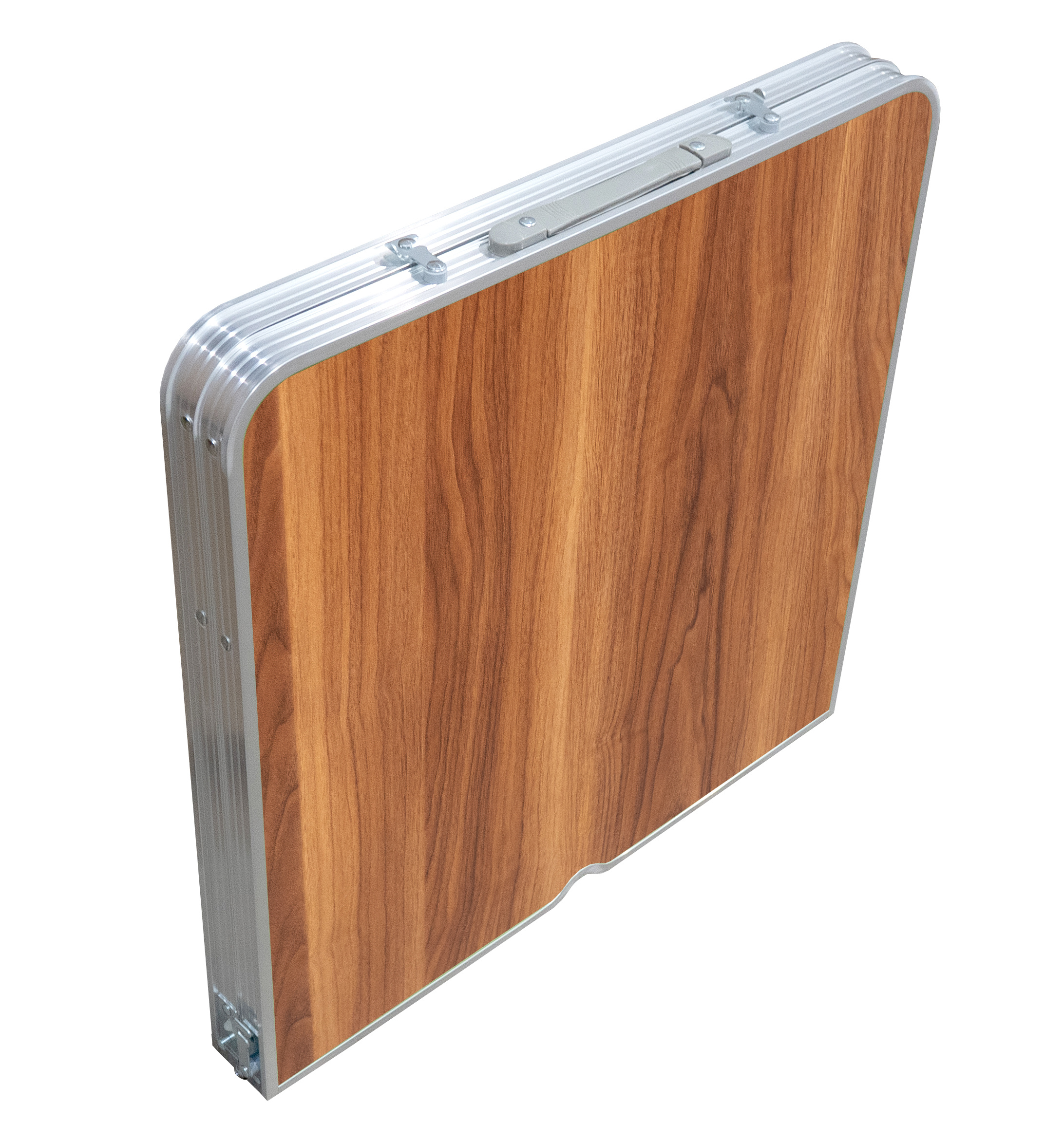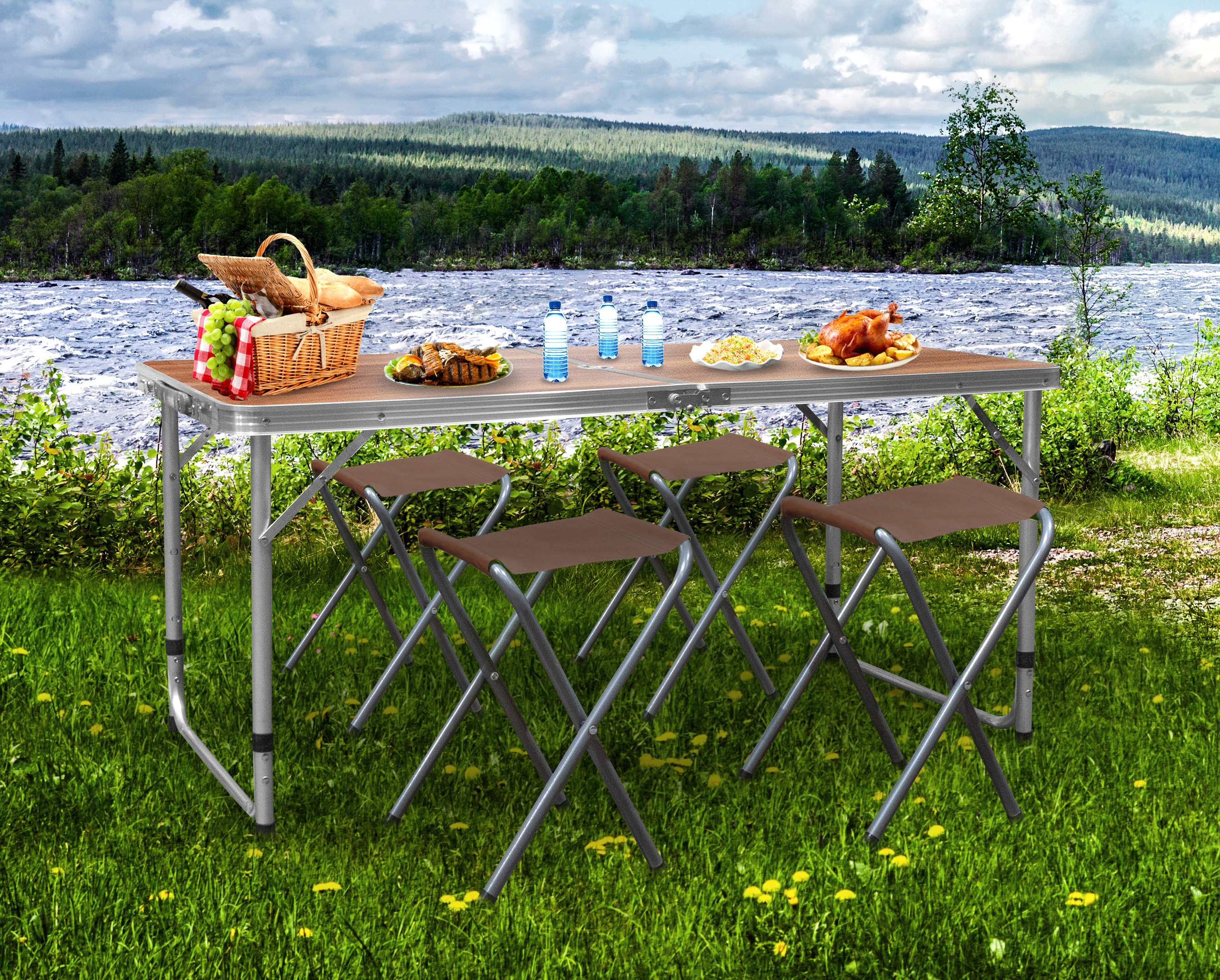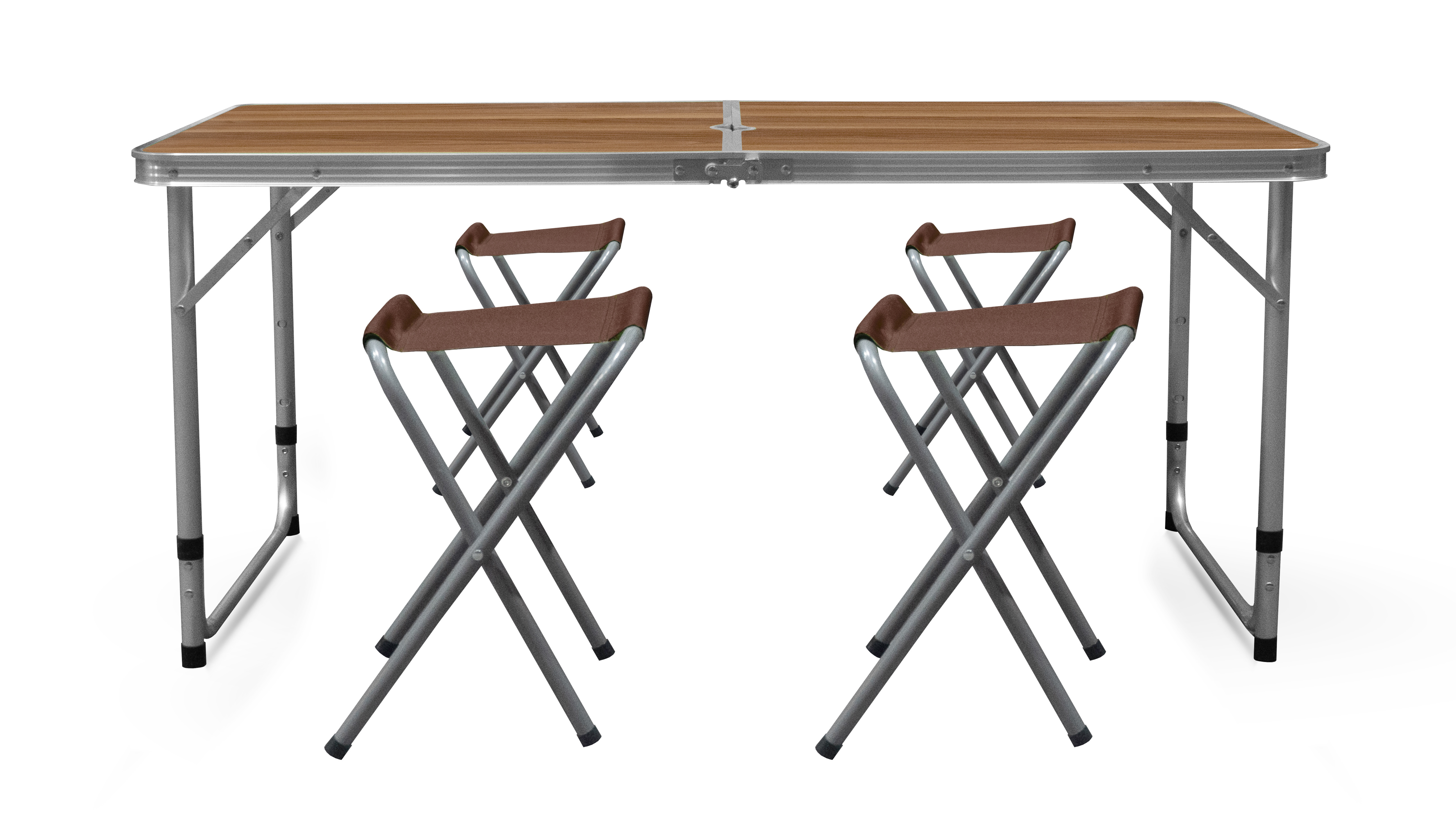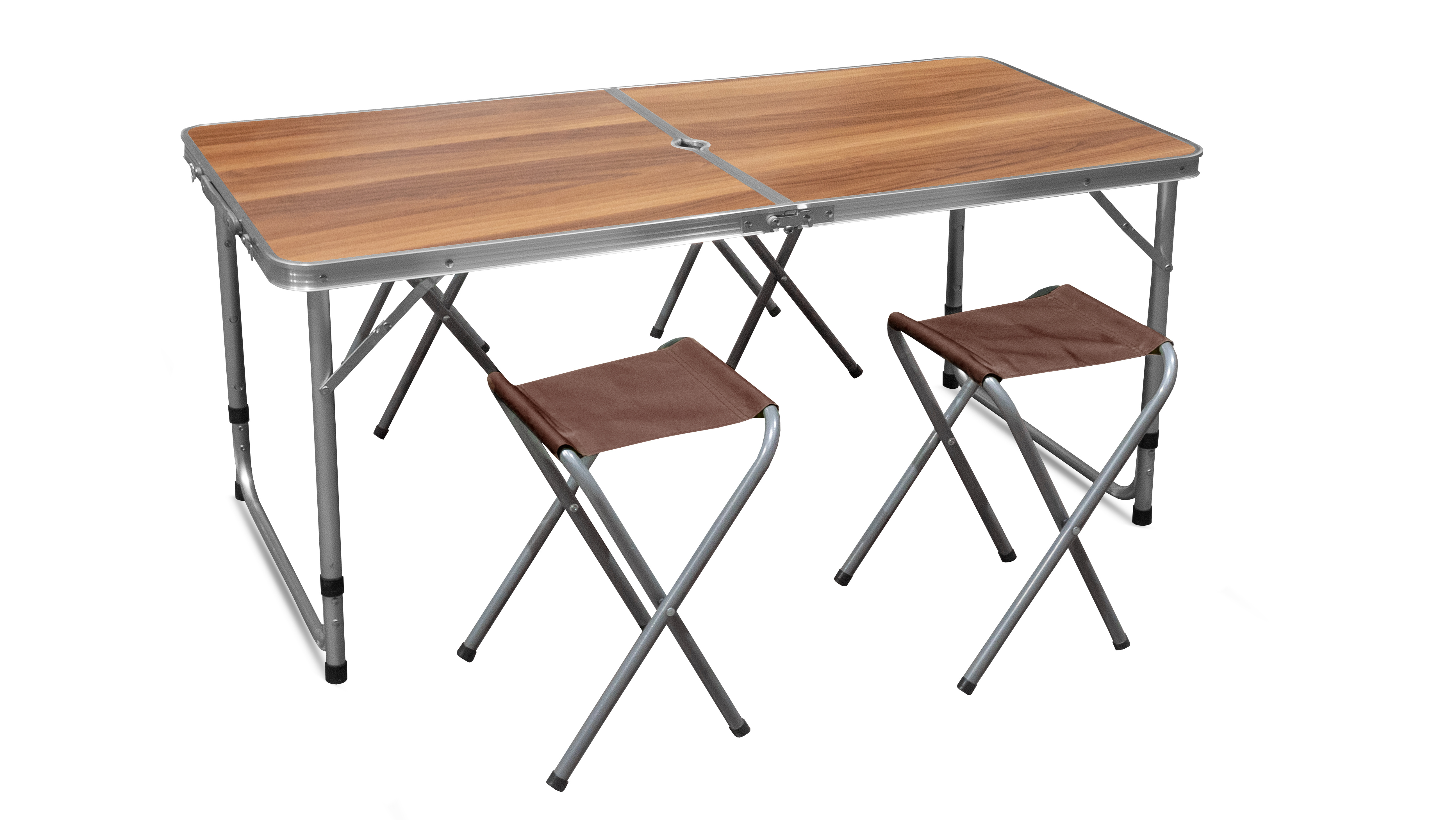 Összecsukott állapotban a készlet kompakt méretekkel rendelkezik: 63 × 6,5 × 63 cm, ami megkönnyíti a szállítást és a tárolást. A zármechanizmusnak köszönhetően nem kell attól tartania, hogy az asztal használat közben véletlenül összecsukódik.A kempingkészlet egyik legnagyobb előnye a könnyű kezelhetőség. Az üzembe helyezés néhány másodperc kérdése, amit különösen a gyors csomagolás és kicsomagolás során fog értékelni. A székeket közvetlenül az asztalba lehet helyezni, ami helyet takarít meg és megkönnyíti a szállítást. Összecsukott állapotban a készlet egy lapos, fogantyús táblává alakul, amelyet könnyedén bárhová magával vihet.
