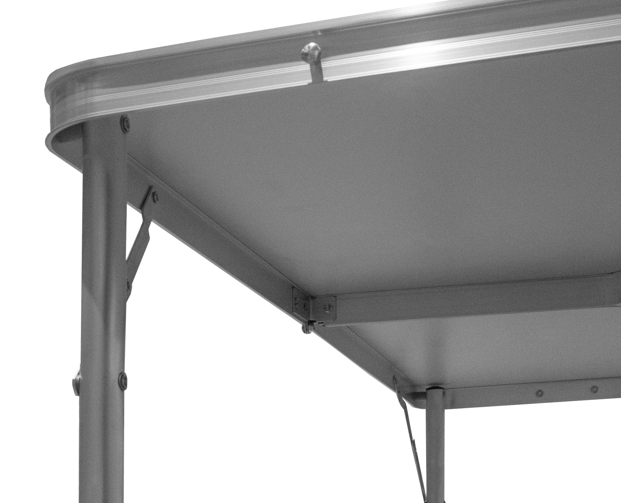 Az asztal kiváló minőségű alumíniumból és MDF-ből készült, ami biztosítja annak szilárdságát és stabilitását.