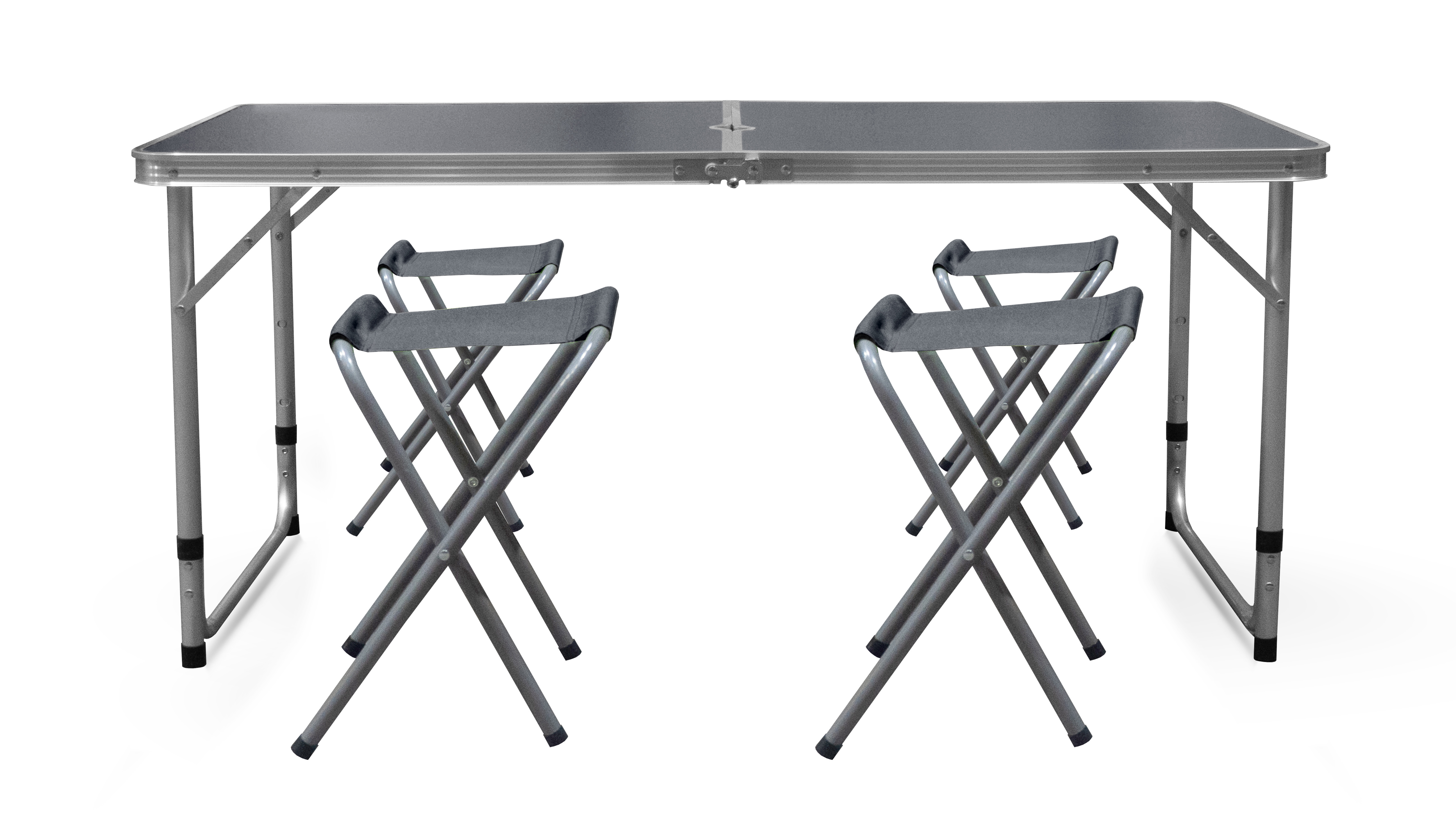 Ennek az asztalnak és székeknek az előnye a rendkívüli kompakt méret és az egyszerű összeszerelhetőség.