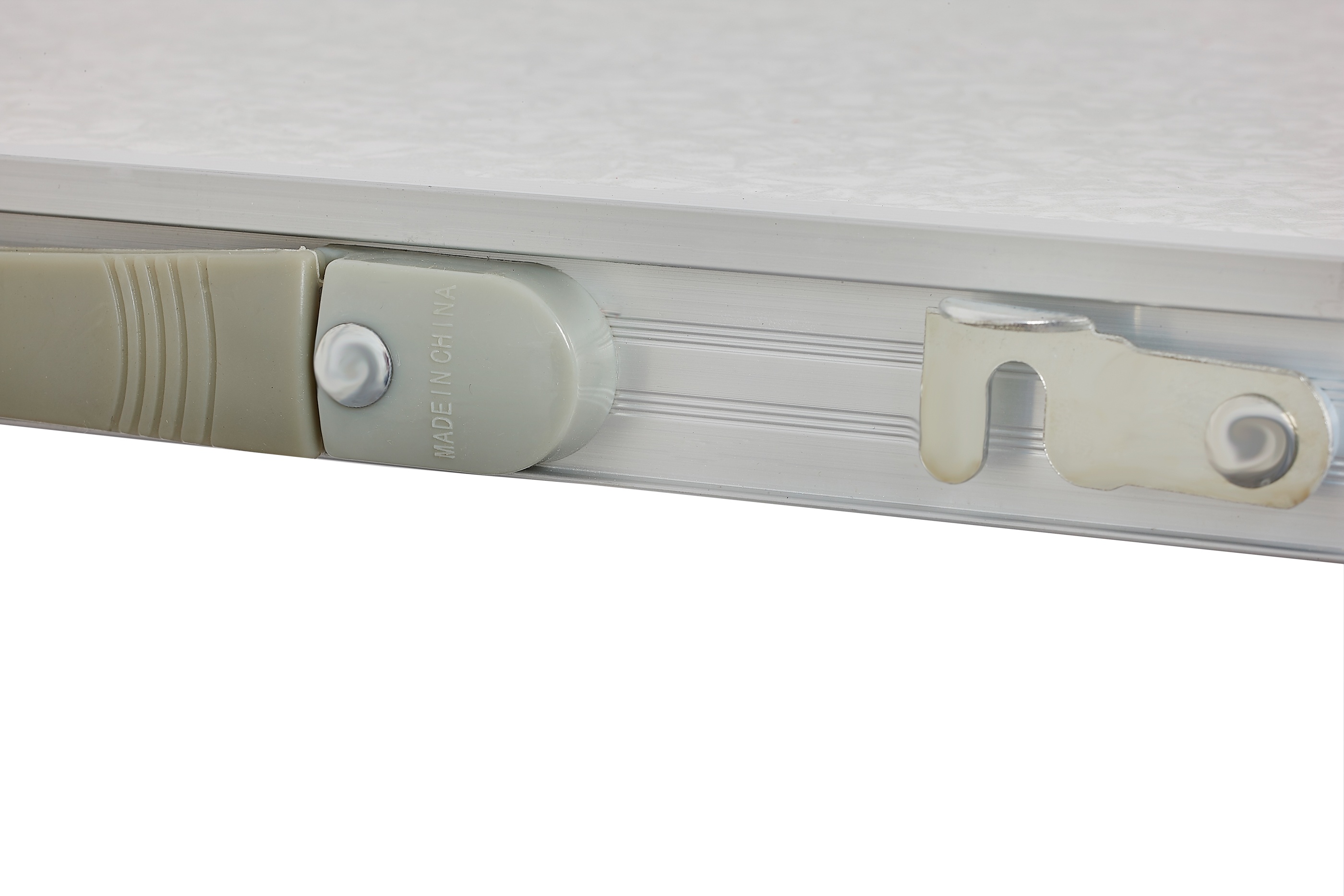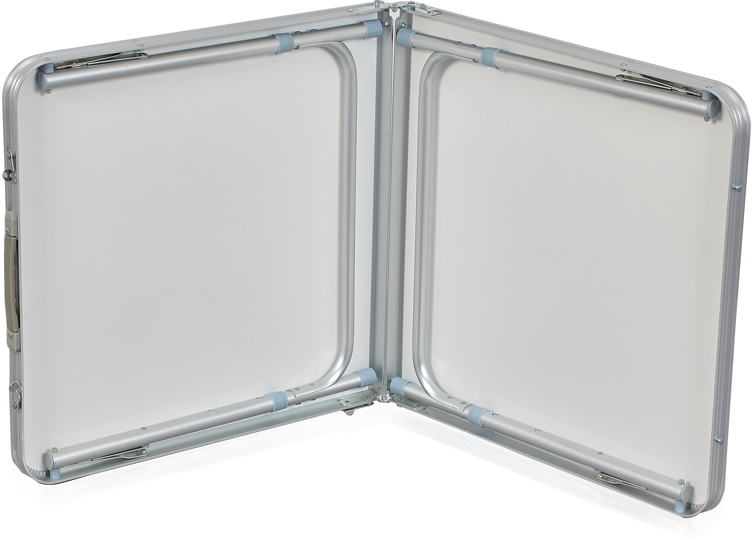- Összecsukott állapotban az asztal könnyen hordozható, egy lapos, fogantyúval ellátott tányér formájában