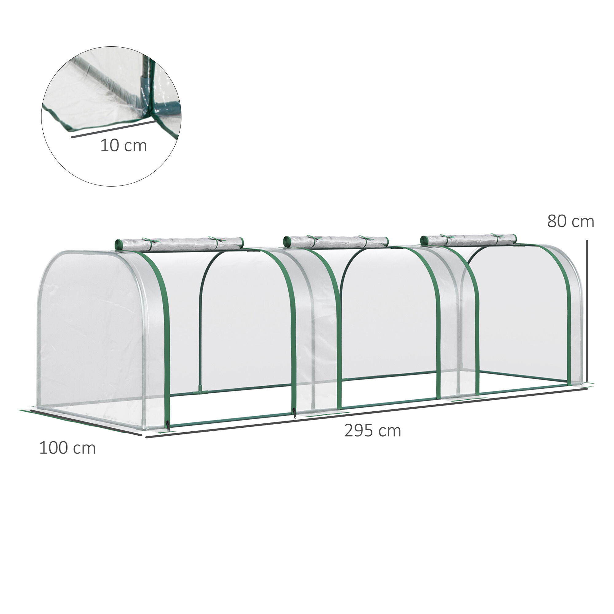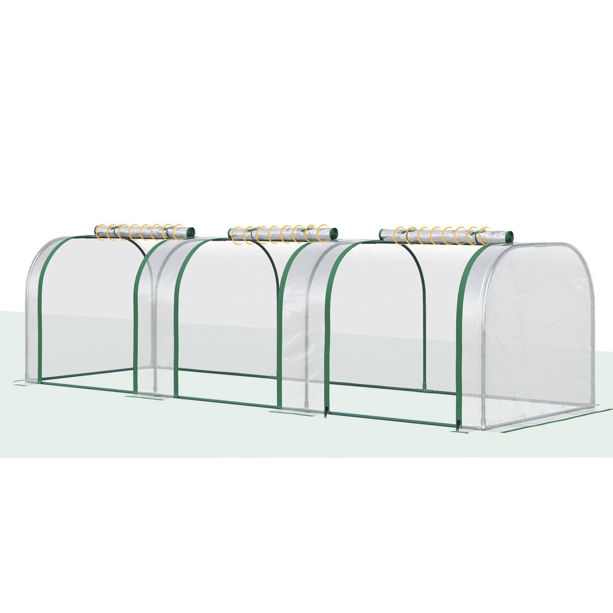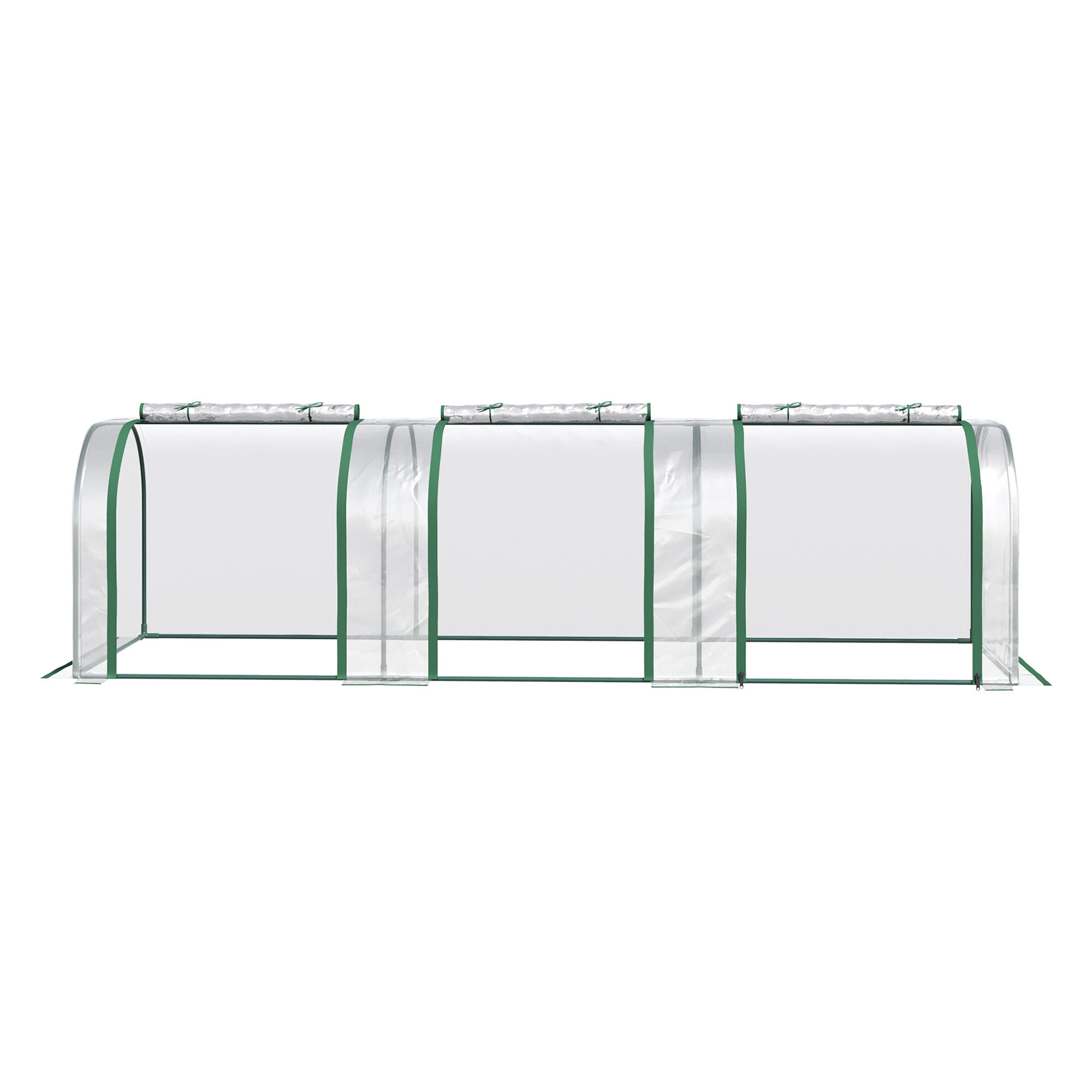 A fóliasátor könnyű, így könnyen áthelyezheti igényei szerint. Kettős cipzárral ellátott rolóablakokkal rendelkezik a könnyebb szellőzés érdekében.
