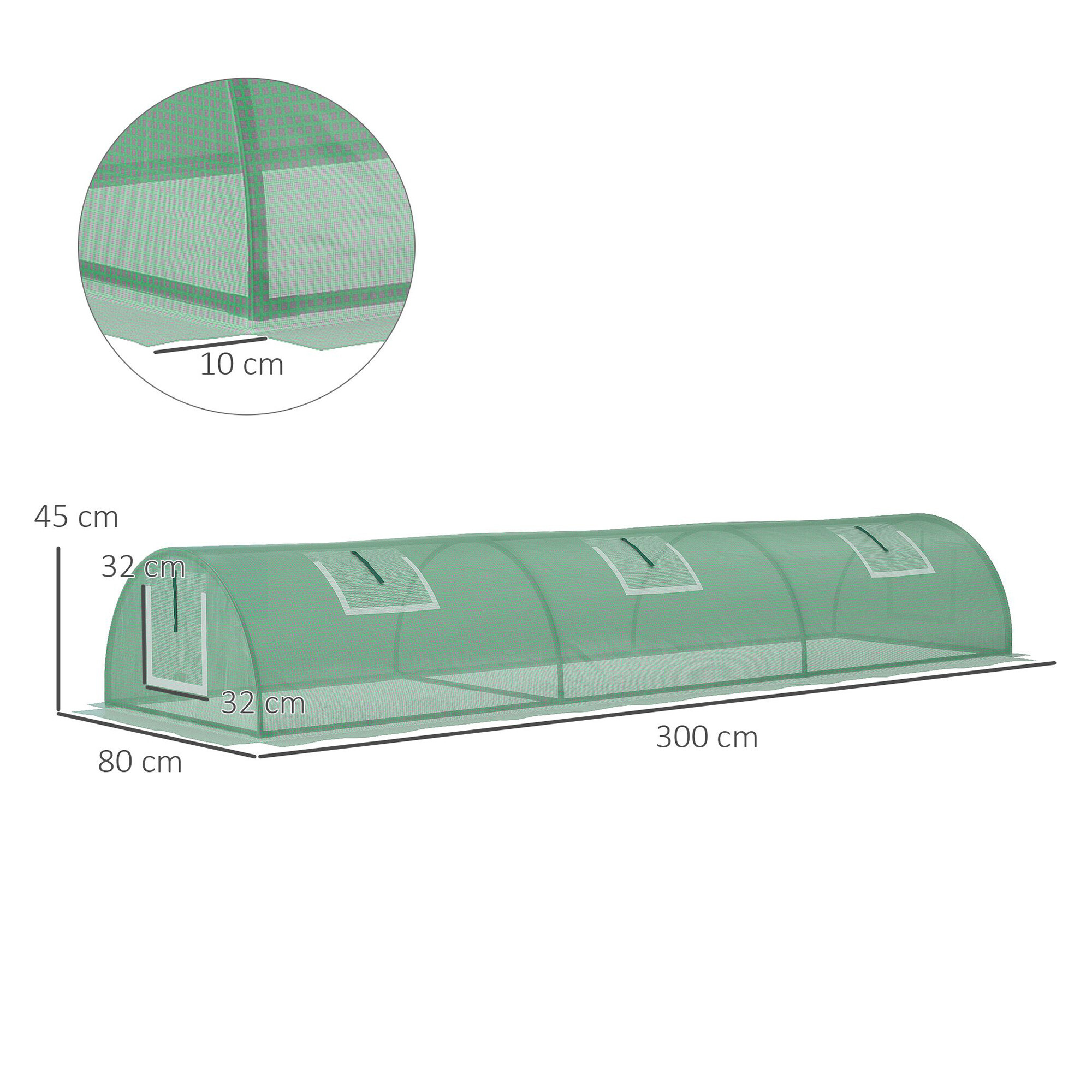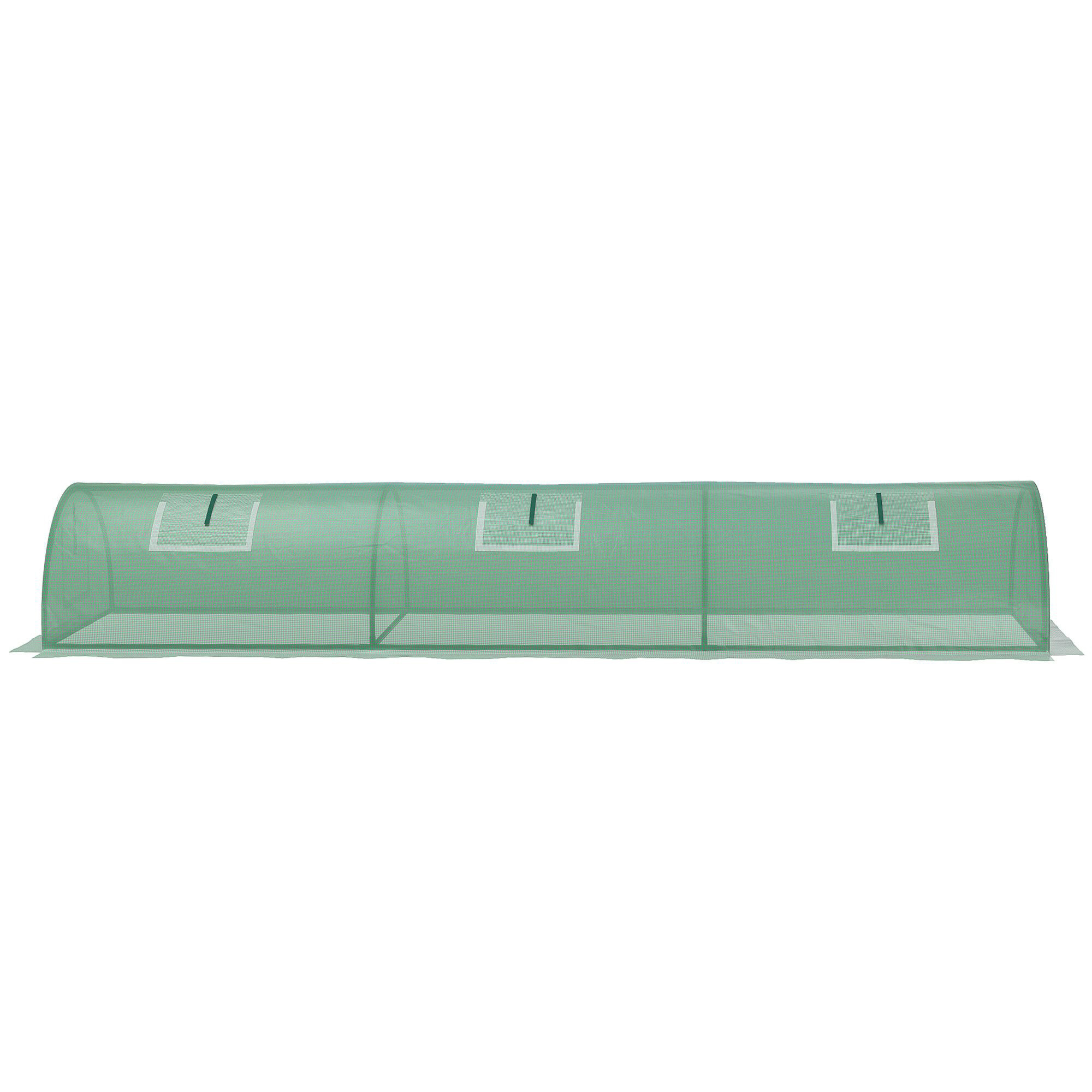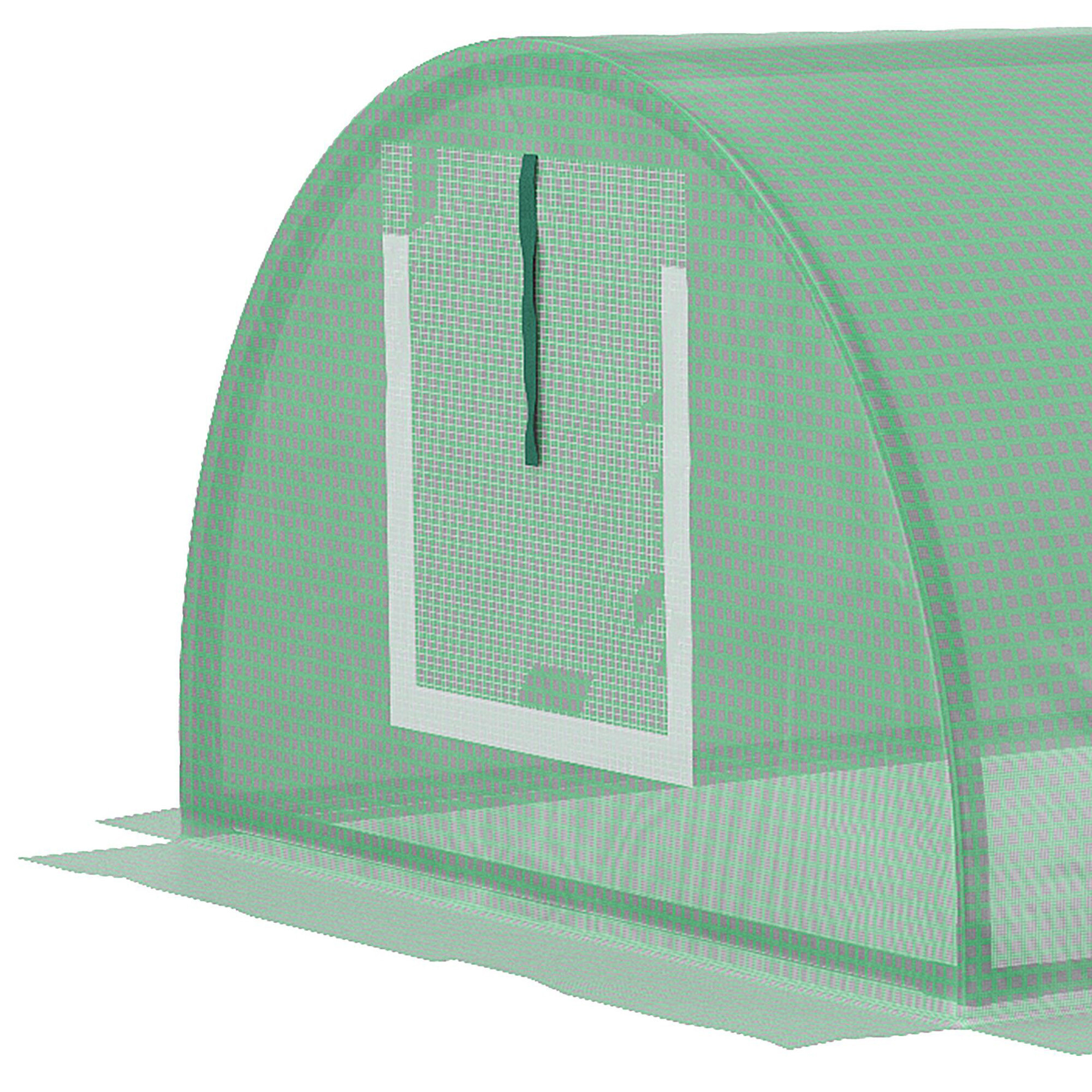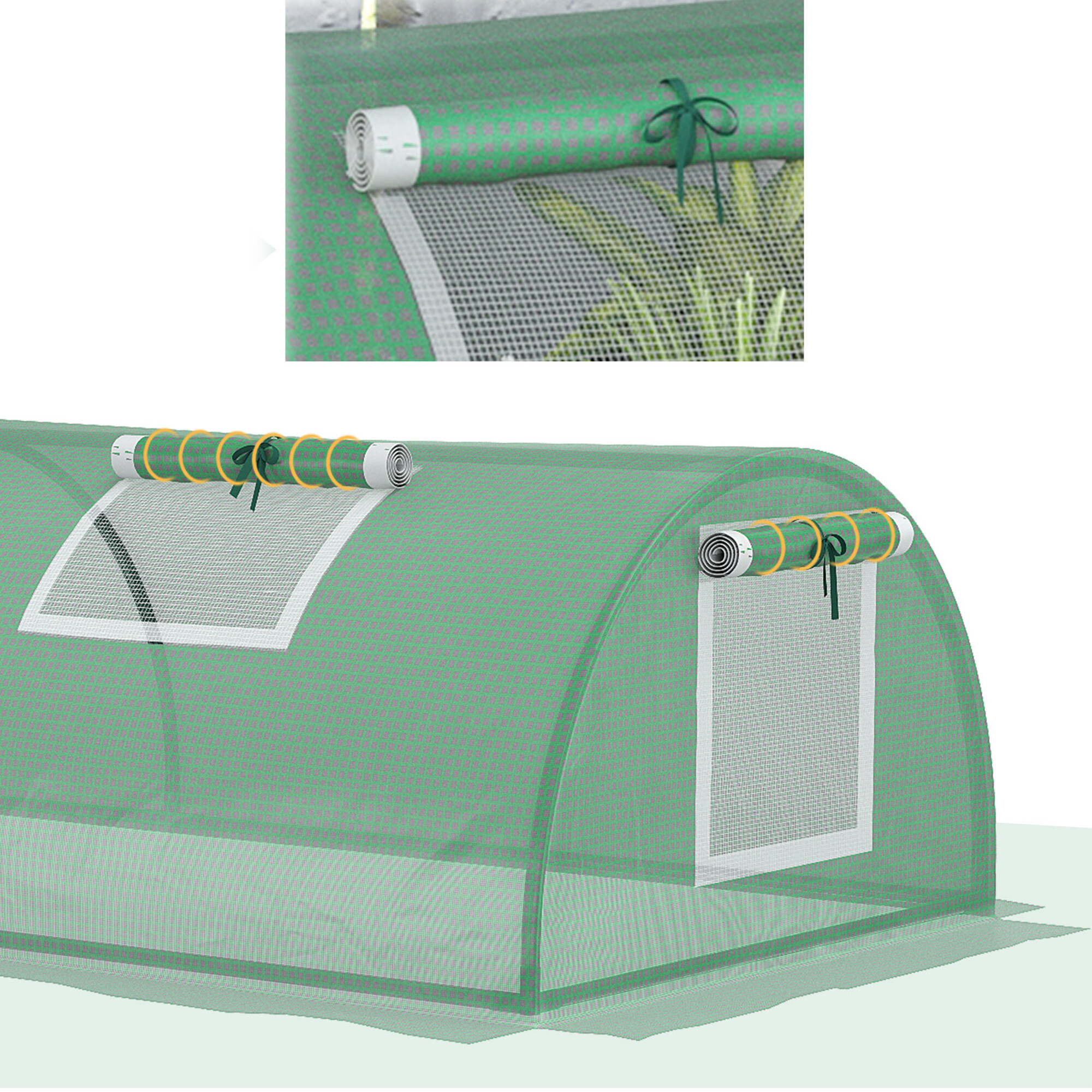 A fóliasátor könnyű, így könnyen áthelyezheti igényei szerint. Kettős cipzárral ellátott rolóablakokkal rendelkezik a könnyebb szellőzés érdekében.