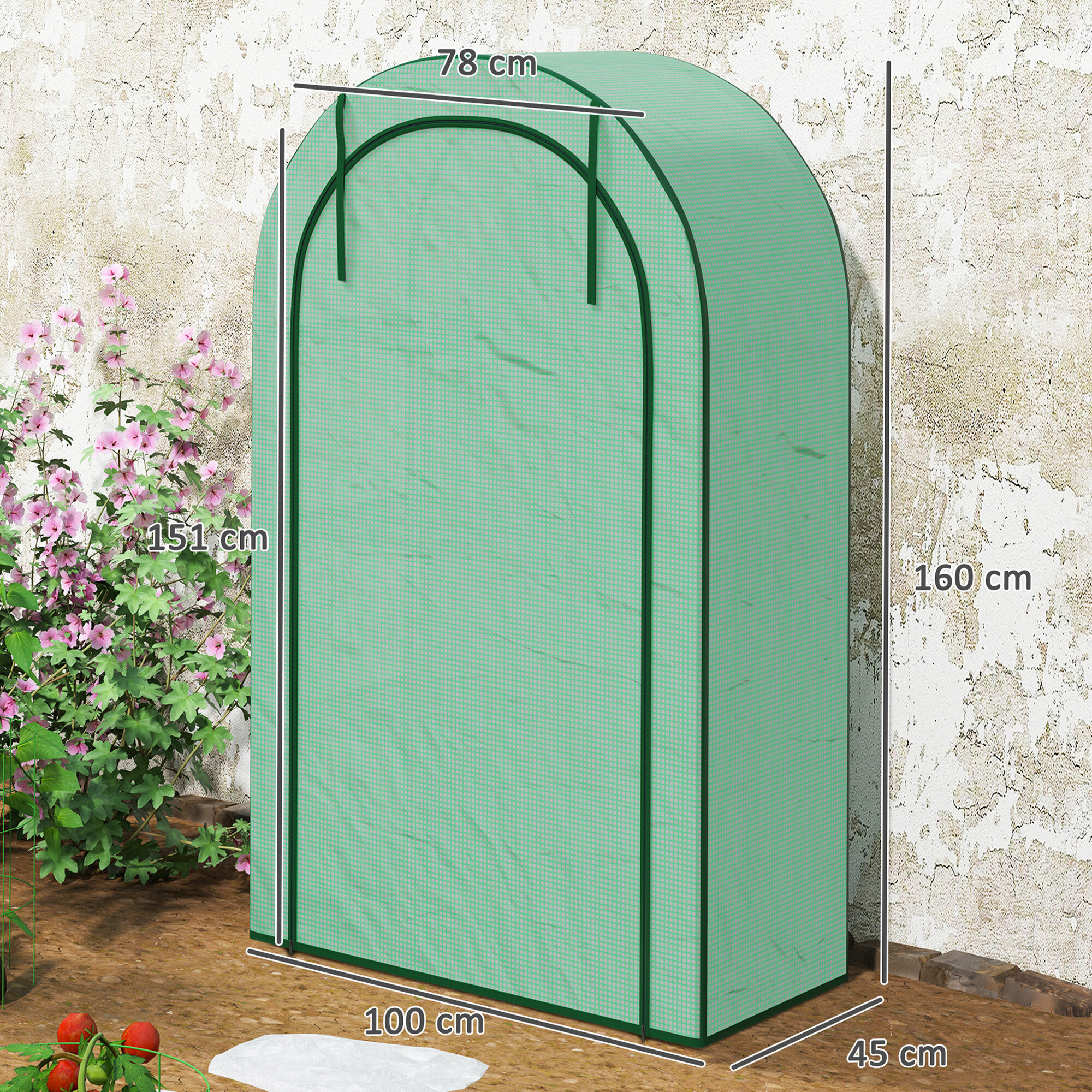 Ez a PVC fóliából készült kerti fóliasátor ideális paradicsom, paprika és sok más zöldség termesztésére.Ennek a fóliasátornak köszönhetően növényei védve lesznek az időjárás viszontagságaitól, és kiváló növekedési támogatást kapnak.
