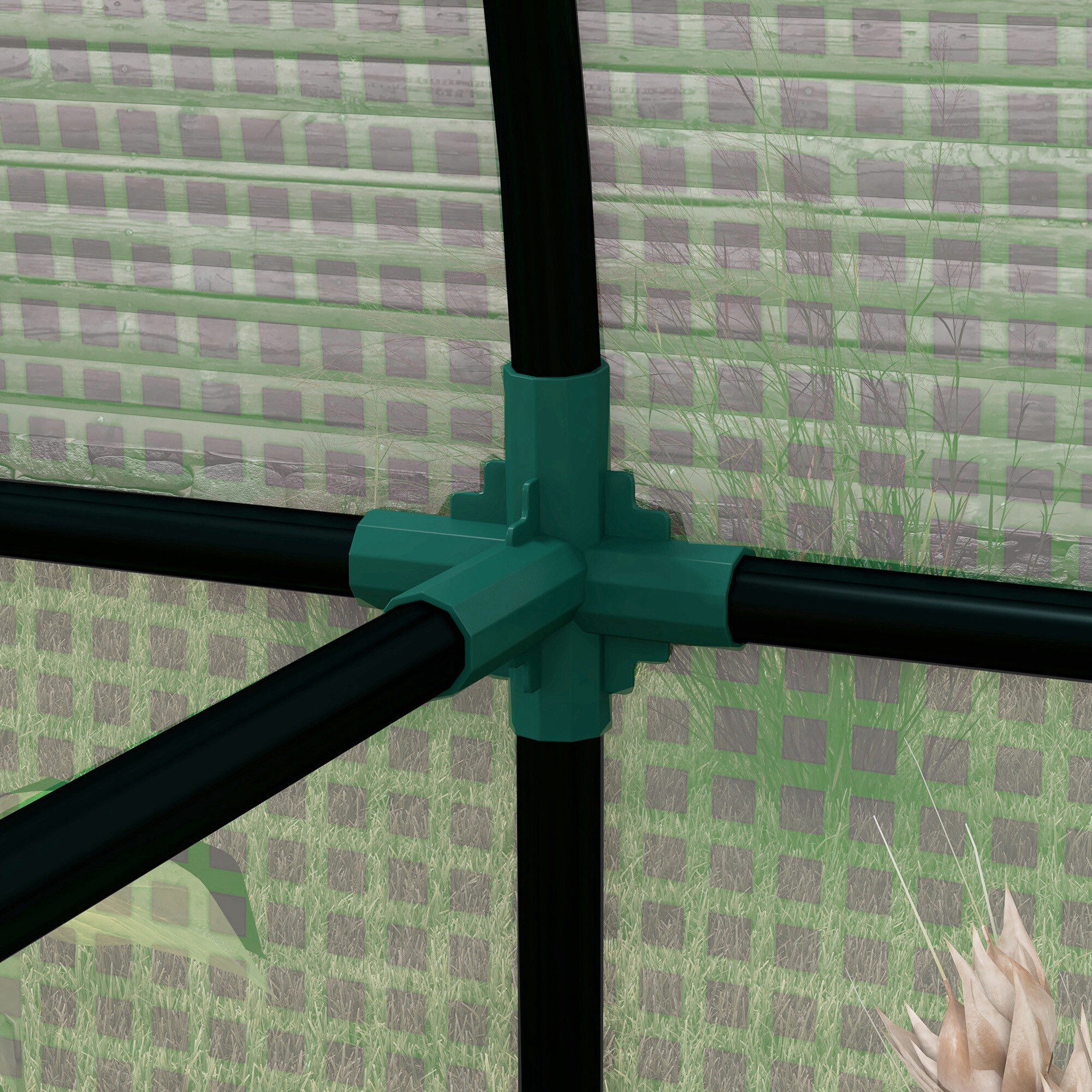 Könnyű összeszerelés és a kert szinte bárhol történő felállításának lehetősége. A szerkezetet acélcsövek alkotják, amelyek porfestéssel vannak ellátva a maximális szilárdság és a tökéletes korrózióvédelem érdekében. A csatlakozások csavarozottak, ami megbízhatóan garantálja a szerkezet merevségét.