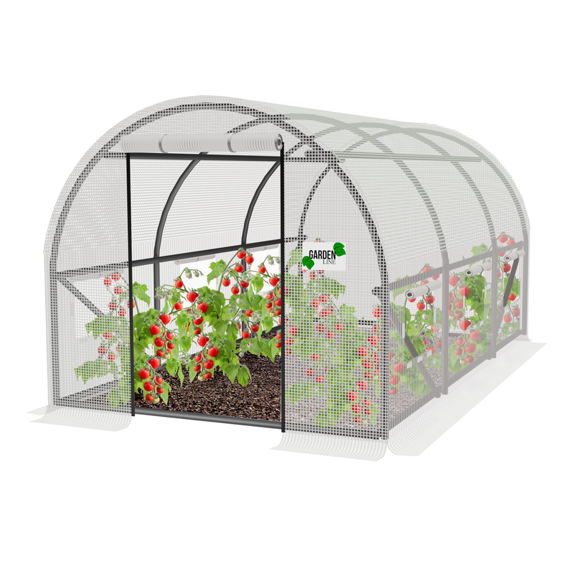 Az optimális 200 cm-es magasság lehetővé teszi a szabad mozgást és a munkavégzést a fóliasátorban.