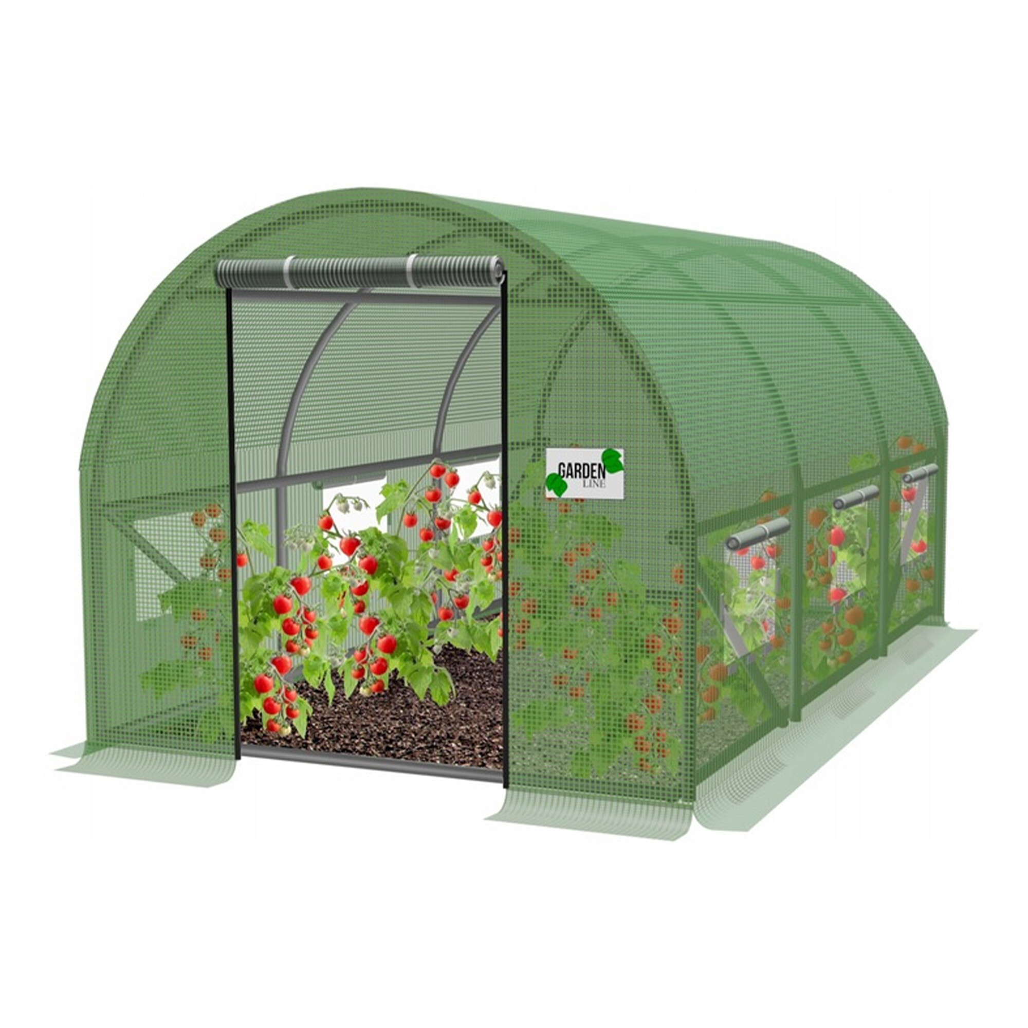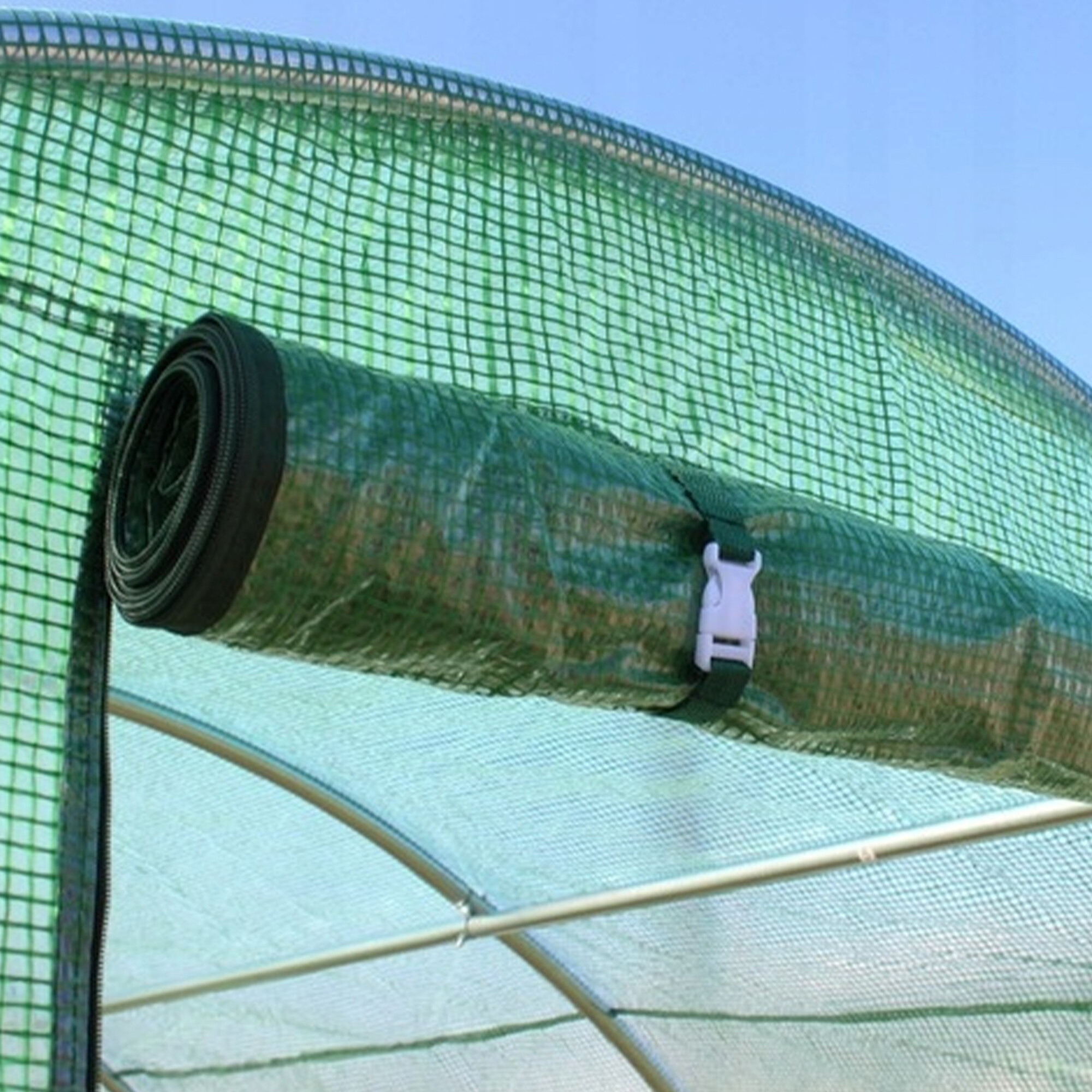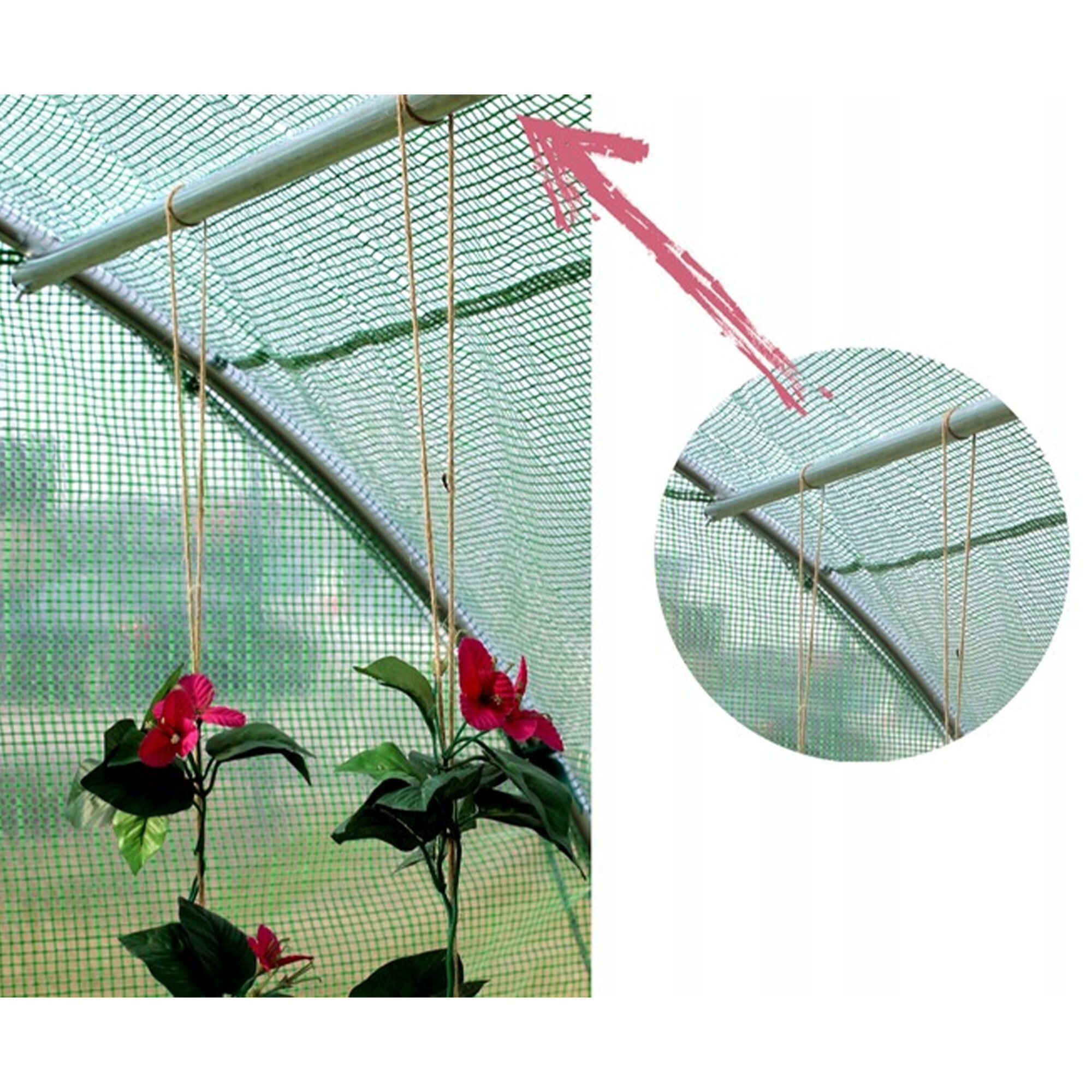 Az átlátszó PE fóliaréteg figyelemre méltó hőszabályozási tulajdonságokat és maximális fényáteresztést biztosít.A PP hálós zöld háló beágyazva a fólia szerkezetébe erősíti és védi a szakadás és mechanikai sérülés ellen.