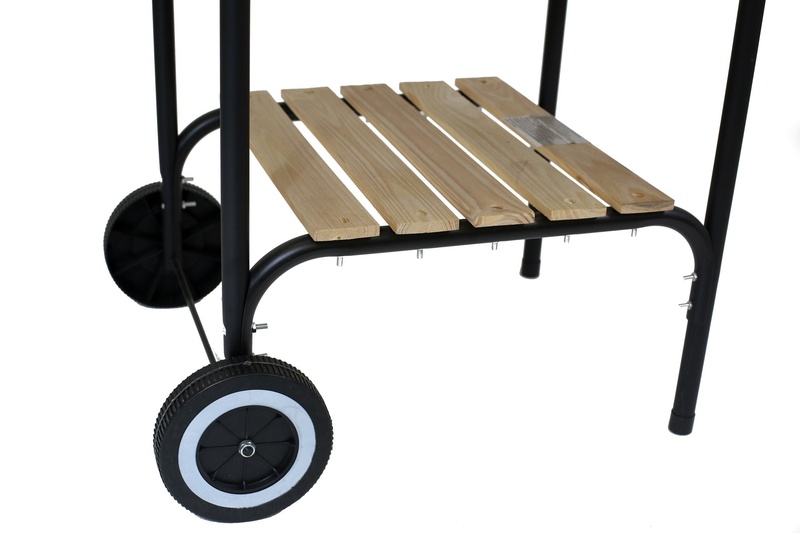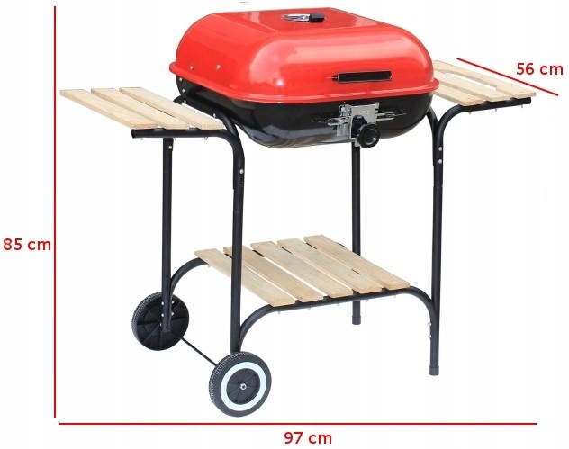 A grill könnyű kezelése érdekében a kocsi két gumikerékkel van felszerelve. A kerti grill ideális az egyszerű és gyors főzéshez a kempingben vagy akár a ház teraszán.
