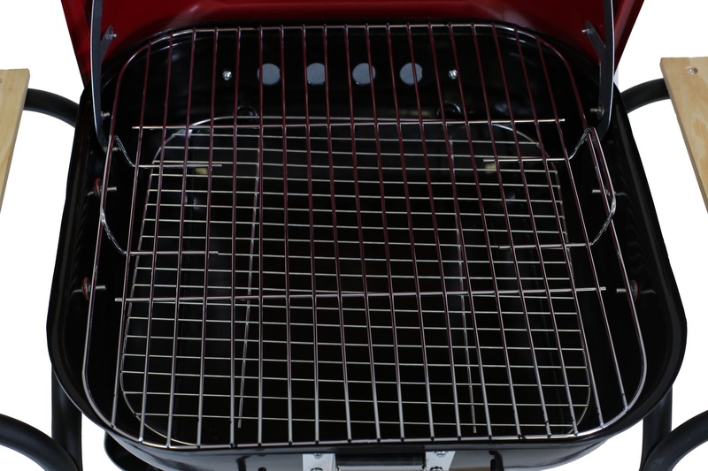 A téglalap alakú kerti grill égéstálakkal és egyéb, magas hőmérsékletnek ellenálló alkatrészekkel rendelkezik. A fedél és az égéstál szellőzőnyílásokkal rendelkezik, így könnyen szabályozhatja a hőmérsékletet.