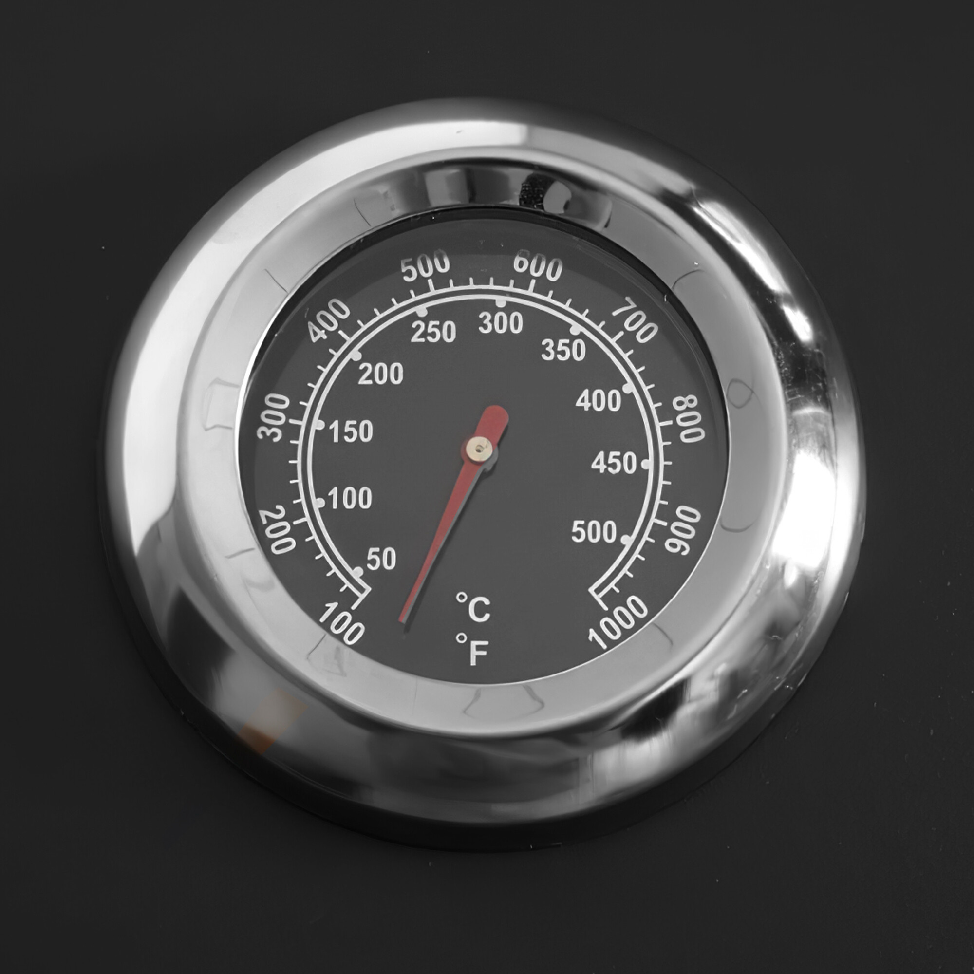 Az integrált hőmérő tökéletes ellenőrzést biztosít a grill belső hőmérséklete felett. Soha többé nem kell találgatnia, hogy megfelelő-e a hőmérséklet kedvenc ételeihez.