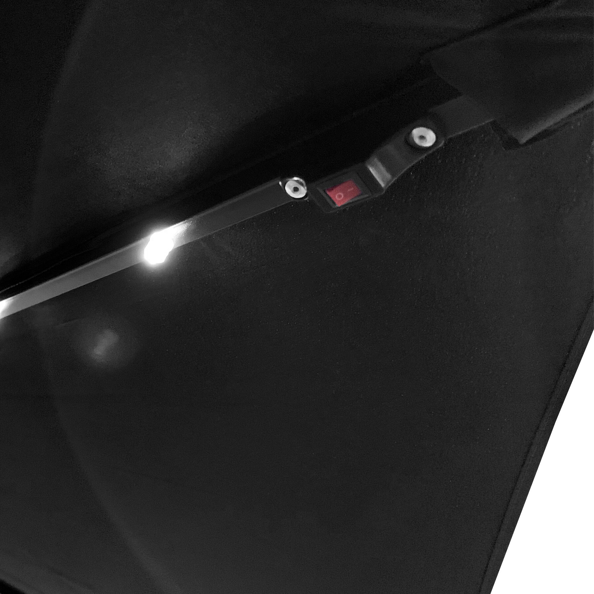 A napernyő bordái mentén 24 LED dióda található, amelyeket a napernyőn elhelyezett napelem táplál. A LED világítás kellemes hangulatot teremt a kertben az esti ücsörgéshez.
