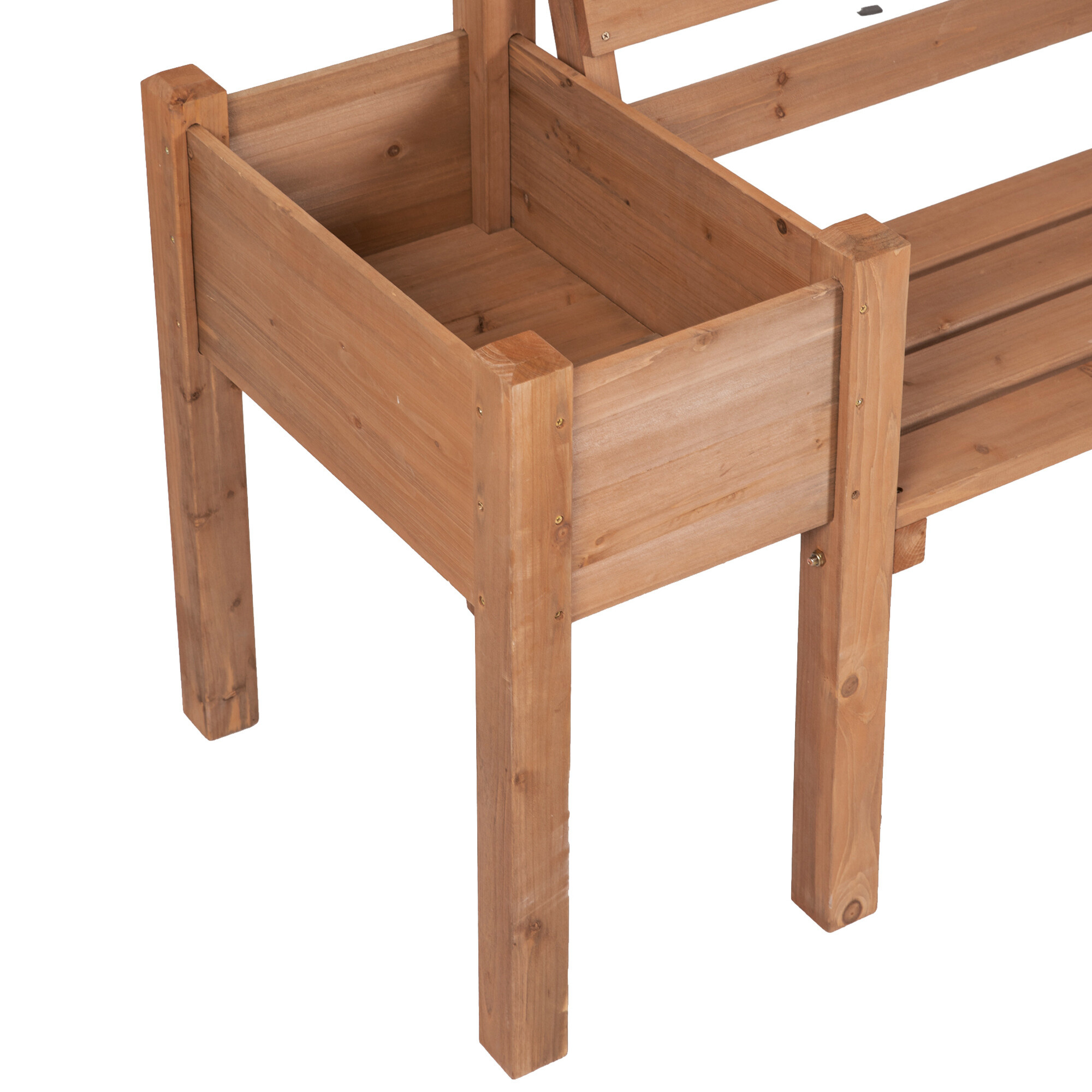 Fedezze fel a kényelem és a stílus harmonikus kombinációját a kerti pad és az emelt ágyás kombinációjával.