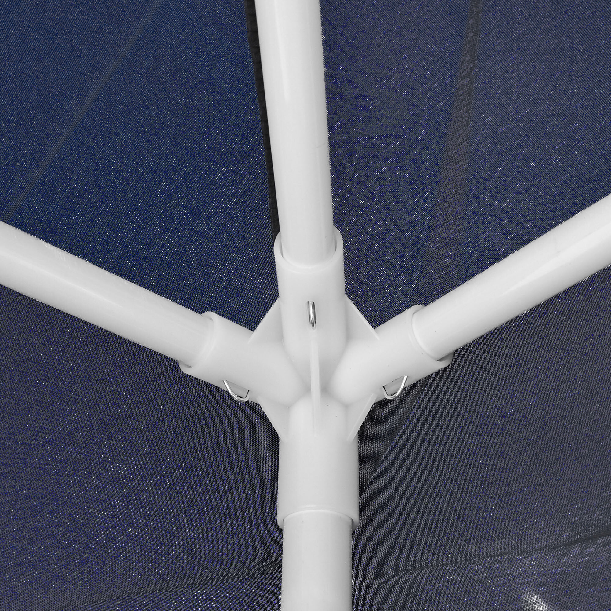 Az acélcsöveket korrózióvédelemmel is ellátták, így nem kell aggódnia a nedvesség vagy az eső okozta károk miatt.A pavilon borítása kiváló minőségű, 140 g/m2 súlyú polietilénből készült, amely nemcsak vízálló, hanem UV-védelemmel is rendelkezik.
