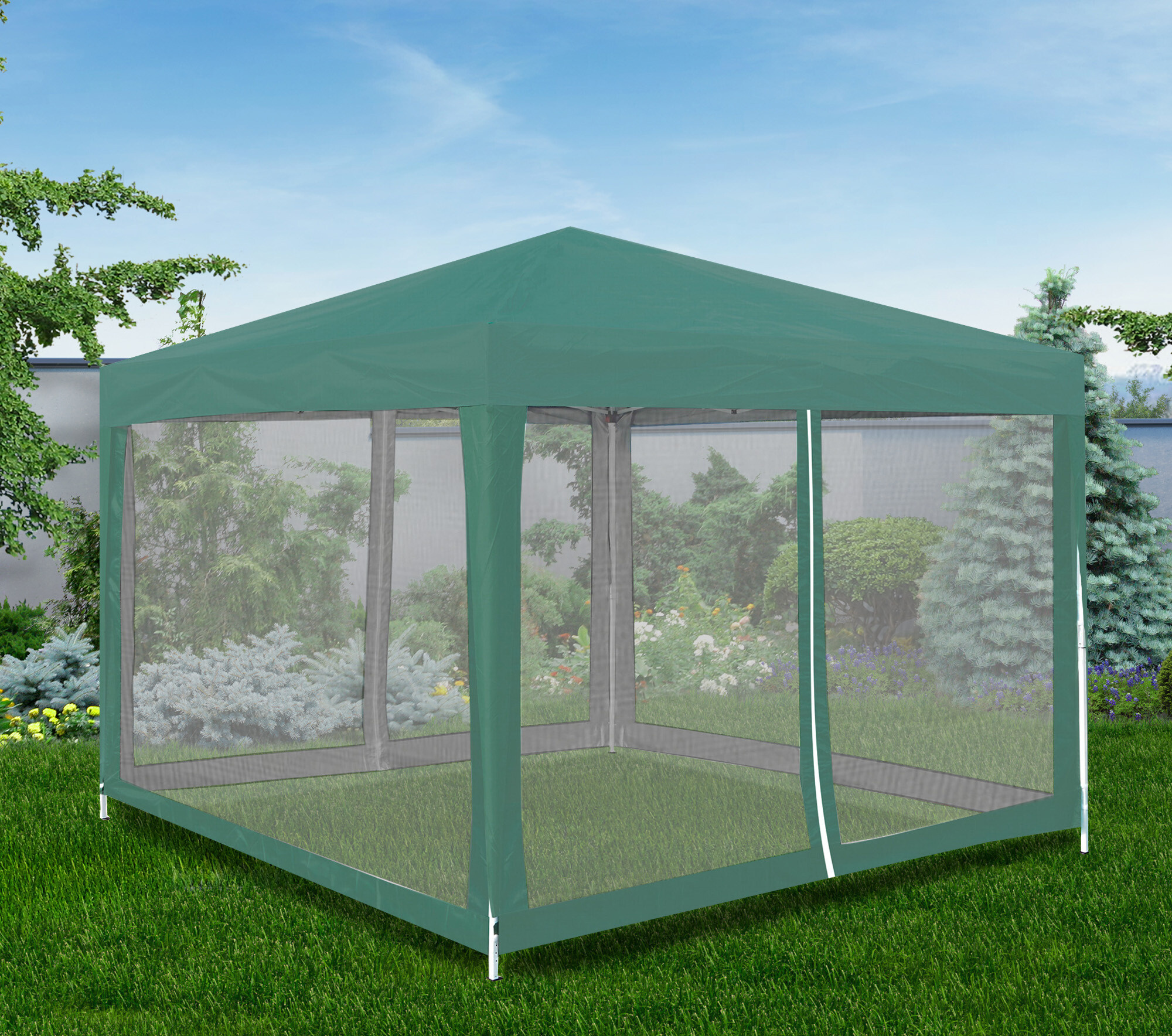 A pavilon borítása 160 g/m2 sűrűségű, erős polietilénből készült, amely ellenáll az UV sugárzásnak és a víznek.