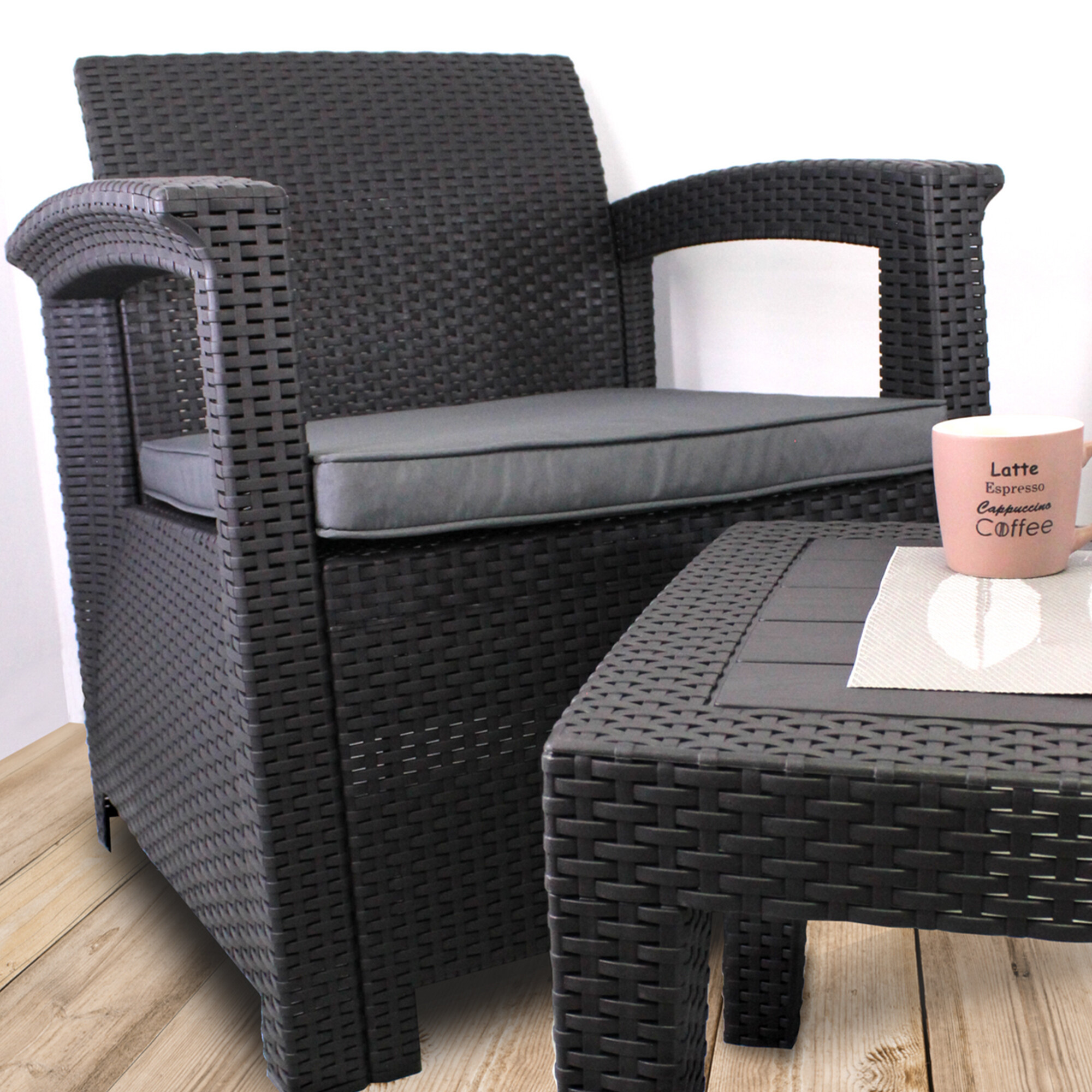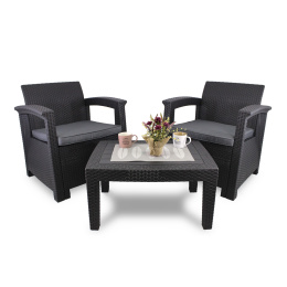 Méreteinek köszönhetően valóban kényelmes és komfortos ülést biztosít a meleg napokon és a kellemes nyári estéken. Ez a műrattan kerti garnitúra kényelmes ülőhelyet biztosít 2 személy számára.